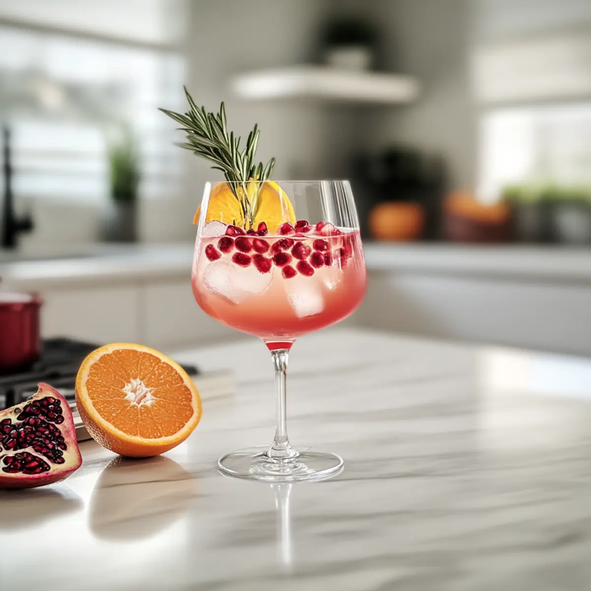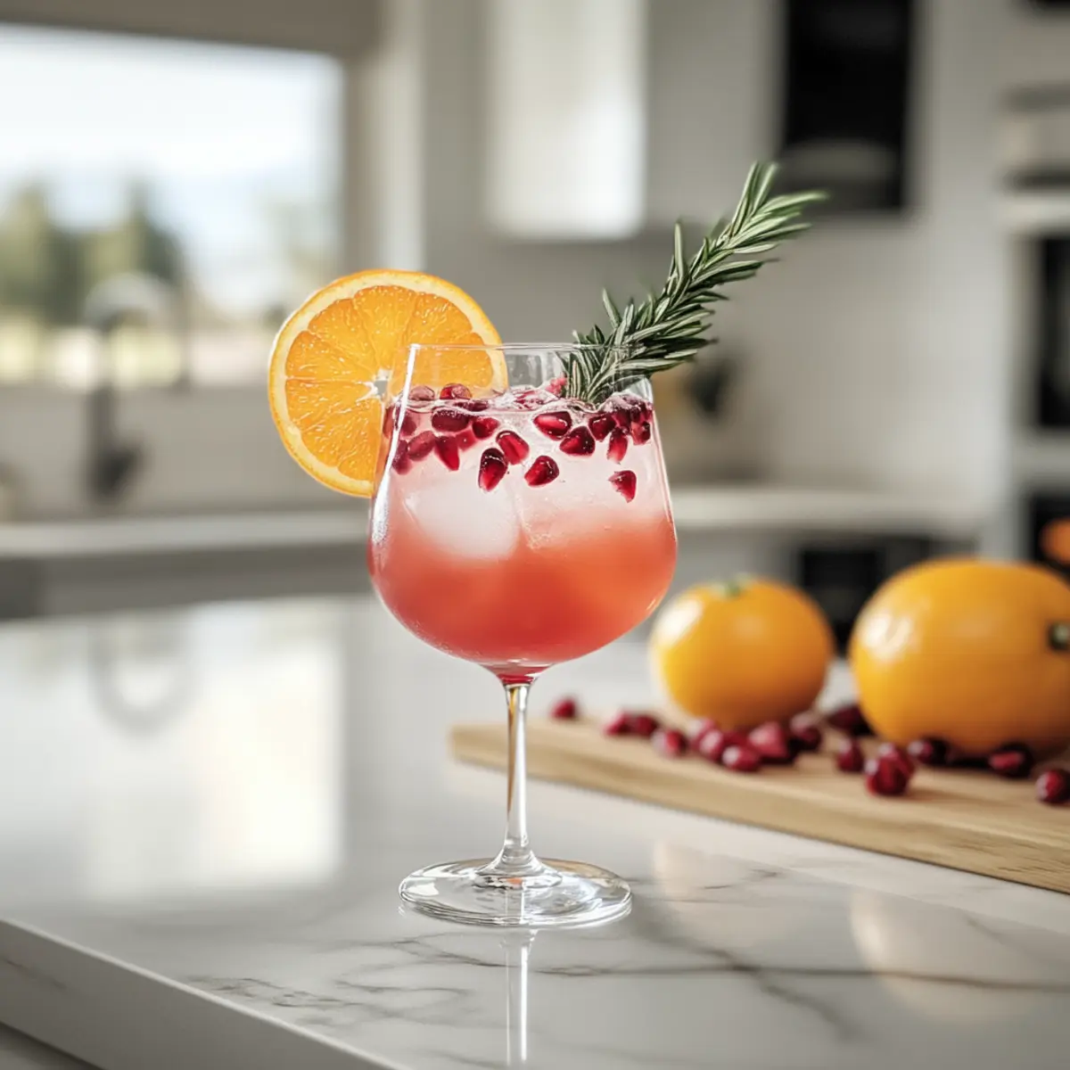 As I stirred the vibrant hues of my latest creation, an unexpected burst of holiday spirit enveloped the kitchen. This Festive Orange Pomegranate Mocktail is not just a drink; it’s a celebration of flavors that seamlessly harmonize sweet, tart, and citrus notes. Perfect for family gatherings or cozy brunches, this delightful mocktail shines bright with its sparkling fizz and gorgeous presentation. With just a few simple ingredients, you can whip up a refreshing, non-alcoholic drink that pleases both adults and kids alike. Best of all, it’s incredibly easy to make, so no one will be left out of the festivities. Want to impress your guests with a colorful toast? Let’s shake things up! Why choose this Orange Pomegranate Mocktail? Refreshingly Easy: Preparing this mocktail requires minimal effort—you can have it ready in minutes. Visually Stunning: The vibrant mix of orange and pomegranate creates a drink that looks as good as it tastes, making it a showstopper at any gathering. Family-Friendly: A fantastic choice for all ages, it’s a delicious way to include everyone in the holiday cheer without alcohol. Versatile Options: Feel free to swap out juices or garnishes, allowing you to tailor this festive drink to suit your tastes—just like I did with my Chinese Orange Chicken! Fizzy Fun: The sparkling water adds an enticing effervescence that elevates your normal drink experience to something truly celebratory. Orange Pomegranate Mocktail Ingredients For the Base • Sparkling Water – Provides a bubbly, refreshing base; substitute with still water for a quieter drink. • Lime Juice – Adds tangy sharpness to balance the sweetness; fresh is best for flavor impact. • Orange Juice – Contributes natural sweetness and a bright citrus flavor; opt for freshly squeezed for vibrant taste. • Simple Syrup – Introduces gentle sweetness; tailor to your preference by adjusting the amount used. • Pomegranate Juice – Offers tartness and a rich color; adjust the quantity for a more or less tart profile. For the Garnish • Orange Slice – A decorative element that enhances visual appeal and adds a hint of citrus aroma. • Pomegranate Arils (optional) – Add color and texture; they’re like little jewels in your drink! • Rosemary or Mint (for garnish) – Provides an aromatic touch to enhance the drink’s fragrance; fresh herbs elevate the experience. This vibrant Orange Pomegranate Mocktail is not just about taste, it’s a treat for the eyes too! Step‑by‑Step Instructions for Orange Pomegranate Mocktail Step 1: Mix the Juices In a mixing glass, combine 1/2 cup of sparkling water, 2 tablespoons of lime juice, 1/2 cup of freshly squeezed orange juice, 1-2 tablespoons of simple syrup, and 1/2 cup of pomegranate juice. Stir the mixture gently for about 20 seconds until well blended, ensuring the flavors marry beautifully. Taste and adjust the sweetness by adding more simple syrup or pomegranate juice based on your preference. Step 2: Prepare the Glass Take a large wine glass and fill it with ice cubes, leaving enough space on top for the mocktail mix. Make sure the ice is packed well to keep your drink cold and refreshing. The ice will add a lovely crunch and ensure your Orange Pomegranate Mocktail stays chilled for longer. Step 3: Decorate the Glass Carefully decorate the glass by placing an orange slice against the inner side. This not only adds a pop of color but also gives a delightful citrus aroma when sipping. Make sure the slice is secure so it becomes an integral part of your stunning mocktail presentation. Step 4: Pour the Mixture Slowly pour the juice mixture over the ice, allowing it to fill the glass while maintaining the vibrant colors. The sparkling water should create a delightful fizz as it mingles with the colorful juices, showcasing the beautiful layering that makes the Orange Pomegranate Mocktail so visually appealing. Step 5: Garnish for Flair Finish the mocktail by garnishing it with a fresh sprig of rosemary or mint for an aromatic touch. You may also sprinkle a few pomegranate arils on top for an added burst of color and texture. This final touch not only enhances the visual appeal but also adds a sophisticated flair to your festive drink. Step 6: Serve Immediately Present your beautiful Orange Pomegranate Mocktail right away! Serve it at holiday gatherings, brunches, or cozy family events to impress your guests. Encourage everyone to raise their glasses and enjoy the refreshing, fizzy delight that is perfect for both adults and kids alike. Expert Tips for Orange Pomegranate Mocktail Sweetness Control: Adjust the amount of simple syrup based on your taste. Start with less, then add more if you prefer a sweeter mocktail. Fresh Ingredients: Use fresh juice from oranges and limes for the best flavor. Store-bought options can taste flat and less vibrant. Garnish Wisely: Creative garnishes can elevate your mocktail. Consider using edible flowers or citrus peels for an aromatic touch beyond rosemary or mint. Chill Before Serving: Ensure your glasses and sparkling water are chilled before mixing. This keeps your Orange Pomegranate Mocktail frosty and refreshing. Experiment with Juices: Don’t hesitate to mix it up! Grapefruit or cranberry juices can be delightful alternatives to the traditional flavors, adding unique twists to your drink. Make Ahead Options These Orange Pomegranate Mocktails are perfect for busy home cooks looking to streamline their meal planning! You can prepare the juice mixture of orange juice, lime juice, pomegranate juice, and simple syrup up to 24 hours in advance. Simply combine the juices in a sealed container and refrigerate to preserve freshness. The sparkling water, however, should be added just before serving to maintain its fizz. When you’re ready to serve, fill glasses with ice, pour in the chilled juice mixture, add sparkling water, and garnish with orange slices and herbs. This approach allows you to create a stunning drink