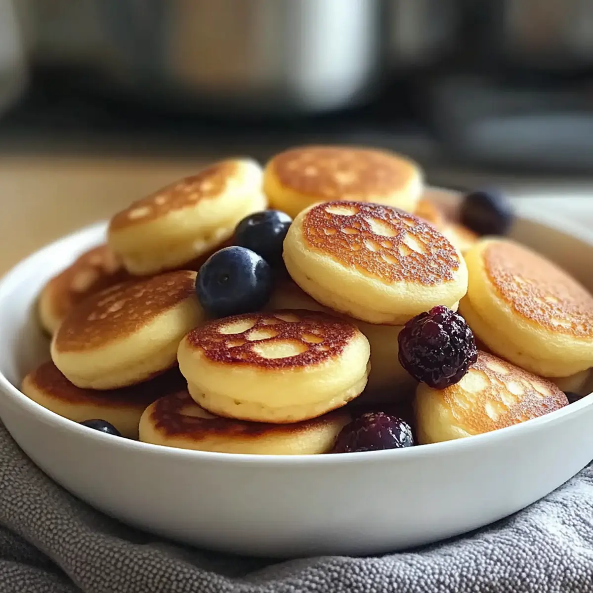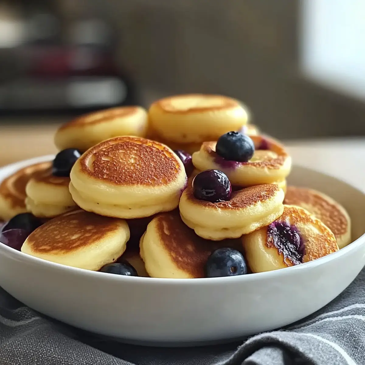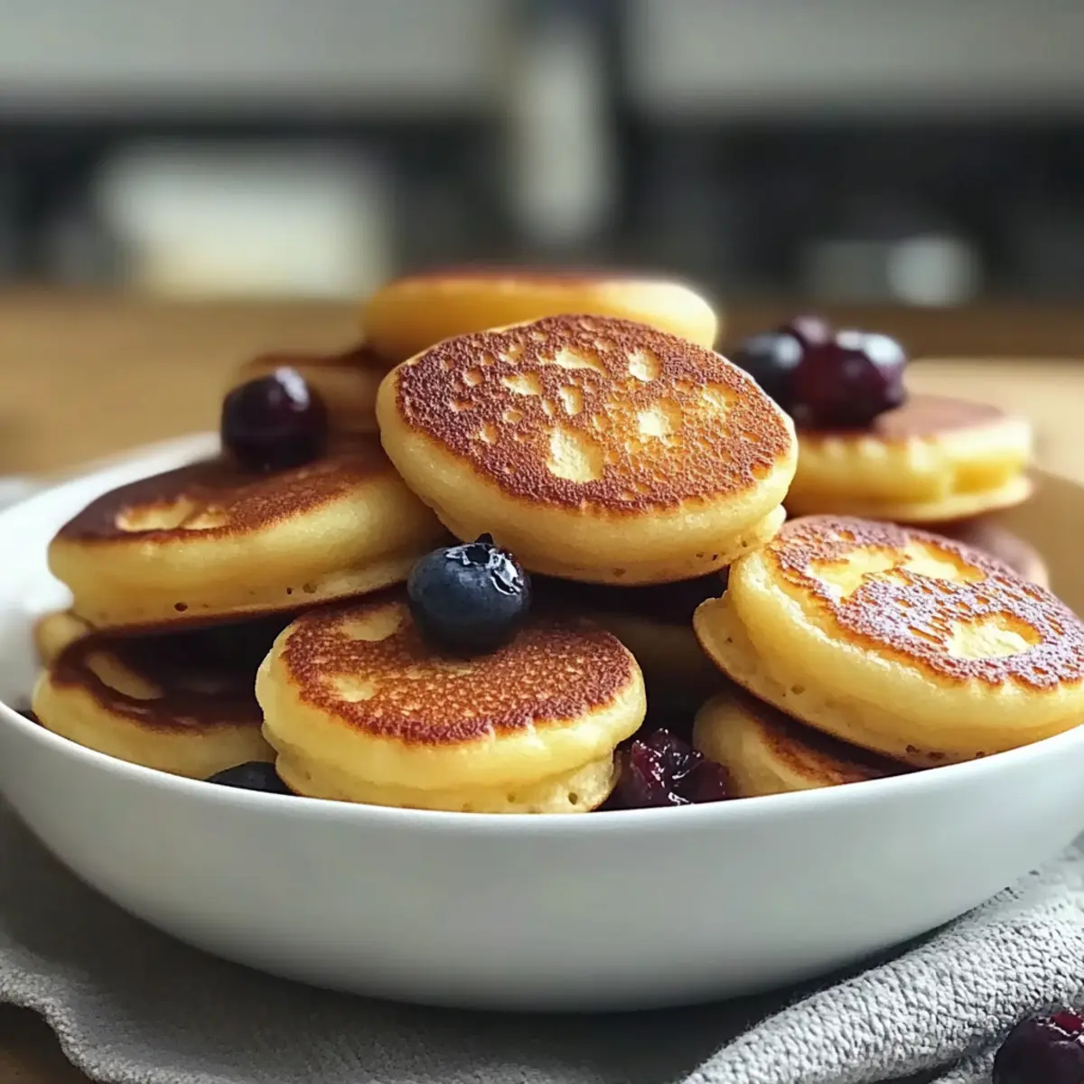The tantalizing scent of warm pancakes wafting through the air is a morning ritual I cherish, and these Fluffy Breakfast Pancake Poppers take that comfort to a whole new level. Each bite-sized popper is a delightful twist on traditional pancakes, perfect for busy mornings or playful brunch gatherings. Not only are they kid-friendly and fun to make, but with a simple gluten-free option, everyone at the table can dive in without a second thought. Whip them up in advance for a quick breakfast during the week, or get creative with mix-ins like mini chocolate chips or fresh blueberries for a delightful surprise. Ready to elevate your breakfast game? Let’s dive into how to create these scrumptious pancake poppers! Why Are Pancake Poppers So Appealing? Versatile combinations are the name of the game! Experiment with mini chocolate chips, blueberries, or even crumbled bacon to satisfy every palate. Quick and easy to prepare, these poppers are ideal for hectic mornings and can even be made in advance. Kid-approved and totally fun, they’re the perfect way to bring excitement to breakfast tables. Plus, with a gluten-free option available, everyone can enjoy the fluffy goodness. If you love pancakes, don’t miss trying out other delicious treats like Cottage Cheese Pancakes or Banana Oatmeal Pancakes! Pancake Poppers Ingredients For the Batter • All-Purpose Flour – Provides structure and fluffiness; substitute with a 1:1 gluten-free flour blend for a gluten-free version. • Sugar – Adds sweetness to balance the flavors in your pancake poppers. • Baking Powder – Essential for leavening, ensuring the poppers rise and maintain a light texture. • Salt – Enhances the overall flavor of the batter for a delicious finish. • Milk – Contributes moisture; can be swapped with almond or oat milk for a dairy-free option. • Egg – Provides binding and is necessary for achieving that fluffy consistency. • Melted Butter – Adds richness to the flavor; can be substituted with a dairy-free alternative if preferred. • Vanilla Extract – Enhances sweetness and adds a lovely aroma to your pancake poppers. Optional Mix-Ins • Mini Chocolate Chips – For a sweet touch that kids love in every bite. • Blueberries – Introduces a fruity burst, adding freshness to your pancake experience. • Cinnamon – Adds warmth and a comforting flavor profile to enhance the overall taste. Get ready to enjoy the fluffy goodness of pancake poppers! Step‑by‑Step Instructions for Pancake Poppers Step 1: Preheat and Prepare Preheat your oven to 375°F (190°C) and prepare a mini muffin pan by greasing it lightly with cooking spray or butter. This ensures the pancake poppers will slide out easily once baked. As the oven warms, you’ll be ready to whip up the batter that will fill your kitchen with delightful aromas. Step 2: Mix Dry Ingredients In a large mixing bowl, whisk together 1 cup of all-purpose flour, 1/4 cup of sugar, 2 teaspoons of baking powder, and a pinch of salt until well combined. Make sure there are no lumps for a smooth batter. This dry mixture will form the base of your fluffy pancake poppers, setting the stage for a delicious breakfast treat. Step 3: Blend Wet Ingredients In a separate bowl, combine 3/4 cup of milk, 1 large egg, 2 tablespoons of melted butter, and 1 teaspoon of vanilla extract. Use a whisk to blend these ingredients until smooth. This wet mixture will add moisture and richness to your pancake poppers, creating that irresistible fluffy texture. Step 4: Combine Wet and Dry Mixtures Carefully pour the wet ingredients into the dry ingredients, mixing gently with a spatula until just combined. Be cautious not to overmix—some lumps are perfectly fine! This step is crucial to ensure your pancake poppers remain light and airy, embodying the essence of delightful breakfast goodness. Step 5: Add Mix-Ins if Desired If you’d like to add extra flavors, gently fold in any optional mix-ins such as mini chocolate chips, fresh blueberries, or a sprinkle of cinnamon at this stage. After mixing gently, your batter should be thick yet pourable, ready to bring some fun and variety to your Pancake Poppers. Step 6: Fill the Muffin Pan Spoon the batter into each greased muffin cup, filling them about two-thirds full for optimal rising. The batter should look plump and well-distributed, ensuring even baking. If you’re going for a creative twist, add a few more mini chocolate chips or blueberries on top for that inviting visual appeal. Step 7: Bake to Perfection Place the muffin pan in the preheated oven and bake for 10–12 minutes. Keep an eye on them as they bake, looking for a golden-brown color and a toothpick inserted in the center coming out clean. Your pancake poppers will rise beautifully and fill the kitchen with a scrumptious scent. Step 8: Cool and Serve Once baked, remove the mini muffin pan from the oven and let the pancake poppers cool for a few minutes. They will be hot and fluffy, so patience is key! After cooling, you can serve them warm, perhaps drizzled with maple syrup or with a side of fresh fruit for an enjoyable breakfast experience. Expert Tips for Pancake Poppers Don’t Overmix: Gently fold wet and dry ingredients together without overly mixing. Some lumps are fine and help maintain a light, fluffy texture in your pancake poppers. Temperature Matters: Let the melted butter cool slightly before adding to the egg mixture. This prevents cooking the egg and ensures your batter stays smooth. Keep an Eye on Baking: Start checking for doneness at the 10-minute mark. The perfect pancake popper should be golden brown, with a toothpick emerging clean. Experiment with Mix-Ins: Get creative with optional mix-ins like cinnamon, crumbled bacon, or jalapeños! Just remember to keep the balance in flavors while ensuring the batter still rises well. Storage Tip: For make-ahead convenience, store leftover pancake poppers in an airtight container for up to 3 days, or freeze fo