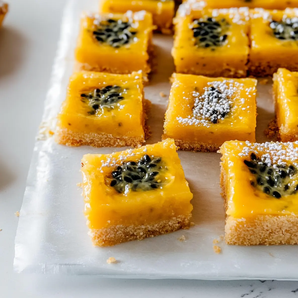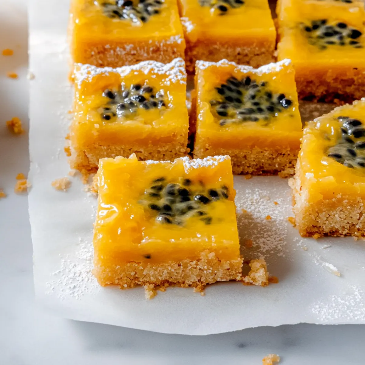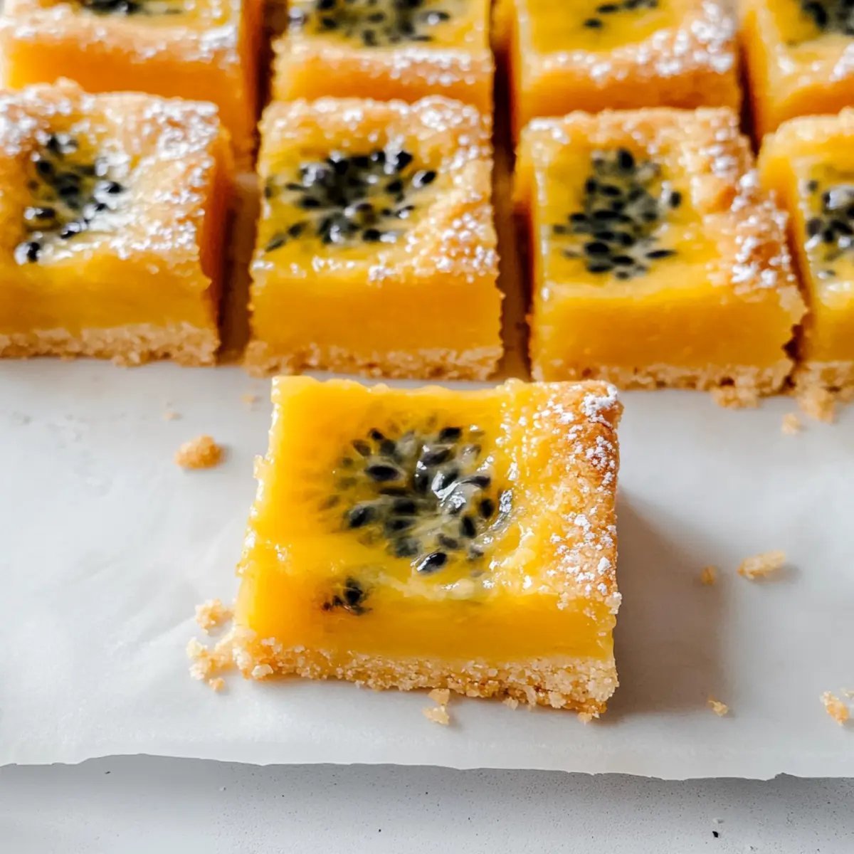 As I stood in front of the open refrigerator, a forgotten bag of frozen passion fruit purée caught my eye, sparking a delicious idea for a summertime dessert. These Tropical Passion Fruit Bars with Buttery Shortbread Crust are my secret weapon for impressing friends and family at gatherings. They’re incredibly easy to make, allowing you to whip up a crowd-pleasing treat without the fuss. Plus, the combination of that creamy, tangy filling and rich, buttery crust transports you to a sunny tropical getaway with every bite. Whether it’s a picnic in the park or a cozy night in, these bars offer a fresh twist that’s sure to brighten your day. Ready to dive into the world of vibrant flavors and make these delightful Passion Fruit Bars? Let’s get started! Why are Passion Fruit Bars so special? Tropical Escape: Each bite of these Passion Fruit Bars whisks you away to a sun-soaked paradise. Easy to Make: With just a handful of ingredients, you’ll find this recipe simple enough for any home cook. Crowd-Pleasing Treat: Impress friends and family at gatherings with a dessert that balances creamy and tangy flavors. Versatile Options: Feeling creative? Try experimenting with different citrus or cookie crusts to personalize your dessert. If you’re also a fan of refreshing treats, check out my delightful Oatmeal Crumble Bars for another fantastic dessert option. Enjoy these bars chilled, and get ready to savor the tropical goodness! Passion Fruit Bars Ingredients • To create these delightful Passion Fruit Bars, gather these simple yet essential ingredients! For the Crust Unsalted Butter – Adds richness and moisture to the shortbread crust. Use room temperature for better creaming. Granulated Sugar – Provides sweetness in both the crust and filling. Can be reduced for less sweetness. All-Purpose Flour – Gives structure to the crust and helps set the filling. Ensure it’s sifted for a lighter texture. Salt – Enhances the flavors of the sweet ingredients. Omit if using salted butter. For the Filling Eggs – Acts as a binding agent in the filling and contributes to the rich texture. Use room temperature for better incorporation. Passion Fruit Purée – The star ingredient that imparts a tropical, tangy flavor to the filling. Frozen seedless purée is recommended; avoid juice for better consistency. Powdered Sugar – Optional for dusting on top for visual appeal and additional sweetness. Step‑by‑Step Instructions for Passion Fruit Bars Step 1: Preheat the Oven Begin by preheating your oven to 350°F (175°C). This ensures the perfect baking environment for your Tropical Passion Fruit Bars. While the oven heats, gather your baking equipment, including an 8×8 inch baking dish, mixing bowls, and a whisk. A hot oven will help your crust become wonderfully flaky and golden, setting the stage for a delightful dessert. Step 2: Prepare the Crust In a mixing bowl, cream together ½ cup of room temperature unsalted butter and ¼ cup granulated sugar until the mixture is light and fluffy. Gradually blend in 1 ¼ cups of sifted all-purpose flour and a pinch of salt until the dough resembles coarse crumbs. Transfer this crumbly mixture into your prepared baking dish and press it firmly into an even layer. Bake for 12–15 minutes until it’s lightly golden. Allow it to cool slightly while you make the filling. Step 3: Make the Filling In another bowl, whisk together 2 large eggs until they are well beaten. Gradually stir in ¾ cup of passion fruit purée and the remaining ½ cup of granulated sugar until the mixture is smooth and combined. Sift in 2 tablespoons of all-purpose flour and whisk once more until fully incorporated. The filling should be creamy and slightly thickened, ready to bring that tropical flavor to your Passion Fruit Bars. Step 4: Combine & Bake Once your crust has cooled slightly, carefully pour the passion fruit filling over it, spreading it evenly. Slide the baking dish back into the oven and bake for 25–35 minutes. Check for doneness by ensuring the edges are set while the center still has a slight jiggle. This creates the perfect texture, balancing the firmness of the crust with the luscious filling. Step 5: Cool & Serve After baking, remove the tropical Passion Fruit Bars from the oven and let them cool at room temperature for about 1 hour. Once cooled, refrigerate for at least another hour to set completely. Cut the chilled bars into squares, dust with powdered sugar for a lovely finish, and serve. These refreshing treats are now ready to delight your family and friends! Passion Fruit Bars Variations & Substitutions Feel free to get creative with these Passion Fruit Bars! Each variation offers an exciting twist on the original recipe. Different Citrus: Substitute lemon or lime juice in place of passion fruit for a fresh zesty kick. It’s a great way to enjoy a vibrant citrus twist! Graham Cracker Crust: Use crushed graham crackers instead of flour for a delightful, crunchy texture that enhances the tropical theme. The buttery flavor of the graham crackers pairs beautifully with the filling. Coconut Flake Crust: Add shredded coconut to the crust mixture for an added tropical flair. This will bring a lovely chewy texture and a hint of coconut sweetness. Spiced Variants: Sprinkle some cinnamon or nutmeg into the filling for a warmth that complements the fruity tartness. It adds subtle layers of flavor that’ll surprise your taste buds! Berry Infusion: Mix in fresh berries like raspberries or blueberries for a colorful addition. The tartness of the berries balances well with the creamy filling, making each bite a burst of flavor. Chocolate Drizzle: Top your cooled Passion Fruit Bars with a drizzle of melted dark chocolate for a delicious contrast of flavors. Chocolate and passion fruit are a match made in heaven! Vegan Option: Use aquafaba (chickpea water) in place of eggs and substitute coconut oil for butter to make a vegan-friendly version. You’ll still enjo