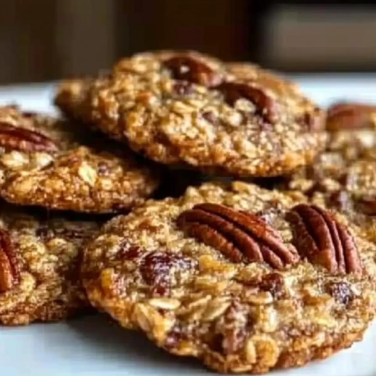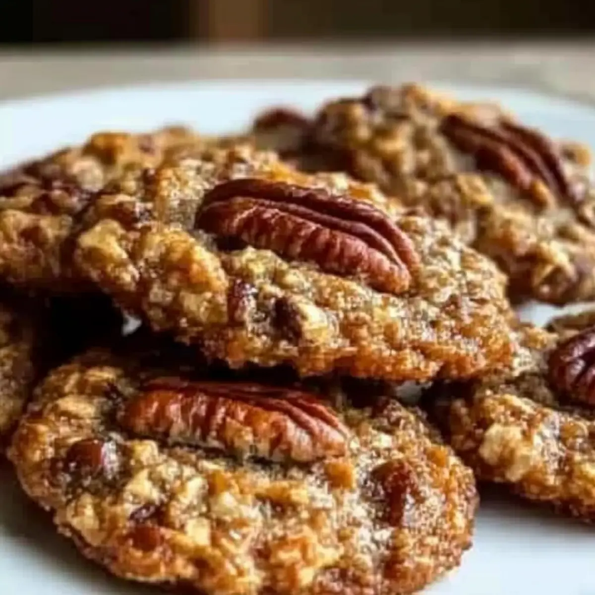 As I stood in my kitchen, the rich aroma of toasted pecans danced through the air, wrapping me in a warm embrace. These Bakery-Style Pecan Pie Oatmeal Cookies are not just another baked good; they capture the essence of comfort and indulgence in every bite. With their chewy oatmeal base and golden edges, they’re a delightful nod to traditional pecan pie, yet incredibly easy to whip up in under thirty minutes. Perfect as a cozy treat for gatherings or when you simply need a sweet fix, these cookies offer a satisfying crunch from the pecans and a soft, comforting center. Plus, they embody wholesome ingredients that will make any home chef excited to share them! Ready to elevate your cookie game? Let’s dive into this delicious adventure! Why are these cookies a must-try? Irresistible Flavor: These Pecan Pie Oatmeal Cookies combine the best of two worlds—nutty pecan pie and hearty oatmeal. Quick to Make: You can have these delicious treats ready in just 30 minutes, perfect for those busy days. Crowd-Pleaser: These cookies are ideal for gatherings, ensuring everyone leaves with a smile. Customizable Options: Try adding chocolate chips or coconut for a twist! Wholesome Ingredients: Made with pantry staples, they’re both satisfying and nostalgic, echoing the love of homemade baking. You won’t want to miss this delightful treat! Pecan Pie Oatmeal Cookies Ingredients For the Cookie Base • Rolled Oats – Adds chewiness and structure; quick oats can be used but may yield softer cookies. • All-Purpose Flour – Provides structure and helps the cookies hold their shape. • Brown Sugar – Contributes deep caramel sweetness, mimicking the pecan pie filling. • Granulated Sugar – Balances sweetness and assists in browning. • Unsalted Butter – Adds richness and moisture, creating a tender cookie; use softened butter for better mixing consistency. • Large Egg – Binds ingredients together and adds moisture. • Vanilla Extract – Adds depth of flavor and sweetness. • Baking Soda – Helps cookies rise and achieve that lovely, soft texture. • Salt – Enhances flavors and balances sweetness. For the Nutty Goodness • Chopped Pecans – Enhances the nutty flavor and adds crunch; toast them for improved flavor. • Corn Syrup – Provides a chewy texture and mimics the gooeyness of pecan pie; maple syrup or honey can be used as a tasty alternative. These Pecan Pie Oatmeal Cookies are ready to shine in your kitchen—let’s get baking! Step‑by‑Step Instructions for Pecan Pie Oatmeal Cookies Step 1: Preheat the Oven Start by preheating your oven to 350°F (175°C). While the oven warms up, line a baking sheet with parchment paper to ensure easy cookie removal later. This preparation step is crucial, as it allows your Pecan Pie Oatmeal Cookies to bake evenly, giving them a lovely golden edge. Step 2: Cream the Butter and Sugars In a large mixing bowl, combine softened unsalted butter, brown sugar, and granulated sugar. Use an electric mixer or a sturdy whisk to cream the mixture until it’s light and fluffy, about 2-3 minutes. The airy texture will create a tender cookie, so keep mixing until you see it change to a pale, beautiful color. Step 3: Add the Egg and Vanilla Next, crack a large egg into the bowl and pour in the vanilla extract. Beat these two together until smooth and well incorporated, about 1 minute. You’ll notice a rich aroma filling the air—this is a sign you’re on the right path to delicious Pecan Pie Oatmeal Cookies. Step 4: Mix the Dry Ingredients In a separate bowl, whisk together rolled oats, all-purpose flour, baking soda, chopped pecans, and a pinch of salt. Use this dry mixture to add flavor and structure to your cookies. Combine them until evenly distributed, which ensures that every bite of your cookies has that nutty goodness throughout. Step 5: Combine Wet and Dry Mixtures Gradually fold the dry ingredients into the wet mixture using a spatula. Mix gently until just combined; avoid over-mixing to keep the cookies light and chewy. Then, drizzle in the corn syrup and fold it in with care, blending until everything is uniform without any dry spots. Step 6: Scoop the Cookie Dough Using a tablespoon or a cookie scoop, start placing portion-sized dollops of dough onto the prepared baking sheet. Leave about 2 inches of space between each cookie to allow for spreading. This step is key for achieving those tempting bakery-style Pecan Pie Oatmeal Cookies with the perfect texture. Step 7: Bake the Cookies Pop the baking sheet into the preheated oven and set your timer for 10-12 minutes. Bake until the edges are golden brown while the centers appear soft and slightly undercooked; this is what gives your cookies that desirable chewy texture. Step 8: Cool Before Serving Once baked, remove the cookies from the oven and let them sit on the baking sheet for 5 minutes. This resting time allows them to set before you transfer them to a wire rack. Allow them to cool completely so you can enjoy every delightful bite of your Pecan Pie Oatmeal Cookies! Pecan Pie Oatmeal Cookies Variations Feel free to let your creativity shine with these delightful twists on the classic Pecan Pie Oatmeal Cookies! Chocolate Chip Pecan: Add ½ cup of semi-sweet chocolate chips for a rich, indulgent taste that pairs beautifully with nutty flavors. Enjoy each bite of this mocha-like experience. Maple Pecan Bliss: Swap corn syrup for an equal amount of maple syrup to impart a warm, distinct flavor reminiscent of morning pancakes on lazy weekends. Cinnamon Spice: Sprinkle in 1 teaspoon of ground cinnamon to elevate your cookies with an inviting warmth that hugs you with every chew. Perfect for cozy evenings! Coconut Pecan Crunch: Mix in ½ cup of shredded coconut for a tropical twist, enhancing both texture and flavor. It’s like a paradise escape in every bite! Dairy-Free Delight: Replace unsalted butter with coconut oil or a dairy-free butter substitute to create a vegan-friendly tr