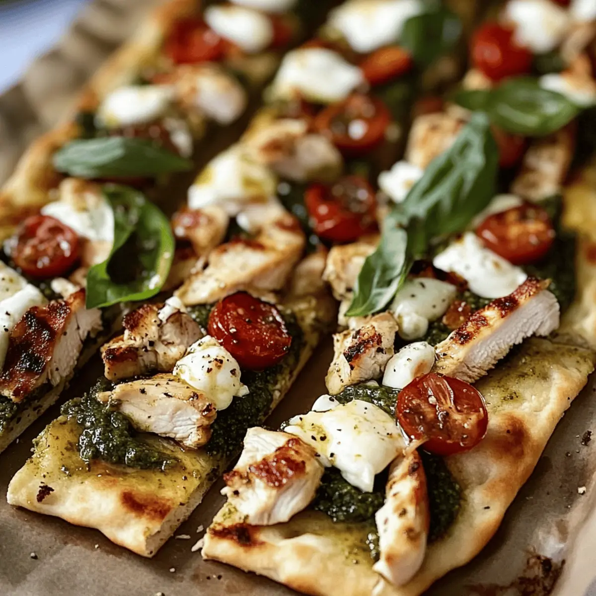 • Crispy Flatbread: Broil for extra crispiness, but watch closely! This step elevates the texture of your Pesto Chicken Flatbread, preventing it from becoming soggy.