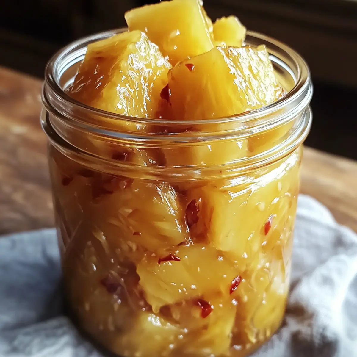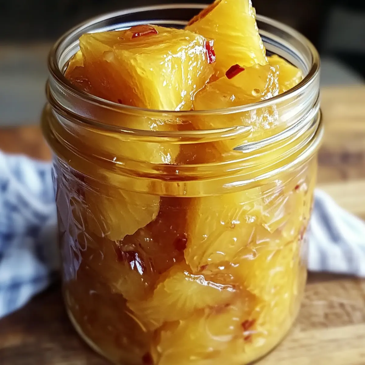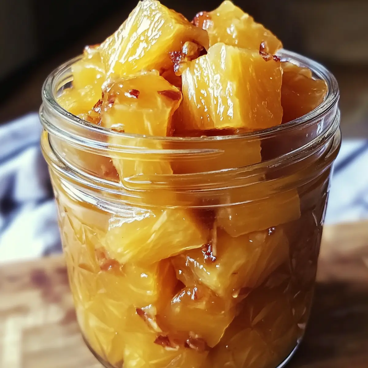 As I stood in my kitchen, a wave of nostalgia washed over me with the sweet scent of simmering fruit. This Pineapple Cowboy Candy is my playful twist on a cherished Southern classic, swapping fiery jalapeños for juicy pineapple chunks to create a family-friendly treat that’s perfect for all occasions. Not only is this recipe delightfully easy to whip up, but it also transforms into a versatile condiment that can elevate anything from grilled meats to a simple cheese platter. The tangy-sweet syrup coats the golden pineapple, leaving you wanting more! Curious about how to bring this sensational southern treat into your home? Let’s dive in! Why is Pineapple Cowboy Candy a Must-Try? Irresistible Sweetness: The combination of juicy pineapple and rich sugars creates a syrup that’s a tastebud delight, perfect for both kids and adults. Unique Twist: By replacing jalapeños with pineapple, this recipe offers a fresh take on the classic southern treat that everyone can enjoy. Versatile Use: Whether as a topping for grilled meats or a spread on crackers, Pineapple Cowboy Candy fits seamlessly into any meal. Easy to Make: With just a handful of pantry staples, you can whip up this delicious treat quickly—ideal for busy home cooks. Make-Ahead Magic: The flavors deepen overnight, making it a great choice for prepping in advance. Try pairing it with a Crock Pot Ham for a mouthwatering holiday feast! Crowd-Pleasing Appeal: Perfect for parties or family gatherings, you’ll have everyone asking for the recipe in no time! Pineapple Cowboy Candy Ingredients For the Syrup • Canned Pineapple Chunks – Provides natural sweetness and texture; use pineapple in juice, not syrup, to prevent excess sweetness. • Apple Cider Vinegar – Adds tanginess and balances the sweetness of the sugars. • Granulated Sugar – Primary sweetener that helps create the syrup’s structure. • Brown Sugar – Contributes depth of flavor with its molasses content—can substitute with more granulated sugar if desired. • Garlic Powder – Enhances the savory notes of the syrup. • Ground Ginger – Adds warmth and complexity; fresh ginger can be used for a more intense flavor. • Turmeric (Optional) – For color and a subtle earthy flavor, may be omitted. • Salt – Balances sweetness and enhances all flavors. • Crushed Red Pepper Flakes (Optional) – Adds a hint of heat for those who want a kick—omit if making it for children. Step‑by‑Step Instructions for Pineapple Cowboy Candy Step 1: Prepare the Syrup In a medium saucepan over medium heat, combine apple cider vinegar, granulated sugar, brown sugar, garlic powder, ground ginger, turmeric, salt, and optional crushed red pepper flakes. Stir the mixture occasionally as it heats, allowing the sugars to dissolve. Bring to a brisk boil, and keep a close eye on it until it bubbles vigorously, about 3–5 minutes. Step 2: Add Pineapple Once the syrup is boiling vigorously, carefully add the drained canned pineapple chunks. Gently stir them into the bubbling syrup and reduce the heat to low. Allow the mixture to simmer for 15–20 minutes, stirring occasionally, until the syrup thickens and the pineapple pieces become glossy and somewhat translucent. The enticing aroma will fill your kitchen! Step 3: Jar and Cool Using a ladle, spoon the hot pineapple and luscious syrup into sterilized jars, leaving a little space at the top. Ensure the jars are warm to avoid breaking from thermal shock. Allow the jars to cool to room temperature for about an hour, and then seal them with their lids. For the best flavor, let the Pineapple Cowboy Candy sit for at least 24 hours in the refrigerator before serving. Expert Tips for Pineapple Cowboy Candy • Choose Quality Pineapple: Use canned pineapple packed in juice, not syrup, to achieve a balanced sweetness that enhances your Pineapple Cowboy Candy. • Sterilize Jars: Ensure your jars are thoroughly sterilized to prevent spoilage; this step is crucial for preserving the candy long-term. • Simmer Slowly: Cooking the mixture on low heat allows flavors to concentrate and gives the syrup that perfect thickness we all love. • Flavor Development: Be patient! Allowing the completed Pineapple Cowboy Candy to sit for 24 hours helps deepen the flavors significantly. • Customize Your Spice: For a touch of heat or warmth, feel free to add spices like cinnamon or nutmeg—just a pinch can elevate the overall taste! • Taste Before Storing: Always taste your syrup mixture before jarring it; this ensures it’s just the right amount of sweet and tangy for your palate. Pineapple Cowboy Candy Variations Feel free to get creative with these tantalizing twists on Pineapple Cowboy Candy that will make your taste buds sing! Fruit Swaps: Try using peaches or pears instead of pineapple for a refreshing flavor change. Each fruit brings its own unique sweetness that can delight your senses. Less Sugar: Reduce the granulated sugar slightly or replace some with honey for a lighter option. This variation adds complexity while still keeping that sweet essence! Zesty Kick: Add a dash of fresh lime or lemon juice at the end for a zesty brightness. The citrus notes can amplify the overall flavor profile beautifully. Spice Infusion: For an aromatic touch, mix in a pinch of cinnamon or nutmeg. These spices deepen the profile and provide a warm, inviting aroma. Smoky Flavor: Use smoked paprika instead of regular salt for a surprising smoky twist that adds depth to the sweet syrup. Fruity Herbs: Incorporate fresh mint or basil when cooling for a refreshing herbal note. The combination can create a delightful contrast to the sweetness! Chunky Style: For a thicker texture, add extra pineapple chunks before jarring. More fruit equals more deliciousness in every spoonful! Serving Suggestions: Try this Pineapple Cowboy Candy on top of grilled meats or mix it into a refreshing fruit salad. It’s also fantastic drizzled over cream cheese with crackers or 