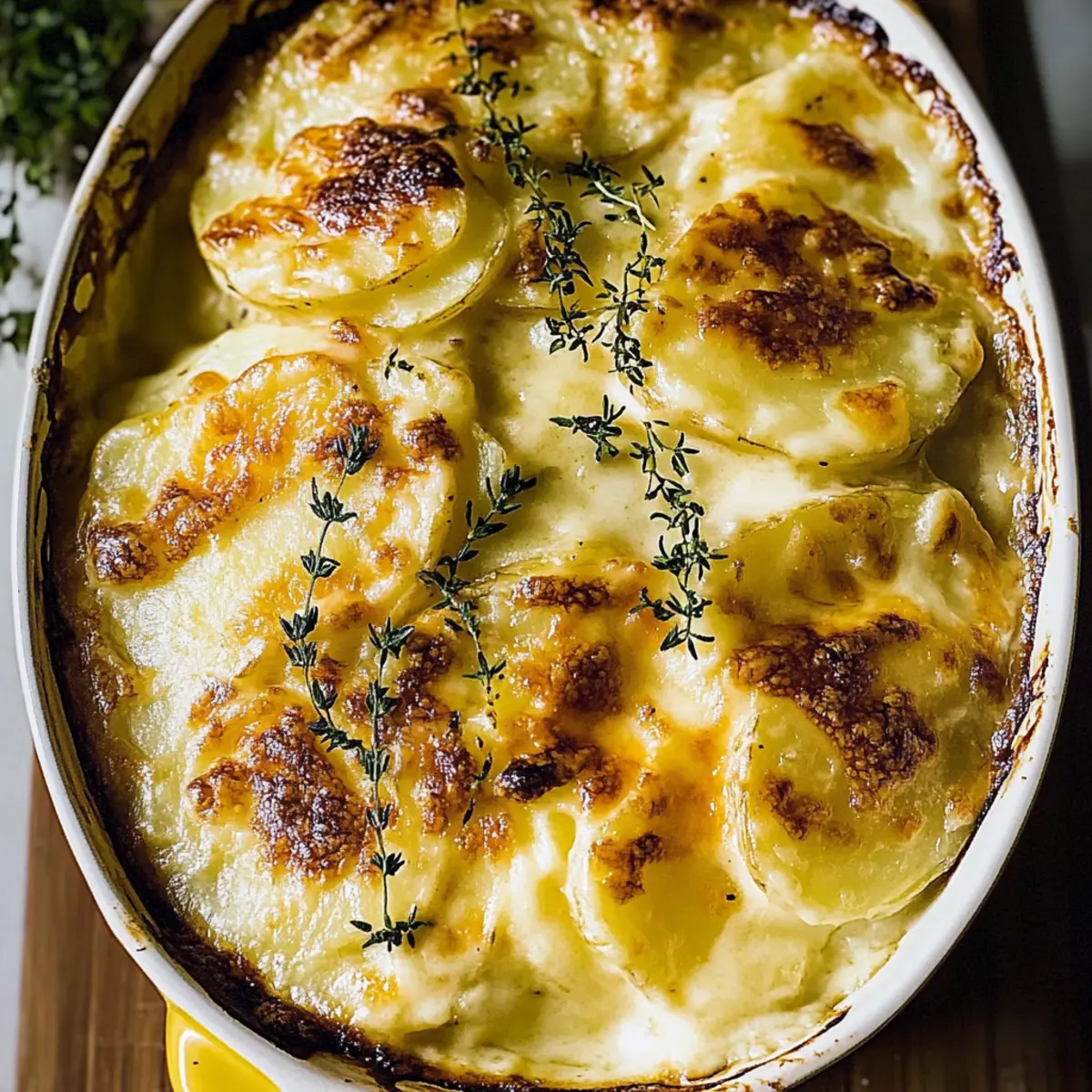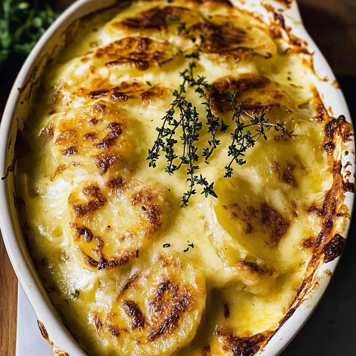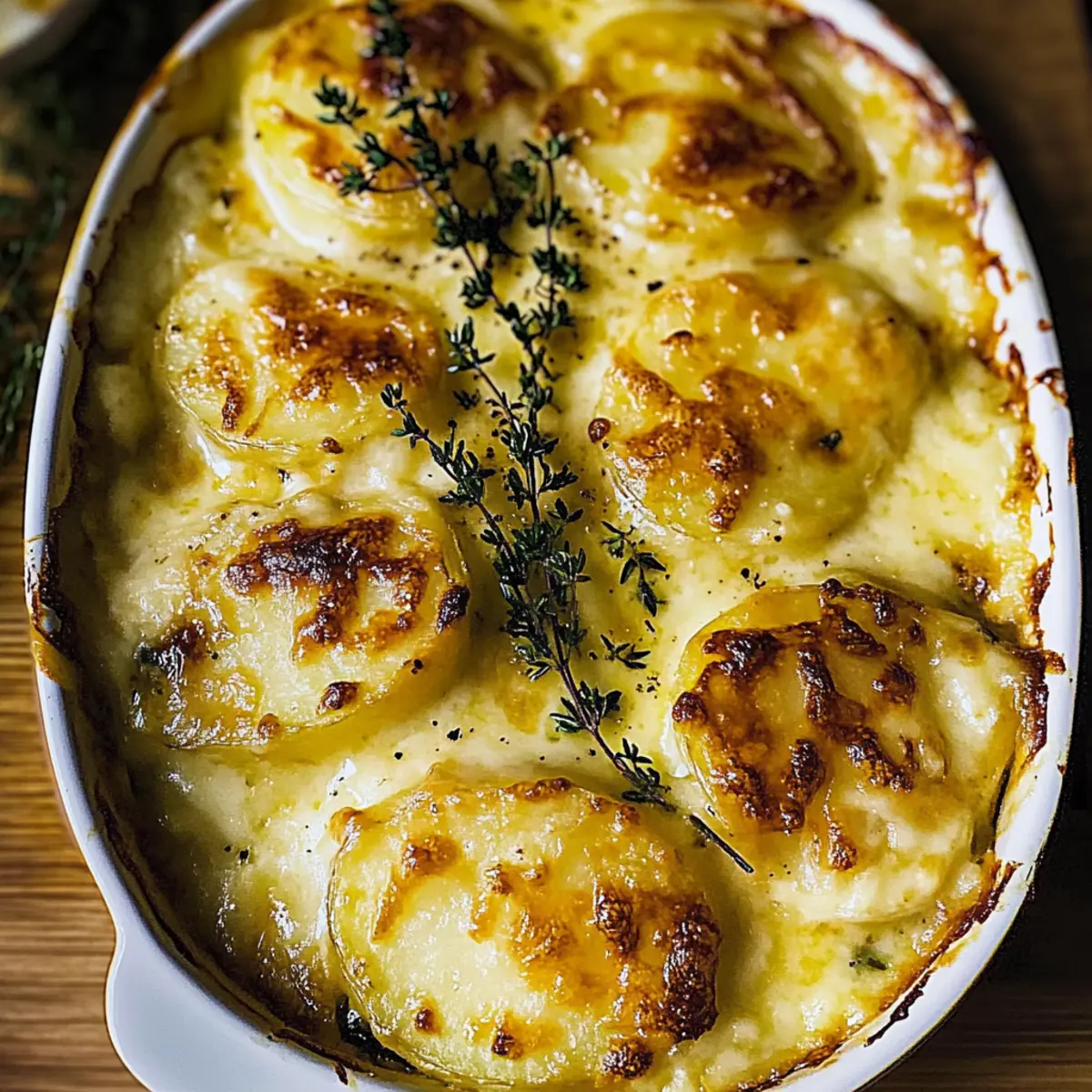 As I stood in my kitchen, the rich aroma of creamy garlic wafted around me, instantly transporting me to a charming French bistro. Today, I’m excited to share my take on Potatoes Dauphinoise, a classic side dish that’s both indulgent and brimming with comfort. The magic lies in the thinly sliced Yukon Gold potatoes, which soak up a luscious cream sauce infused with nutmeg and Gruyère cheese. This recipe is not just elegant; it boasts two irresistible perks—it’s deceptively simple to prepare and perfect for impressing guests at any special occasion. Whether served alongside roasted meats or at a festive gathering, your loved ones will be craving more of this creamy delight. Are you ready to elevate your home-cooked meals? Let’s dive into this luscious recipe! Why Are Potatoes Dauphinoise So Irresistible? Decadent Creaminess: Each bite of these Potatoes Dauphinoise envelops your palate in rich, velvety cream and melted cheese, making it a truly indulgent experience. Quick Preparation: The straightforward steps ensure you can whip up this dish in no time, just like my Parmesan Chicken Potatoes, without sacrificing flavor. Versatile Pairing: Serve them as a luxe side to roasted meats, or showcase them at a festive spread, and watch your guests rave! Classic French Flair: Embrace the charm of French cuisine in your own kitchen, impressing friends and family with minimal effort. Crowd-Pleasing Comfort: This dish brings warmth and happiness to any table, making it perfect for gatherings or cozy dinners alike! Potatoes Dauphinoise Ingredients For the Potatoes • Yukon Gold Potatoes – Essential for achieving that creamy, velvety texture; their waxy nature holds up beautifully in the cream. For the Cream Sauce • Heavy Cream – The heart of the sauce; use at least 33% fat content to ensure richness. • Garlic – One clove, smashed and steeped, adds a delicate depth without overwhelming the dish. • Bay Leaves – Infuse the cream with aromatic herby notes for enhanced flavor. • Kosher Salt – Enhances all flavors; remember to adjust if using table salt. • Black Pepper – A necessary seasoning to balance the richness of the dish. • Nutmeg – A classic addition for warmth in cream sauces, use sparingly for a subtle touch. • Fresh Thyme (optional) – Adds a hint of freshness, but can be omitted if you don’t have it. For the Finish • Gruyère Cheese – This cheese provides a mild, nutty flavor along with superb melting properties; it’s essential for that creamy finish. Step‑by‑Step Instructions for Potatoes Dauphinoise Step 1: Preheat the Oven Begin by preheating your oven to 400°F (204°C). This step is crucial for achieving that perfect bubbling, golden-brown top on your Potatoes Dauphinoise. Set aside a 9×13-inch casserole dish to grease later, ensuring your preparation moves smoothly from one step to the next. Step 2: Prepare the Potatoes Wash, peel, and then thinly slice the Yukon Gold potatoes to about ¼ inch thick. A food processor or mandolin works wonderfully for this task, promoting uniform thickness that cooks evenly. Layer the slices on a clean towel to absorb excess moisture, preparing them for the rich cream sauce. Step 3: Create the Cream Sauce In a heavy bottomed pot, combine the heavy cream, smashed garlic, bay leaves, kosher salt, black pepper, nutmeg, and optional fresh thyme. Heat the mixture over medium heat until it reaches a gentle simmer, allowing the flavors to meld beautifully for about 5-7 minutes. Stir occasionally and keep an eye on it to prevent boiling. Step 4: Simmer the Potatoes Carefully add the sliced potatoes to the pot with the simmering cream. Gently stir everything together, coating the potatoes. Allow the mixture to simmer for an additional 7-10 minutes on low heat until the potatoes are just fork-tender, ensuring they maintain their shape for the final bake. Step 5: Prepare the Casserole Dish While the potatoes simmer, grease your prepared casserole dish generously with butter or oil. This will prevent the creamy mixture from sticking and ensure a beautiful presentation. A well-prepped dish means your Potatoes Dauphinoise will slide out easily when it’s time to serve. Step 6: Layer the Potatoes and Cheese Begin layering half of the simmered potato slices into the greased casserole dish, ensuring even distribution. Sprinkle half of the shredded Gruyère cheese on top, allowing it to melt beautifully as it bakes. This layering technique builds flavor and texture, making every bite of Potatoes Dauphinoise irresistible. Step 7: Complete the Layers Add the remaining potato slices on top of the cheese layer, making sure to spread them out evenly. Carefully pour the delicious cream mixture over the potatoes until they’re just covered; be sure to discard any excess so your dish isn’t soupy. This step is key to achieving that creamy, decadent texture. Step 8: Top with Cheese and Bake Finish by adding the remaining Gruyère cheese on top, ensuring a rich, cheesy crust forms as it bakes. Place the casserole in your preheated oven and bake for 20-25 minutes, or until the top is golden brown and bubbly. The delicious aroma will fill your kitchen, promising an unforgettable dish. Step 9: Cool and Serve Once finished, remove your Potatoes Dauphinoise from the oven and let it cool slightly for about 5-10 minutes. This resting time allows the flavors to settle. Serve warm as an indulgent side dish, and watch as everyone raves about its creamy, rich goodness! Potatoes Dauphinoise Variations & Substitutions Feel free to personalize your Potatoes Dauphinoise with these delightful twists that will enhance your dish! Cheese Alternatives: Swap Gruyère for Fontina or Emmental for an exciting flavor shift. Each cheese melts beautifully, offering a new taste experience. Herb Boost: Incorporate fresh herbs like rosemary or chives for a fragrant infusion. Just a sprinkle elevates the dish and makes each bite a little brighter. Veggie Add