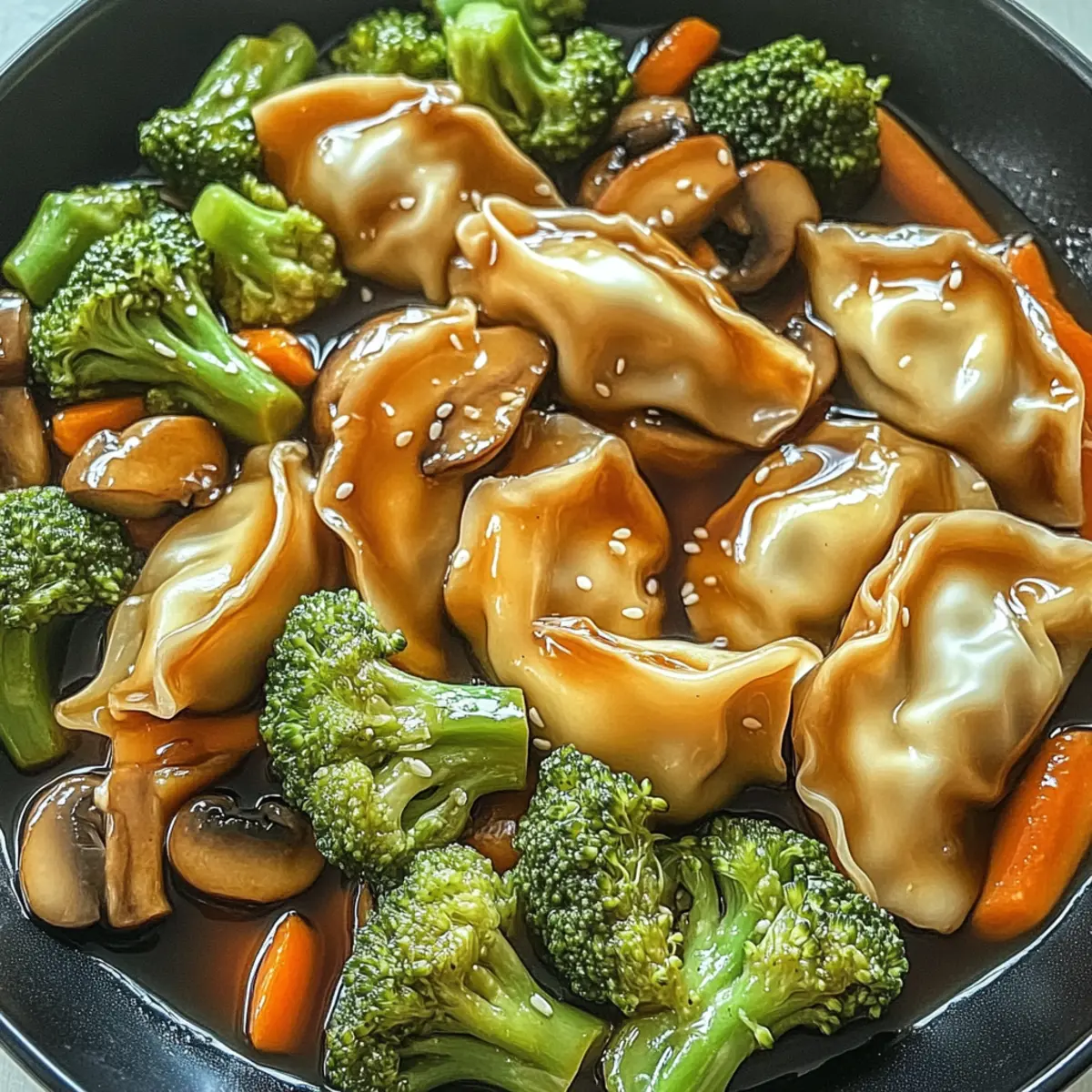 Once everything is well-combined, remove the skillet from heat and transfer your Potsticker Stir Fry to serving plates. For an added touch, garnish with a sprinkle of sesame seeds and thinly sliced green onions. Serve immediately alongside fluffy jasmine rice or quinoa for a complete meal that delights both taste and texture.