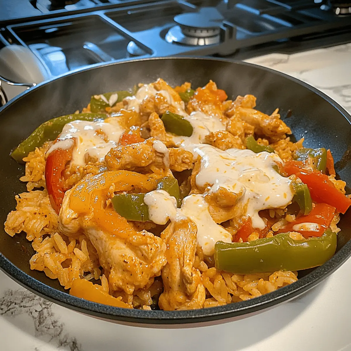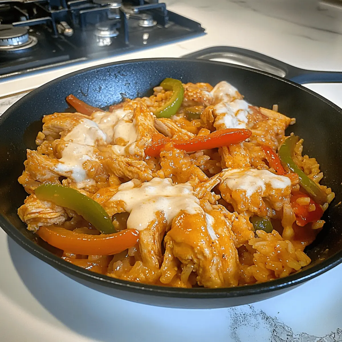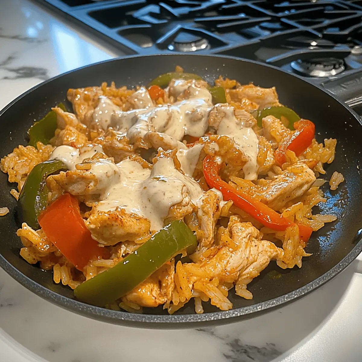 The aroma of sizzling chicken and vibrant bell peppers fills my kitchen, evoking memories of lively family dinners and laughter. This One-Pan Queso Chicken Fajita Skillet is not just a dish; it’s a celebration of flavor and comfort, proving that a quick meal doesn’t have to sacrifice taste. Within minutes, you can have tender chicken, fluffy rice, and a creamy cheese dip mingling together, creating an easy and family-friendly feast. One of the best parts? You’ll only need one skillet for this delightful recipe, making cleanup a breeze after a busy day. Plus, with its rich American-Mexican flair, it’s sure to impress even the pickiest eaters at your table. Are you ready to bring this vibrant dish to life? Let’s dive in! Why is this Skillet Recipe a Must-Try? Simplicity: This Queso Chicken Fajita Skillet is incredibly easy to prepare—perfect for a weeknight dinner when you want flavor without fuss. Flavor Explosion: The mix of sautéed chicken, bell peppers, and melty cheese creates an irresistible combination that will have your taste buds dancing! One-Pan Wonder: Cleanup is a breeze with only one skillet used, allowing you to enjoy your meal without the hassle of multiple dishes. Family-Friendly: With its vibrant colors and creamy textures, this dish appeals to both kids and adults, making it a hit for family gatherings. Versatile: Feel free to customize it with extra veggies or proteins, ensuring everyone at your table leaves satisfied! For more quick ideas, don’t forget to check out my delicious Chicken Fajita Pasta recipe for another family favorite. Queso Chicken Fajita Skillet Ingredients For the Chicken Boneless Skinless Chicken Breasts – This main protein is diced into small pieces for quicker cooking. For the Vegetables Olive Oil – Ideal for sautéing, but you can substitute with avocado oil if desired. Yellow Onion – Adds sweetness and flavor; feel free to use white or red onions as alternatives. Bell Peppers (Red, Green, Orange) – Provides nutrition and vibrant colors; swap for your favorite veggies if needed. For the Seasoning Fajita Seasoning – This mix brings traditional fajita flavors to the dish; a homemade spice blend works beautifully, too. For the Base Minute Rice – A quick-cooking rice that streamlines the recipe; replace it with other quick grains but watch the liquid ratios. Chicken Broth – Enhances the dish’s depth; for a vegetarian option, vegetable broth is a great substitute. Tomato Sauce – Adds moisture and acidity; diced tomatoes or tomato puree can be substituted if you prefer. For the Topping Gordos Cheese Dip – This creamy topping is essential for richness; any cheese dip or melted cheese can also be used. With these flavorful ingredients, your Queso Chicken Fajita Skillet will be a delightful and satisfying meal for the whole family! Step‑by‑Step Instructions for Queso Chicken Fajita Skillet Step 1: Sauté Onions and Peppers Heat 1 tablespoon of olive oil in a large skillet over medium-high heat. Once the oil shimmers, add the diced yellow onion and a mix of colorful bell peppers. Sauté for 2-3 minutes, stirring occasionally, until the onions are translucent and the peppers start to soften, releasing their vibrant colors and sweet aroma. Step 2: Cook the Chicken Add the diced boneless skinless chicken breasts to the skillet, sprinkling fajita seasoning generously over the top. Stir well to coat the chicken evenly. Cook the mixture for about 7-8 minutes, stirring occasionally, until the chicken is fully cooked through and reaches an internal temperature of 165°F, turning golden brown as it sears. Step 3: Add Rice and Liquids Once the chicken is cooked, stir in uncooked Minute Rice, followed by the tomato sauce and chicken broth. Mix everything thoroughly, ensuring the rice is evenly distributed. Bring the mixture to a gentle simmer over medium heat for about 2 minutes, allowing the flavors to blend and the rice to absorb the delicious broth. Step 4: Let It Sit Turn off the heat and cover the skillet with a lid. Let the Queso Chicken Fajita Skillet sit for 5 minutes, allowing the rice to soak up the remaining liquid. During this time, you’ll notice the rice puffing up and the dish becoming even more fragrant, combining all those wonderful flavors. Step 5: Add the Cheese Dip Once the rice has absorbed the liquid, uncover the skillet and spoon the rich Gordos Cheese Dip over the top. Allow it to melt and blend with the chicken and rice mixture for a creamy finish. If desired, place a lid back on the skillet for a minute to achieve extra gooeyness. Step 6: Serve and Enjoy Carefully stir the melted cheese into the Queso Chicken Fajita Skillet to combine all the ingredients. Serve warm, and consider garnishing with fresh cilantro, green onions, or a dollop of sour cream. This easy and satisfying dish is perfect for a family dinner and sure to be a crowd-pleaser! How to Store and Freeze Queso Chicken Fajita Skillet Fridge: Store leftovers in an airtight container for up to 3 days. Be sure to let it cool before sealing to maintain quality. Freezer: This dish can be frozen for up to 2 months. Portion out in freezer-safe containers, leaving space for expansion. Reheating: To reheat, thaw overnight in the fridge, then warm on the stovetop over medium heat, stirring occasionally until heated through. Serving Tip: Add a splash of chicken broth while reheating to help bring back the creamy texture of the Gordos Cheese Dip in your Queso Chicken Fajita Skillet. Expert Tips for Queso Chicken Fajita Skillet Cut Uniformly: Ensure that the chicken is diced into even pieces for consistent cooking. This prevents some pieces from being overcooked while others remain undercooked. Stir Frequently: Remember to stir the rice mixture occasionally to prevent it from sticking to the skillet. This will keep everything from burning and ensure an even cook. Veggie Crunch: Avoid overcooking the bell peppers and onions; you want them to maintain their