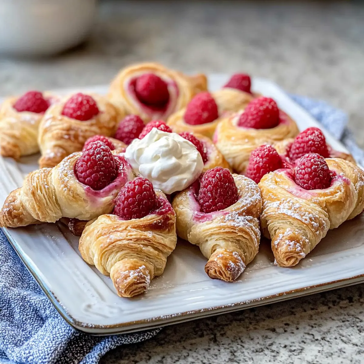 As I stood in my kitchen last weekend, the aroma of warm, flaky pastry filled the air, instantly transporting me to a quaint café in Copenhagen. This Easy Raspberry Danish with Cream Cheese Filling is not just a recipe; it’s a delightful experience that brings the charm of European bakeries right to your home. With its crispy, buttery puff pastry and a luscious cream cheese layer bursting with fresh raspberries, this treat can effortlessly transition from breakfast to dessert. Best of all, it’s incredibly quick and easy to prepare, allowing you more time to savor the delicious results. And if you’re like me and love being prepared, these danishes can be made ahead and frozen, ready to impress guests or satisfy that midday sweet craving. Curious about how to whip these up yourself? Let’s dive in! Why Is This Raspberry Danish So Special? Easy to prepare: With just a few simple ingredients and minimal effort, you’ll master the art of pastry baking in no time! Bursting with flavor: The combination of sweet cream cheese and tangy raspberries makes every bite a fruity delight. Versatile dessert option: Perfect for breakfast, brunch, or an afternoon treat, this pastry fits any occasion seamlessly! Make-ahead convenience: Assemble them ahead of time and freeze—just pop them in the oven when you’re ready to impress! Impressive presentation: Watch as your guests marvel at the golden, flaky layers—no one will believe how effortless they were to make! Indulge in your newfound pastry skills and bring a taste of elegance to your table! For additional tips on perfecting your baking techniques, check out our baking essentials guide. Raspberry Danish Ingredients • It’s the must-have list for your perfect pastry! For the Pastry Puff Pastry – This is the backbone of the raspberry Danish; use thawed frozen sheets for a buttery, flaky texture. Egg – Essential for the egg wash that gives your pastry a golden, beautiful finish. Flour – A sprinkle on your work surface prevents sticking while rolling out the dough. For the Filling Cream Cheese – The heart of the filling, providing a rich and creamy base—make sure it’s softened for flawless blending. Powdered Sugar – Sweetens the cream cheese mixture beautifully; you can adjust this based on the tartness of your raspberries. Vanilla Extract – Elevates the flavor of the cream cheese filling, adding a hint of warmth and sweetness. Fresh Raspberries – The star of the show, bringing vibrant color and tang; feel free to swap for other berries if desired! Ready to bring some joy to your kitchen? Let’s whip up that delightful raspberry Danish! Step‑by‑Step Instructions for Raspberry Danish Step 1: Prepare the Filling In a mixing bowl, blend 8 ounces of softened cream cheese with 1/2 cup of powdered sugar and 1 teaspoon of vanilla extract using an electric mixer until smooth and creamy. Taste the filling and adjust the sweetness if necessary based on the tartness of your fresh raspberries. Set this creamy mixture aside as you move on to the dough preparation. Step 2: Roll Out the Dough Lightly flour your work surface and carefully unroll a sheet of thawed puff pastry. Using a rolling pin, roll it out into a square approximately 10.5 inches wide. With a sharp knife or pizza cutter, slice the dough into nine equal squares, each measuring about 3.5 inches. Keep your workspace lightly floured to prevent sticking while you assemble the pastries. Step 3: Fill the Pastry Take each square of dough and add a generous dollop of the cream cheese mixture to the center. Top it with 2-3 fresh raspberries, ensuring they’re nestled into the filling but not overflowing. This step is crucial for a perfectly balanced Raspberry Danish, ensuring each bite has a delightful burst of fruitiness. Step 4: Shape the Pastries To form the danishes, fold each square diagonally, bringing one corner to meet the opposite corner. Seal the edges tightly with your fingers or use the tines of a fork for an extra decorative touch. Brush the edges lightly with an egg wash (a beaten egg) to help them adhere and achieve a beautiful golden color when baked. Step 5: Chill the Assembled Pastries Place the folded danishes on a parchment-lined baking sheet, ensuring they are spaced adequately apart. Cover them loosely with plastic wrap and refrigerate for at least 30 minutes or freeze if you’re preparing ahead. Chilling the pastries helps maintain their shape and enhances the flakiness during baking. Step 6: Bake Preheat your oven to 400°F (200°C). Once hot, remove the pastries from the refrigerator and brush the tops with the leftover egg wash for a glossy finish. Bake them on the prepared parchment-lined pan for 25-30 minutes, or until they are puffed up and golden brown. Keep an eye on them as they bake for that perfect crisp. Step 7: Serve Once baked, allow your stunning Raspberry Danish to cool for a few minutes on a wire rack. For an extra special touch, dust them lightly with powdered sugar before serving. These pastries are perfect for brunch or as a delightful dessert, and they’re sure to impress your family and friends with their beautiful presentation! How to Store and Freeze Raspberry Danish Fridge: Store baked Raspberry Danish in an airtight container for up to 3 days to maintain their freshness and flaky texture. Freezer: Assemble and freeze the unbaked danishes for up to 2 months. Just bake them directly from the freezer, adding a few extra minutes to the baking time. Reheating: To enjoy leftover baked pastries, reheat in a 350°F (175°C) oven for about 10-15 minutes until warmed through and crispy again. Wrap Carefully: If storing baked danishes, wrap them individually in plastic wrap and foil to prevent freezer burn and maintain taste. Make Ahead Options These Easy Raspberry Danish with Cream Cheese Filling are perfect for the busy home cook looking to save time during the week! You can prepare the danishes up to 24 hours in advance by assembling