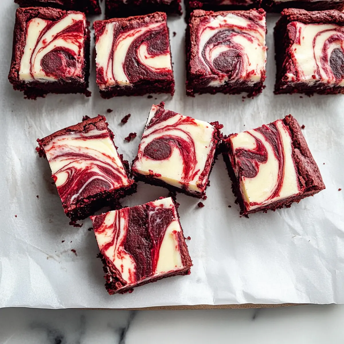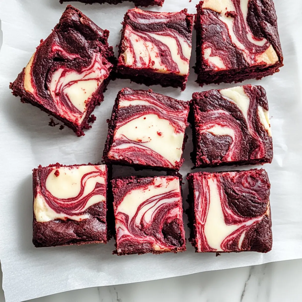 As I rummaged through my kitchen drawers, a vibrant bottle of red food coloring caught my eye, sparking sweet nostalgia. These Red Velvet Cheesecake Brownies have become a staple in my home, perfect for expressing affection during special occasions or simply satisfying a sweet tooth. Each bite offers a heavenly fusion of rich, fudgy chocolate with a creamy cheesecake swirl that balances delightful tanginess with indulgence. The beauty of this recipe lies not just in its breathtaking appearance but also in its quick prep time, making it a crowd-pleaser even on busy days. Whether you’re aiming to impress a partner or treat yourself, these brownies will surely steal the show! Are you ready to indulge in this scrumptious dessert? Why Are These Brownies So Special? Decadent Texture: The combination of fudgy brownie and creamy cheesecake creates a heavenly bite that’s hard to resist. Stunning Visual Appeal: With their vibrant red hue and elegant swirl, these brownies are perfect for impressing guests at any gathering. Quick Prep Time: Ready in under an hour, these brownies save you time while delivering maximum flavor. Versatile Treat: Ideal for Valentine’s Day or any occasion, they can be topped with whipped cream or a drizzle of chocolate for an extra touch. Easy Substitutions: Customize effortlessly to suit dietary preferences, such as using coconut oil for a dairy-free option. Make sure to try other delightful desserts like Cherry Cheesecake Cupcakes or our rich Nutella Cheesecake Bars for a sweet variety! Red Velvet Cheesecake Brownies Ingredients For the Brownie Base • Unsalted Butter – Adds richness and moisture to the brownies; coconut oil works for a dairy-free version. • Granulated Sugar – Sweetens the brownies for a chewy texture; substitute with brown sugar for a deeper flavor. • Eggs – Provide structure and stability; use at room temperature for better emulsification. • Red Food Coloring – Gives the brownies their signature color; natural beet juice can be a lovely alternative. • Vanilla Extract – Enhances sweetness; omitting can simplify flavor, but it’s not recommended. • Salt – Balances sweetness; don’t skip this essential ingredient. • All-Purpose Flour – Provides structure and a tender crumb; gluten-free flour can be substituted. • Dutch Process Cocoa Powder – Contributes to the chocolate flavor; regular cocoa powder is an alternative, though it may vary in color and taste. For the Cream Cheese Swirl • Cream Cheese – Adds creaminess and tang; mascarpone can be used for a different flavor profile. • Additional Egg – Binds the cheesecake mixture together, ensuring a creamy texture. • Granulated Sugar (for swirl) – Sweetens the cream cheese mixture; powdered sugar offers a smoother consistency if preferred. These Red Velvet Cheesecake Brownies are a treat that beautifully combines indulgence and vibrant aesthetics! Step‑by‑Step Instructions for Red Velvet Cheesecake Brownies Step 1: Preheat and Prepare the Pan Begin by preheating your oven to 350°F (175°C). While it heats, line an 8 x 8 inch baking pan with parchment paper, allowing some overhang for easy removal later. This step ensures the perfect base for your Red Velvet Cheesecake Brownies, preventing them from sticking to the pan. Step 2: Make the Brownie Batter In a medium bowl, combine melted unsalted butter with granulated sugar, whisking until it appears glossy and well integrated. This should take about 1-2 minutes. The mixture will form the fudgy base of your brownies, giving them that rich texture we love, so keep whisking until smooth. Step 3: Add Eggs and Color Beat in the eggs one at a time, fully incorporating each before adding the next. Continue whisking for about 2 minutes until the mixture is slightly foamy. Then, mix in the vanilla extract and red food coloring thoroughly, creating a vibrant blend that gives those brownies their signature hue. Step 4: Incorporate Dry Ingredients Sift in the all-purpose flour, Dutch process cocoa powder, and salt into the mixture. With a spatula or wooden spoon, gently fold until no streaks of flour remain. Be careful not to overmix—just combine until smooth to maintain that rich, fudgy texture in your Red Velvet Cheesecake Brownies. Step 5: Spread the Brownie Batter Pour the prepared brownie batter into the lined baking pan, smoothing it out with a spatula to ensure even coverage. This creates a solid foundation for your cheesecake swirl. Visualize a luscious, thick layer ready to complement the creamy topping, which is the next exciting step! Step 6: Prepare the Cream Cheese Mixture In another mixing bowl, beat the cream cheese at room temperature with an additional egg and sugar for the cheesecake swirl. Whisk until smooth and creamy, ensuring it’s well combined. This step is crucial for achieving that decadent contrast with your brownies’ rich base. Step 7: Swirl the Cream Cheese Drop the cheesecake mixture in dollops over the brownie batter. Using a knife or a skewer, gently swirl the cream cheese to create a stunning marbled effect while being careful not to completely blend the two layers. This will give your Red Velvet Cheesecake Brownies a beautiful visual appeal. Step 8: Bake to Perfectness Place the pan in your preheated oven and bake for 30-35 minutes. The brownies are done when a knife inserted into the center comes out clean, indicating that the brownies are baked but still fudgy. Keep an eye on them as they bake to avoid overcooking. Step 9: Cool and Slice Once baked, remove the pan from the oven and allow the brownies to cool completely in the pan on a wire rack. Cooling ensures cleaner cuts when slicing into squares and enhances the flavors of your Red Velvet Cheesecake Brownies, making them truly delightful. Step 10: Serve and Enjoy Once cooled, carefully lift the brownies from the pan using the parchment paper overhang and slice into your desired squares. Now, you have beautifully marbled Red
