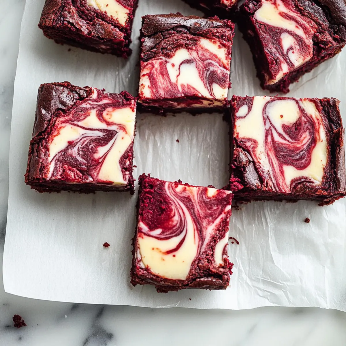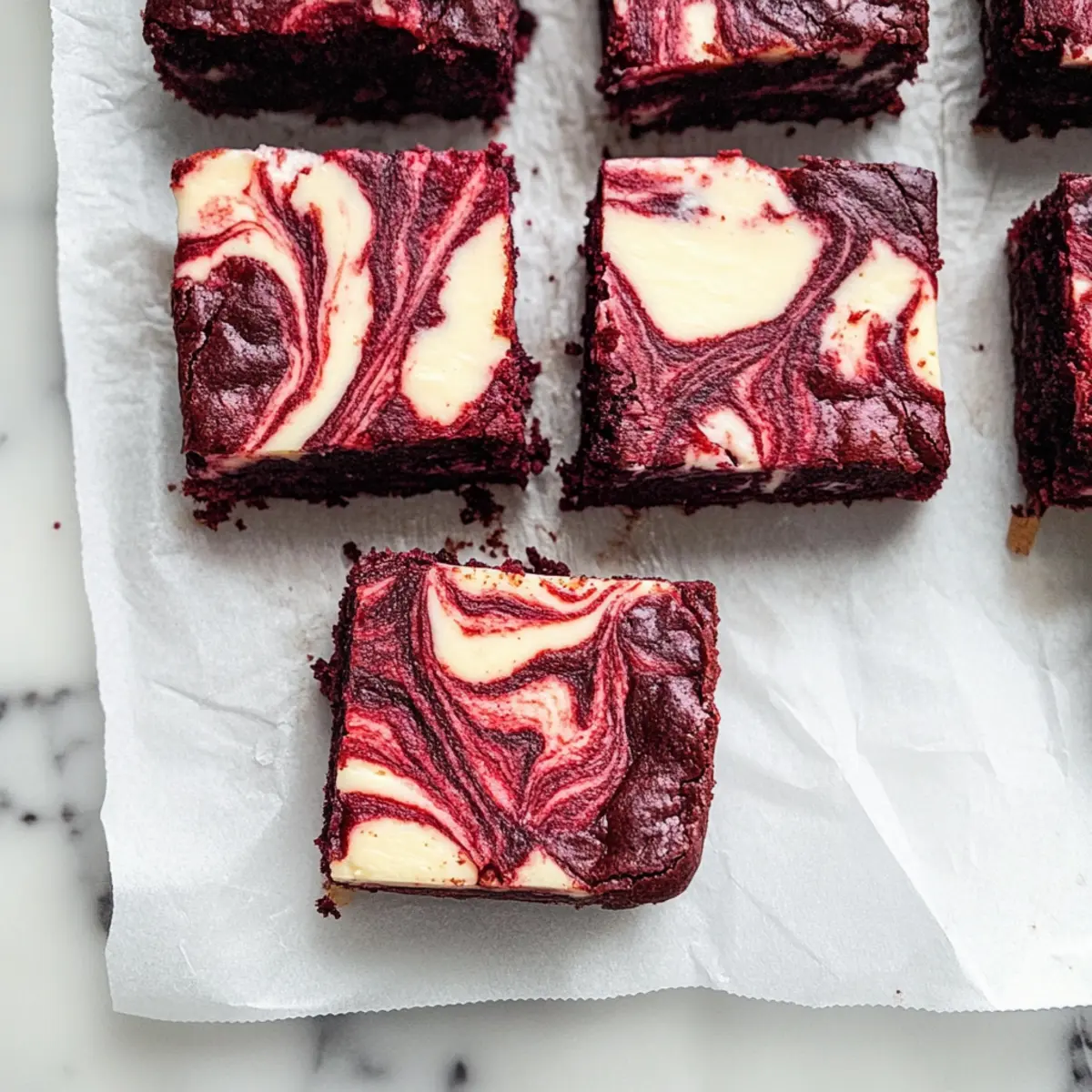 It was a chilly February afternoon when I decided to bring a little warmth into my kitchen. The moment I pulled the vibrant pan of Red Velvet Cheesecake Brownies from the oven, the rich scent of chocolate and cream cheese swirled around me like a cozy hug. These irresistibly fudgy brownies, with their striking red hue and creamy swirl, are the perfect treat for Valentine’s Day—or any day, really! Not only do they meld the nostalgic flavors of red velvet cake with a delightful cheesecake layer, but they also whip up quickly, making them ideal for last-minute celebrations. Whether you’re treating yourself or impressing guests, these brownies promise to be a showstopper. Are you ready to savor a bite of bliss? Why are these Brownies So Irresistible? Decadence Redefined: These Red Velvet Cheesecake Brownies fuse classic red velvet richness with a luscious cheesecake swirl, making each bite a delightful treat. Time-Saving Marvel: With quick prep and bake times, you can whip up these indulgent brownies in no time, perfect for a spontaneous celebration. Versatile Treats: Swap in white chocolate chips or mix flavors to suit your taste and impress even the pickiest eaters. Crowd-Pleasing Delight: Ideal for gatherings or cozy nights in, these brownies are a guaranteed hit that will leave everyone wanting more. Joyful Indulgence: Their striking color and rich taste create a festive atmosphere, making them a must for any celebration—especially Valentine’s Day! If you’re looking to explore other rich desserts, consider trying out Tiramisu Brownies Indulge or the delightful Basque Cheesecake Indulgence for even more sweet moments! Red Velvet Cheesecake Brownie Ingredients • Explore the delightful elements of these decadent treats! For the Brownie Base Unsalted Butter – Adds moisture and richness; substitute with margarine or coconut oil for a dairy-free option. Granulated Sugar – Provides sweetness and structure; can be replaced with brown sugar for a deeper flavor. Large Eggs – Essential for binding; ensure they’re at room temperature for the best emulsification. Red Food Coloring – Contributes to the distinctive red hue; omit for non-red brownies or use beet powder for a natural option. Vanilla Extract – Enhances flavor; pure vanilla is preferred over imitation for the best taste. Salt – Balances sweetness and enhances flavor. All-Purpose Flour – Provides structure; can substitute with a gluten-free flour blend for a gluten-free option. Dutch Process Cocoa Powder – Adds a deep chocolate flavor; regular cocoa can also be used, but the taste will differ slightly. For the Cheesecake Swirl Cream Cheese – Forms the rich cheesecake layer, creating a creamy contrast; low-fat cream cheese can be used for a lighter version. Large Egg (for cheesecake) – Binds the cheesecake mixture for the perfect creamy texture. Embrace the art of baking with these Red Velvet Cheesecake Brownies, and let the delightful flavors unfold in every bite! Step‑by‑Step Instructions for Red Velvet Cheesecake Brownies Step 1: Preheat and Prepare Start by preheating your oven to 350°F (175°C). While the oven is heating, line an 8 x 8-inch pan with parchment paper, ensuring it hangs over the edges for easy removal. This step is crucial for achieving perfectly fudgy Red Velvet Cheesecake Brownies that won’t stick to the pan. Step 2: Mix the Brownie Base In a medium bowl, combine melted unsalted butter and granulated sugar, whisking until the mixture is glossy and smooth. This should take about 30 seconds. Next, add two large eggs, whisking vigorously for about 2 minutes until the mixture is emulsified and foamy, which helps to create that rich brownie texture. Step 3: Add Flavor and Color Stir in vanilla extract and red food coloring gently until evenly mixed. This vibrant color will make your brownies irresistibly eye-catching. Make sure to scrape the sides of the bowl with a spatula for an even blend, and wait until the mixture has a uniform hue before moving on. Step 4: Incorporate Dry Ingredients Gently fold in all-purpose flour, Dutch-process cocoa powder, and salt until no flour streaks remain. Be careful not to overmix; you want to maintain the fudgy texture that makes these Red Velvet Cheesecake Brownies so delightful. It’s okay if the batter remains slightly lumpy; just ensure the dry ingredients are fully combined. Step 5: Pour and Spread Pour the brownie batter into the prepared pan, using a spatula to spread it evenly across the bottom. This step is crucial for ensuring each bite of your Red Velvet Cheesecake Brownies is uniformly delicious. Smooth it out until the edges are even, making sure not to disturb the bottom layer too much. Step 6: Prepare the Cheesecake Swirl In a separate bowl, mix softened cream cheese, one egg, and sugar until smooth and creamy. This cheesecake mixture will contrast wonderfully with the rich brownie base. Ensure there are no lumps for the best texture, which will create a beautiful swirl effect in the brownies. Step 7: Create the Swirl Dollop the cream cheese mixture on top of the brownie batter. Using a knife or skewer, gently swirl the cheesecake mixture into the brownie batter, creating a marbled effect without overmixing. The prettiness that comes from this swirl is not only visually appealing—it adds a lovely creamy texture to your Red Velvet Cheesecake Brownies. Step 8: Bake to Perfection Place the pan in the preheated oven and bake for 30-35 minutes. Keep an eye on them; the brownies are done when a toothpick inserted comes out with a few moist crumbs, indicating that they are fudgy and perfect. Avoid overbaking to keep that delicious texture you’re craving. Step 9: Cool and Slice Once baked, remove the brownies from the oven and let them cool in the pan for at least 15 minutes. Then, lift the brownies out using the parchment paper edges and transfer them to a wire rack to cool completely. Once cool, slice into 16 squares and admire the st