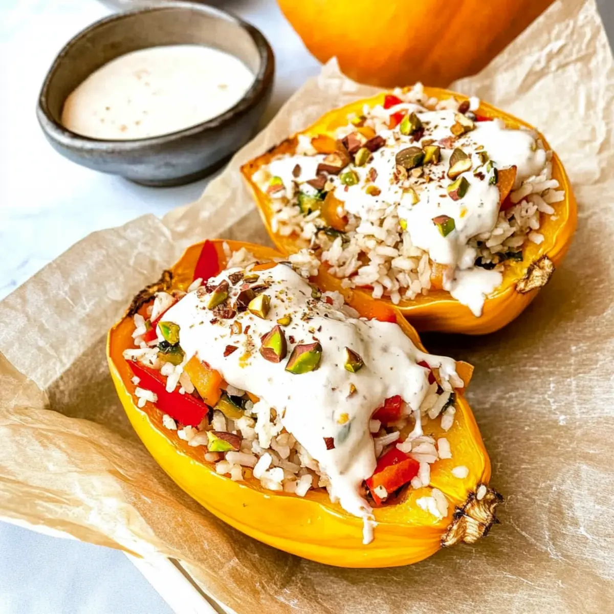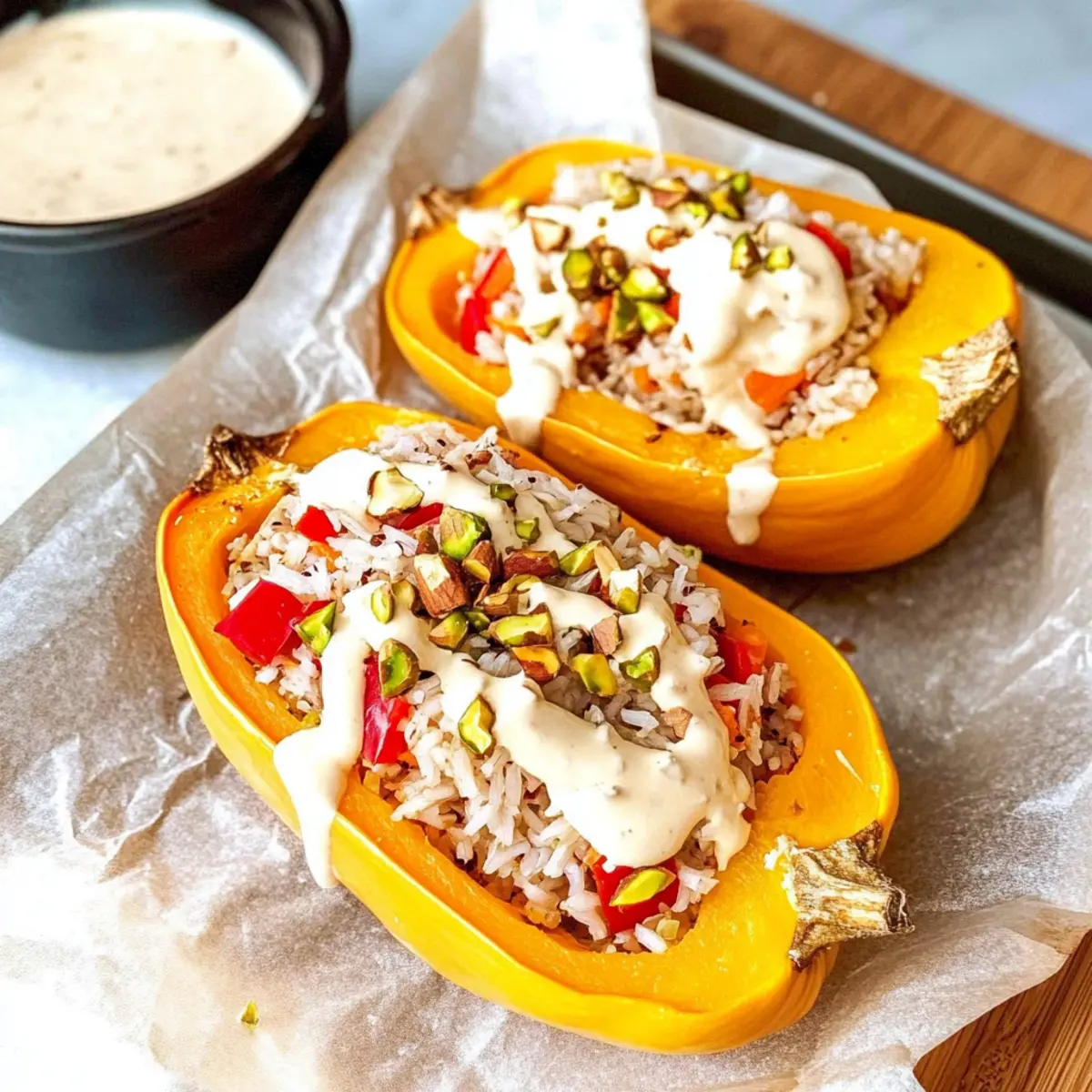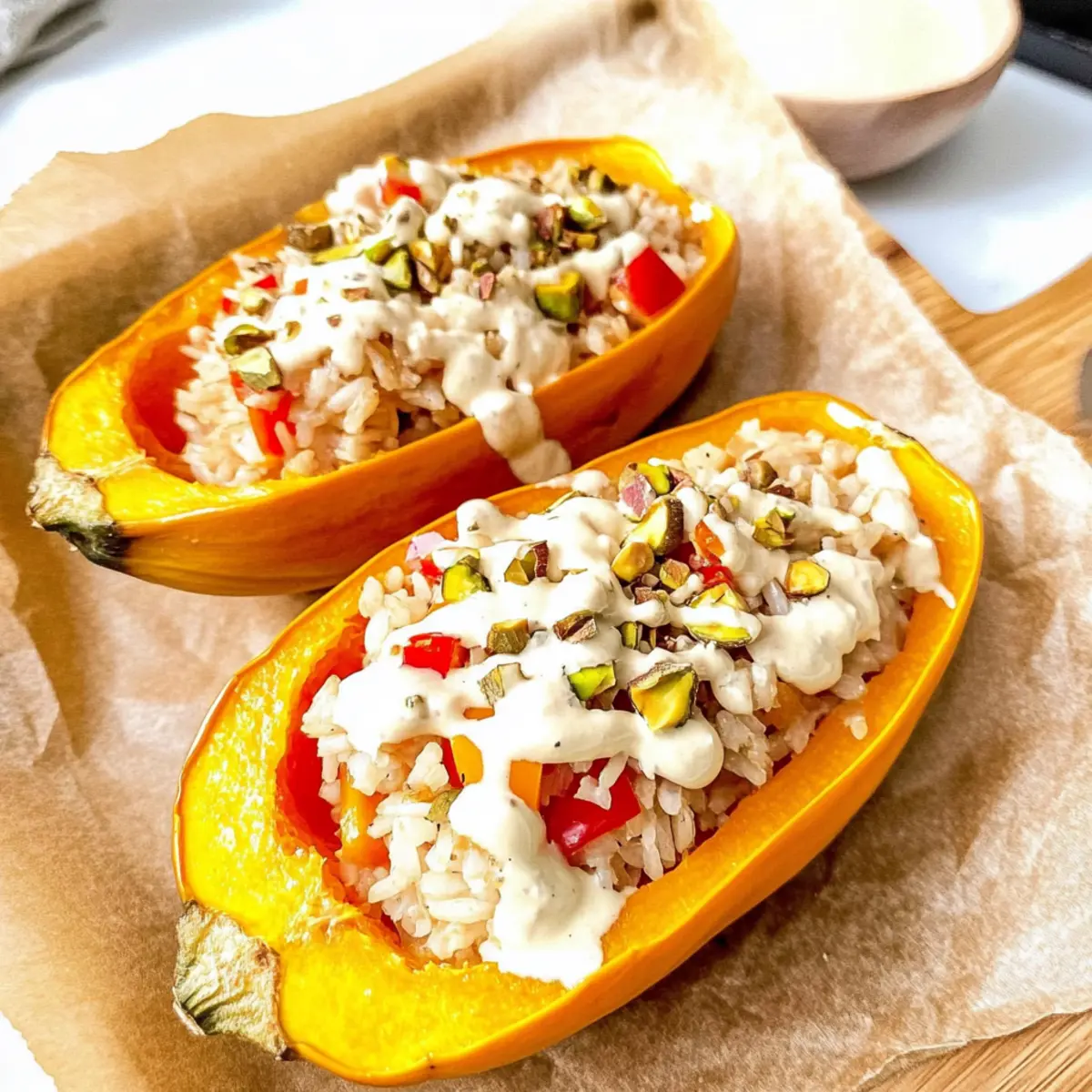 As autumn’s chill settles in, I find myself reaching for the comforting embrace of seasonal favorites, and nothing captures that cozy vibe quite like Rice Stuffed Butternut Squash. This stunning dish transforms the humble butternut squash into a show-stopping centerpiece filled with a delicious medley of rice, fresh vegetables, and melty mozzarella. Not only is this stuffed squash a feast for the eyes, but it also offers the perfect blend of nourishment and indulgence, making it a fabulous choice for both weeknight dinners and special occasions. Plus, it’s vegetarian and gluten-free, ensuring that everyone at the table can enjoy its hearty goodness. Ready to embrace the flavors of fall? Let’s get started! Why is Rice Stuffed Butternut Squash a Must-Try? Wholesome Comfort: This dish transforms the humble butternut squash into an irresistible centerpiece that embodies fall comfort food. Packed with flavor, a delightful mix of rice, fresh veggies, and gooey mozzarella tempts the taste buds. Versatile Serving Options: Pair it with a light salad or even some roasted vegetables for a balanced meal. Impressive Presentation: It’s not just tasty; its vibrant colors make for an eye-catching dish at any gathering. Plus, it’s vegetarian and gluten-free, similar to my Taco Stuffed Avocados, making it a crowd-pleaser. Make-Ahead Friendly: Cut down the dinner prep time by prepping in advance; just bake the squash before serving! It’s perfect for any autumn occasion. Rice Stuffed Butternut Squash Ingredients For the Squash • Butternut Squash – This natural sweetness becomes creamy and tender when roasted, making it ideal for stuffing. • Olive Oil – Use for roasting; it enhances flavor and helps achieve a golden-brown exterior, or substitute with avocado oil for a different taste. • Salt & Pepper – Essential for bringing out the natural flavors; adjust according to your palate. For the Filling • Rice – The hearty base; opt for cooked rice, with brown rice being a healthier alternative. • Red Bell Pepper – Adds sweetness and color; feel free to switch it up with yellow or orange bell peppers for a different flavor profile. • White Onion – Provides depth of flavor; yellow onion works well too if that’s what you have on hand. • Garlic (optional) – Boosts aroma; you can omit it to keep the dish low histamine. • Mozzarella – Delivers creaminess in the filling; choose a dairy-free cheese for a vegan twist if needed. • Pistachio Nuts – Introduces a delightful crunch; walnuts or almonds are great substitutes. • Pumpkin Seeds – Adds texture; sunflower seeds can be used as a nut-free alternative. • Dried Thyme & Sage – These herbs amp up the dish’s flavor; fresh herbs can elevate the taste even further. For the Tahini Dressing • Tahini – The base for a rich dressing; sunflower seed butter makes for a nut-free option. • Warm Water – Helps thin the tahini for a smooth consistency; this is key for dressing. • Sweet Paprika – Adds a subtle flavor; regular paprika can also do the trick, adding a warm touch to the dressing. This Rice Stuffed Butternut Squash makes for a delightful and nourishing dish, perfect for the cozy fall season ahead! Enjoy the blend of flavors and the satisfyingly wholesome experience it brings. Step‑by‑Step Instructions for Rice Stuffed Butternut Squash Step 1: Prepare the Squash Preheat your oven to 200°C (390°F). Carefully slice the butternut squash in half lengthwise, trimming the bottom to help it sit flat. Scoop out the seeds and lightly score the flesh. Drizzle each half with olive oil, then season generously with salt and pepper. Place them cut-side down on a baking sheet and roast for 35-40 minutes until the flesh is soft and tender. Step 2: Cook the Rice While the squash roasts, prepare the rice according to package instructions, ensuring it’s fully cooked and fluffy. If using brown rice, allow for a longer cooking time. Once ready, set the rice aside to cool slightly while you sauté the vegetables for your Rice Stuffed Butternut Squash. Step 3: Sauté Vegetables In a large skillet, heat a drizzle of olive oil over medium heat. Add diced onion and optional minced garlic, sautéing until softened and fragrant, about 3-4 minutes. Stir in diced red bell pepper and dried thyme and sage, cooking for an additional 4-5 minutes until all vegetables are tender and vibrant. Step 4: Mix the Filling Once the vegetables are sautéed, reduce the heat and stir in the cooked rice along with chopped pistachios, pumpkin seeds, and mozzarella cheese. Combine well to ensure the cheese melts into the mixture, creating a creamy filling for your Rice Stuffed Butternut Squash. Adjust seasoning with salt and pepper to your taste. Step 5: Stuff the Squash Allow the roasted butternut squash halves to cool for a few minutes until they are safe to handle. Carefully scoop out some flesh from the center and chop it up. Mix this with the rice mixture, then spoon the stuffing generously back into the squash halves. If desired, tie them together gently with kitchen string to hold the filling in place. Step 6: Final Bake Return the stuffed squash to the oven, placing them back on the baking sheet. Bake for another 15-20 minutes until everything is heated through and slightly golden on top. Check for doneness by ensuring the filling is hot and the squash skin is just beginning to caramelize. Step 7: Make the Dressing In a small bowl, whisk together tahini, warm water, and sweet paprika until you achieve a creamy, smooth consistency. If the dressing is too thick, add a bit more warm water until it reaches your desired drizzle-ability. This tahini dressing will add a lovely richness to your Rice Stuffed Butternut Squash. Step 8: Serve and Enjoy Once the stuffed squash is out of the oven, place them on serving plates. Drizzle with the creamy tahini dressing for added flavor and garnish with fresh herbs if available. This Rice Stuffed Butternut S