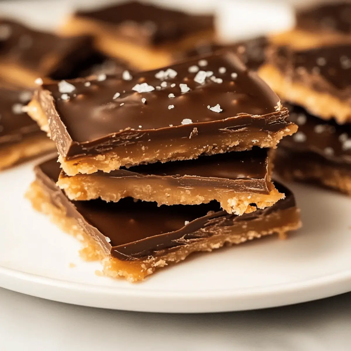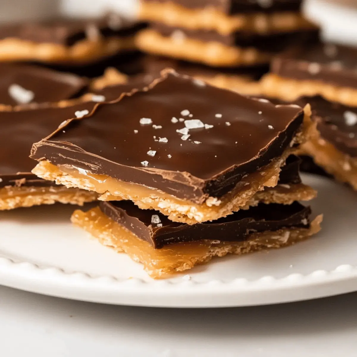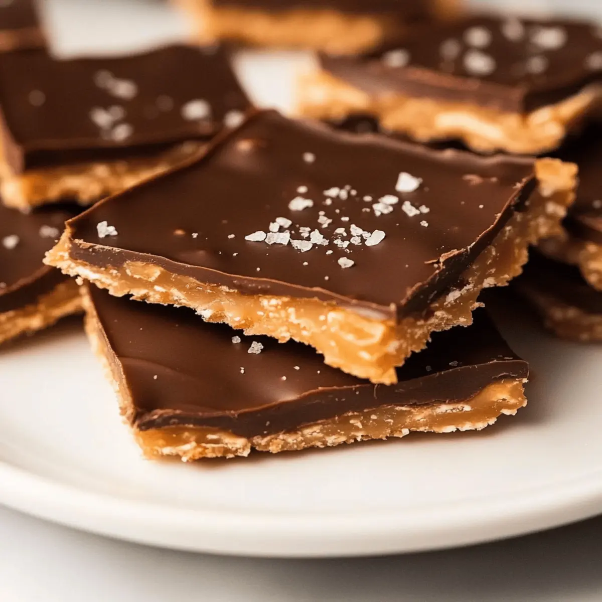 As I cracked open another festive box of goodies this holiday season, I stumbled upon a treasure that instantly transported me to my childhood living room, filled with laughter and the smell of sweet indulgence—Ritz Cracker Toffee. Also lovingly known as Christmas Crack, this sensational treat layers the tangy crunch of Ritz crackers with a melt-in-your-mouth toffee and smooth chocolate. What makes this recipe so enticing is its amazing simplicity; with only five ingredients and minimal effort, it’s perfect for busy cooks like us who want to impress without the stress. Plus, the sweet and salty combination makes it an instant crowd-pleaser at any holiday gathering! Curious about how to make this addictive delight yourself? Let’s dive right into the magic of creating your own batch of Ritz Cracker Toffee! Why is Ritz Cracker Toffee a Must-Try? Simplicity at its Finest: With only five ingredients, this recipe is a breeze to whip up, making it ideal for anyone short on time during the busy holiday season. Sweet and Salty Harmony: The unique blend of buttery Ritz crackers and rich toffee creates an irresistible balance that keeps you coming back for more. Versatile Topping Options: You can personalize your toffee by swapping chocolate or adding festive toppings like nuts or colored sprinkles, making it perfect for any celebration. Perfect for Gifting: Wrap these delightful treats in a festive tin or box for homemade holiday gifts that friends and family will adore. Crowd-Appealing Flavor: At holiday parties, this toffee is sure to steal the show, becoming the highlight of any dessert table—you might even want to keep some hidden just for yourself! No need to feel overwhelmed; this is a fantastic way to impress with minimal effort, just like my classic chocolate chip cookies. Ritz Cracker Toffee Ingredients For the Base • Ritz Crackers – These buttery crackers create the perfect crunchy base that balances the sweet toffee. • Butter – Adds richness and essential for creating that delightful toffee texture. For the Toffee Layer • Light Brown Sugar – Sweetens the treat and contributes to that sticky goodness of toffee. • Vanilla Extract – Enhances the flavor profile of the toffee, making it oh-so-delicious. For the Topping • Semi-Sweet Chocolate Chips – Melts to form a smooth, delightful layer over the toffee for added sweetness. Feel free to experiment with variations, but this combination is what makes the classic Ritz Cracker Toffee truly special! Step‑by‑Step Instructions for Ritz Cracker Toffee Step 1: Preheat the Oven Begin by preheating your oven to 375°F (190°C) to create the perfect baking environment for your Ritz Cracker Toffee. This step is crucial as it ensures your toffee layers set beautifully during baking, resulting in a delightful crunch. Set a timer for when the oven is ready, which usually takes about 10-15 minutes. Step 2: Prepare the Baking Sheet Line a cookie sheet with aluminum foil or parchment paper, ensuring the entire surface is covered for easy cleanup. Next, arrange the Ritz crackers in a single layer on the sheet, placing them closely together with no gaps. This arrangement is key as it provides a sturdy base for the rich toffee that will soon follow. Step 3: Make the Toffee Mixture In a medium saucepan over medium heat, combine 1 cup of butter and 1 cup of light brown sugar. Stir continuously, allowing the butter to melt smoothly while bringing the mixture to a gentle boil. Keep an eye on the clock and let it boil for exactly 3 minutes, achieving a bubbly, glossy consistency that indicates perfect toffee. Step 4: Add Vanilla to the Toffee Once the toffee has boiled for 3 minutes, promptly remove the saucepan from the heat. Stir in 1 teaspoon of vanilla extract to enhance the flavor profile, blending it well into the toffee mixture. You’ll notice the rich aroma filling your kitchen, signaling it’s time to pour this delightful concoction over the Ritz crackers. Step 5: Pour and Spread the Toffee Carefully pour the hot toffee mixture over the arranged Ritz crackers, making sure to cover them evenly. Use a spatula to spread the toffee if necessary, ensuring every cracker gets a generous layer of that sticky goodness. Work quickly, as the toffee will start to harden once it cools. Step 6: Bake the Toffee Place the cookie sheet in your preheated oven and bake for about 5 minutes. This brief baking time will allow the toffee to set perfectly without burning. You’ll know it’s ready when the edges start bubbling, and the top becomes slightly caramelized. Step 7: Add the Chocolate Topping Remove the baking sheet from the oven and immediately sprinkle 1 cup of semi-sweet chocolate chips evenly over the hot toffee layer. The heat will gently melt the chocolate chips, making it easier to spread into a smooth layer once softened. Step 8: Spread the Melted Chocolate After allowing the chocolate chips to rest for a minute, use a spatula to spread the melted chocolate into an even layer over the toffee. Take your time to ensure it covers the toffee entirely for a beautiful finish. The combination of melted chocolate and toffee creates irresistible layers of flavor. Step 9: Cool and Set Let your Ritz Cracker Toffee cool at room temperature until it’s no longer warm, which usually takes about 30 minutes. Then, refrigerate the entire tray for at least 1 hour, allowing the chocolate topping to set completely and giving the toffee the perfect texture. Step 10: Cut into Squares and Serve Once fully set, remove the toffee from the refrigerator and carefully lift it out of the pan. Use a sharp knife to cut it into squares or rectangles. For an extra touch, sprinkle a hint of flaky sea salt on top just before serving to elevate the flavors of this delicious Ritz Cracker Toffee! Expert Tips for Ritz Cracker Toffee Cracker Arrangement: Ensure crackers are close together with no gaps for an even toffee coating. This prevents uneven texture in your R