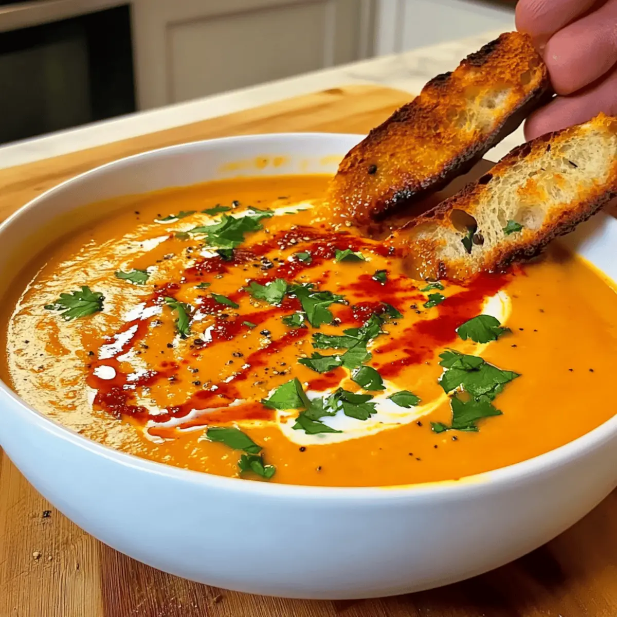 As I stood in my kitchen, the aroma of roasting butternut squash wrapped around me like a warm hug. This creamy roasted butternut squash soup is not just a recipe; it’s a cozy embrace in a bowl, perfectly suited for those crisp autumn evenings. The velvety texture, combined with the sweet notes of squash and the savory kick from garlic and onion, truly showcases the beauty of plant-based comfort food. Best of all? With just 10 minutes of prep time, you can whip up this nourishing delight that both vegans and non-vegans will adore. Imagine enjoying a bowl of this soothing soup alongside crusty bread or a grilled cheese sandwich—pure bliss! Are you ready to elevate your fall dining experience with this delectable recipe? Why is Butternut Squash Soup a Must-Try? Comforting: This soup embodies the warmth of fall with every spoonful, making it the ultimate cozy dish for chilly nights. Creamy Goodness: The silky texture, thanks to coconut milk and roasted veggies, feels indulgent while being entirely plant-based. Flavorful Flexibility: Feel free to substitute ingredients! Swap butternut squash for sweet potatoes or add a hint of ginger for an extra zing. Quick & Easy: With just 10 minutes of prep, you can have this nourishing dish on the table in no time, perfect for busy weeknights. Crowd-Pleasing: Whether hosting a dinner party or looking for a weeknight meal, this soup is sure to please everyone at the table. Enjoy it with a side of grilled cheese sandwiches or pair it with a comforting dish like Cabbage Soup for a lengthy meal! Roasted Butternut Squash Soup Ingredients For the Soup Butternut Squash – The star ingredient that lends creaminess and subtle sweetness; consider substituting with sweet potatoes for a different flavor profile. Coconut Milk – Adds a luxurious texture; can be swapped with oat milk or cashew cream for variations. Red Onions – Bring sweetness and depth to the soup; use 1-2 based on size, or shallots for a milder taste. Carrots – Enhance the overall sweetness; add 2 or more for a richer flavor. Bell Peppers – Contribute vibrant color and sweetness; feel free to omit or replace with another veggie if allergies arise. Garlic – Essential for a delightful aroma; can be reduced to taste or replaced with garlic powder for convenience. Tomatoes or Cherry Tomatoes – Introduces brightness; optional if you’d prefer to boost carrots instead. Vegetable Broth – Necessary for blending; substituting with homemade broth elevates the flavor. Fresh Ginger (optional) – Adds a warm, spicy note; ideal for those who enjoy a little extra zing in their soup. Olive Oil – Perfect for roasting veggies to perfection; feel free to replace with any neutral oil. For Seasoning Black Pepper – Essential for balancing flavors; adjust to your liking. Cumin – A warm spice that adds depth; a little goes a long way. Paprika – Introduces a slight smokiness; consider smoked paprika for added flavor. Thyme & Rosemary – These herbs give an aromatic touch; fresh or dried work well depending on availability. Chili Oil – Drizzle for a hint of heat, or omit if you prefer milder flavors. Dive into the comforting world of Roasted Butternut Squash Soup where every ingredient plays a part in creating a warm, nourishing dish that speaks of cozy autumn evenings. Step‑by‑Step Instructions for Roasted Butternut Squash Soup Step 1: Preheat Oven Begin by preheating your oven to 390°F (200°C). This temperature is essential for roasting the butternut squash and vegetables to achieve that caramelized, flavorful depth. Set your oven rack to the middle position for even heat distribution. While the oven warms, gather your ingredients and prepare to create this comforting roasted butternut squash soup. Step 2: Prepare Vegetables With a sharp knife and cutting board, carefully peel and chop the butternut squash into medium-sized cubes, along with the red onions and carrots. If desired, cut your butternut squash in half for quicker roasting. Aim for uniform pieces to ensure even cooking, allowing the natural sweetness to develop beautifully during roasting. Step 3: Season Vegetables In a large mixing bowl, toss the chopped vegetables with a generous drizzle of olive oil. Add in your chosen seasonings—black pepper, cumin, and paprika—stirring until every piece is well-coated. Spread the seasoned vegetables evenly on a roasting pan, ensuring they are not overcrowded to allow for proper caramelization when they roast. Step 4: Roast Vegetables Place the roasting pan in the preheated oven and let the vegetables roast for about 1.5 hours. Keep an eye on them and stir halfway through for even browning. Look for a golden color and softness—this is your cue that they’re ready. For the last 10 minutes, remove any foil, allowing for a deeper caramelization that will enhance the flavors in your roasted butternut squash soup. Step 5: Blend Ingredients Once your vegetables are beautifully roasted, carefully scoop them into a blender. Pour in enough vegetable broth to facilitate blending, and secure the lid tightly. Blend until your mixture is completely smooth and creamy; this will be the base of your luscious roasted butternut squash soup. Depending on your blender’s capacity, you may need to blend in batches. Step 6: Cook Soup Pour the blended mixture into a large pot over medium heat. Stir in a can of coconut milk, allowing it to warm through for approximately 2 minutes. This addition not only enriches the soup but also complements the sweet, roasted flavors. Stir gently to combine everything and watch for steam—this signals it’s warming evenly. Step 7: Serve After the soup is heated through, taste and adjust the seasoning as necessary, adding more spice or salt to suit your palate. Serve the comforting roasted butternut squash soup in bowls, garnishing with a drizzle of coconut milk or a sprinkle of chili oil for added warmth. Enjoy this delightful dish as a cozy solo meal or share it wi