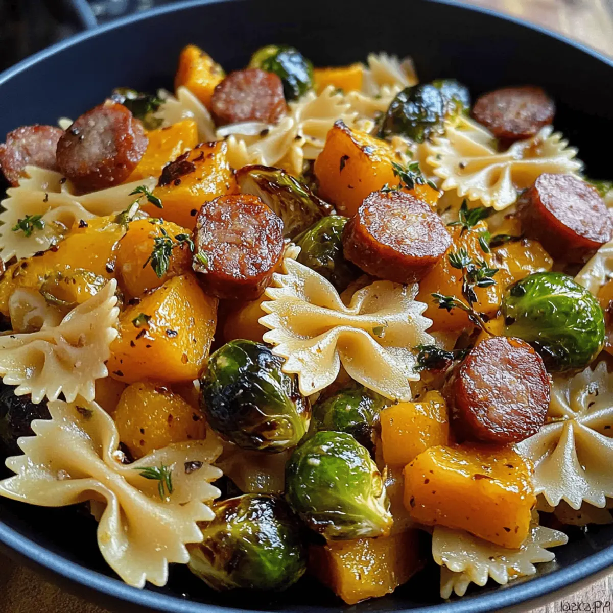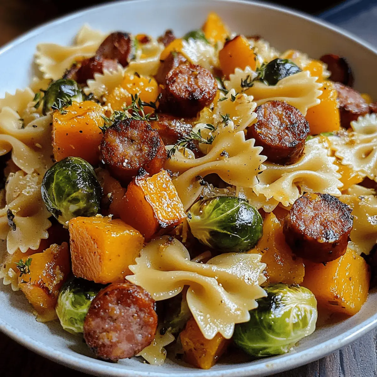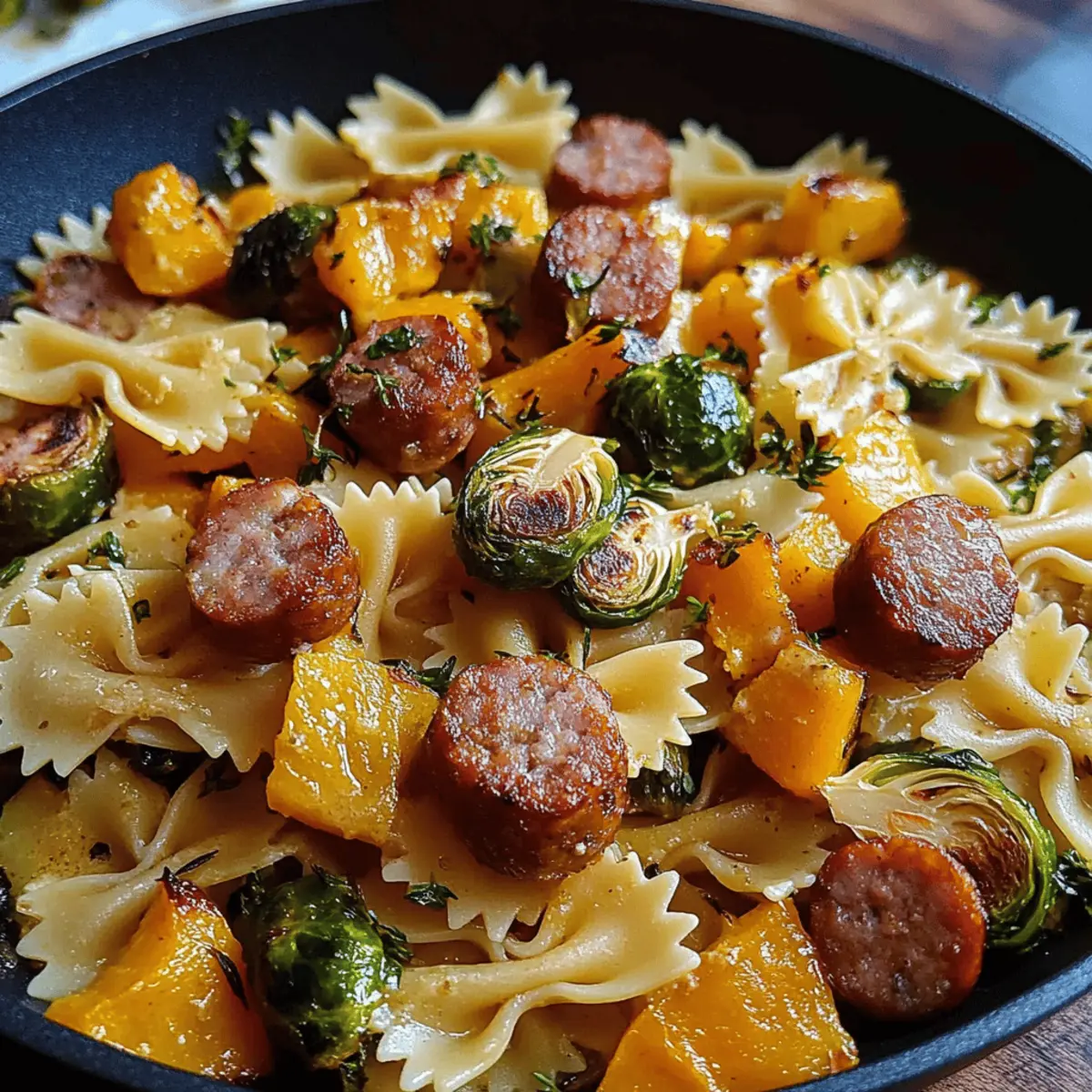 Sausage Pasta Squash is a warm and comforting fall dish combining sweet butternut squash, hearty sausage, and vibrant Brussels sprouts.