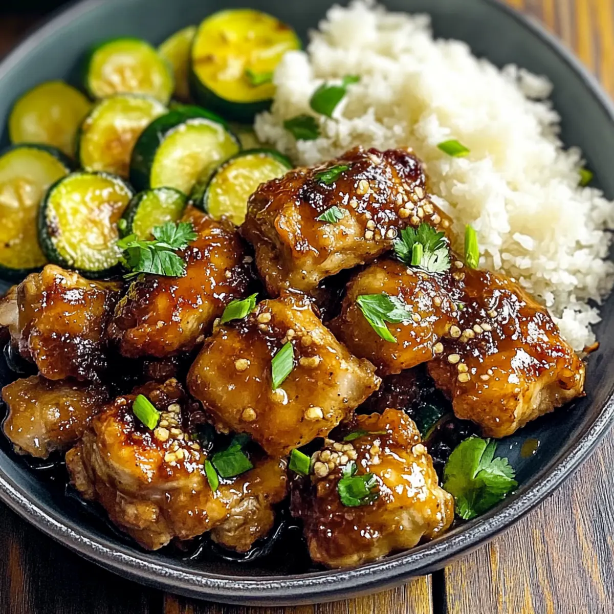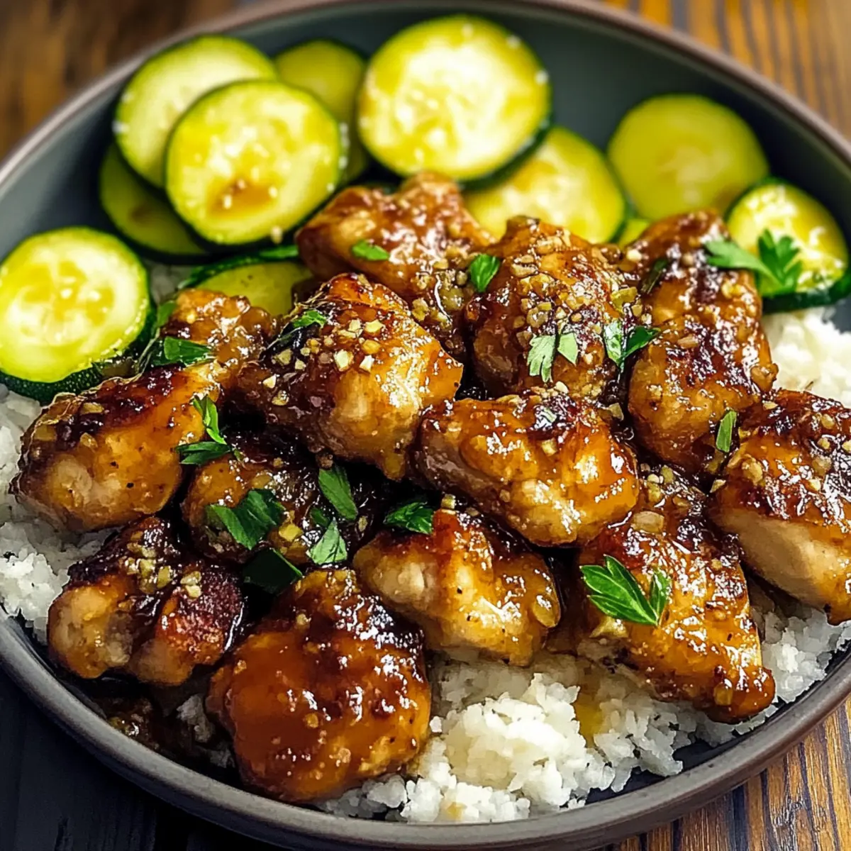 As I pulled the tender chicken thighs from the oven, the sweet and spicy aroma of hot honey garlic enveloped my kitchen, making it impossible to resist. This weeknight winner, the Sheet Pan Hot Honey Garlic Chicken and Zucchini, is the ultimate one-pan meal that not only simplifies dinner prep but also delivers a satisfying experience for busy home chefs. The combination of juicy chicken and perfectly roasted zucchini coated in a sticky glaze is both a time-saver and a flavor bomb. Whether you’re looking for a quick yet wholesome meal or just a delicious way to shake things up from the usual takeout, this dish will quickly become a favorite on your dinner table. Want to create a flavor-packed, fuss-free dinner tonight? Let’s dive into this delectable recipe! Why is this recipe a winner? Simplicity: This Sheet Pan Hot Honey Garlic Chicken and Zucchini comes together effortlessly, making it perfect for a busy weeknight. Flavor Explosion: The sweet and spicy hot honey garlic glaze adds a mouthwatering kick that elevates the dish beyond the ordinary. Versatile Veggies: Feel free to swap in yellow squash or other seasonal vegetables, allowing for creativity and variety in your meals. One-Pan Wonder: With everything roasted together, cleanup is a breeze—leaving you more time to enjoy your meal and less time scrubbing dishes! Crowd-Pleasing Delight: This recipe is sure to impress family and friends, making it an ideal option for gatherings or casual dinners. Pair it with Grilled Chicken Broccoli Bowls with Creamy Garlic Sauce for a fun dinner combo! Sheet Pan Hot Honey Garlic Chicken and Zucchini Ingredients For the Chicken Chicken Thighs – Perfectly tender and juicy; boneless, skinless thighs are recommended for easy eating. Hot Honey – Delivers a delightful blend of sweetness and spice; if unavailable, mix regular honey with crushed red pepper flakes for a quick substitute. Soy Sauce – Enhances the dish’s umami flavor; opt for low-sodium soy sauce if you’re watching salt intake. Garlic – Freshly minced garlic introduces a robust aroma; garlic powder can work in a pinch, but the fresh stuff shines here. For the Vegetables Zucchini – Adds a refreshing crunch and sweet flavor; you can also use yellow squash for a fun twist. Olive Oil – Helps vegetables roast beautifully; avocado oil is a great alternative for a different flavor profile. Salt & Pepper – Essential for seasoning; kosher salt boosts flavors wonderfully. Paprika – Infuses a warm, smoky richness; use sweet or smoked varieties based on your taste preference. Onion Powder – Enhances the flavor complexity; feel free to omit if it’s not your thing. For Garnish Fresh Parsley – Brightens the dish; substitute with cilantro if you prefer a different herb. Step‑by‑Step Instructions for Sheet Pan Hot Honey Garlic Chicken and Zucchini Step 1: Preheat the Oven Begin by preheating your oven to 425°F (220°C). This high temperature is key to achieving beautifully roasted chicken and zucchini. Make sure your oven is fully heated while you prepare the marinade and the chicken, ensuring everything comes together seamlessly for your Sheet Pan Hot Honey Garlic Chicken and Zucchini. Step 2: Prepare the Marinade In a mixing bowl, whisk together hot honey, soy sauce, minced garlic, salt, pepper, paprika, and onion powder until well combined. This mixture will serve as the delicious glaze for your chicken and veggies. The aroma of the garlic and honey will fill your kitchen, setting the stage for a delightful meal. Step 3: Marinate the Chicken Next, add the chicken thighs to the bowl with half of the marinade, ensuring that each piece is coated evenly. Let the chicken marinate for at least 10 minutes to absorb the flavors, but if you have more time, don’t hesitate to let it sit longer. This step is crucial for elevating the taste of your Sheet Pan Hot Honey Garlic Chicken and Zucchini. Step 4: Prepare the Zucchini While the chicken marinates, slice the zucchini into half-moon shapes. In a separate bowl, toss the zucchini slices with olive oil, salt, and pepper until they are well coated. This will enhance their natural flavor and ensure they roast beautifully alongside the chicken, creating a colorful and delicious meal. Step 5: Arrange on the Baking Sheet On a large baking sheet lined with parchment paper for easy cleanup, place the marinated chicken thighs in the center. Scatter the seasoned zucchini around the chicken, creating an inviting spread for your Sheet Pan Hot Honey Garlic Chicken and Zucchini. Make sure there’s space between the pieces to allow for proper roasting. Step 6: Add the Remaining Marinade Drizzle the remaining marinade over both the chicken and zucchini. This final touch will amplify the flavors and create a sticky glaze as everything cooks. Make sure to cover the chicken and zucchini generously without drowning them in sauce to achieve that perfect balance of flavors. Step 7: Bake to Perfection Place the baking sheet in your preheated oven and bake for 25 to 30 minutes. Keep an eye on the chicken; it’s done when it reaches an internal temperature of 165°F (74°C) and develops a slight char on the edges. The zucchini should be fork-tender but still retain some crunch, ensuring a delightful texture in your meal. Step 8: Garnish and Serve Once out of the oven, sprinkle freshly chopped parsley over the top for a pop of color and freshness. Your Sheet Pan Hot Honey Garlic Chicken and Zucchini is now ready to be served! Pair it with rice or quinoa, and enjoy this easy, flavorful dinner that’s sure to impress your family and friends. Make Ahead Options These Sheet Pan Hot Honey Garlic Chicken and Zucchini are a fantastic option for meal prep warriors! You can marinate the chicken thighs up to 24 hours in advance, allowing the flavors to truly penetrate for a more delicious result. Additionally, chop your zucchini and toss it in olive oil, salt, and pepper, keeping it in an airtight container in