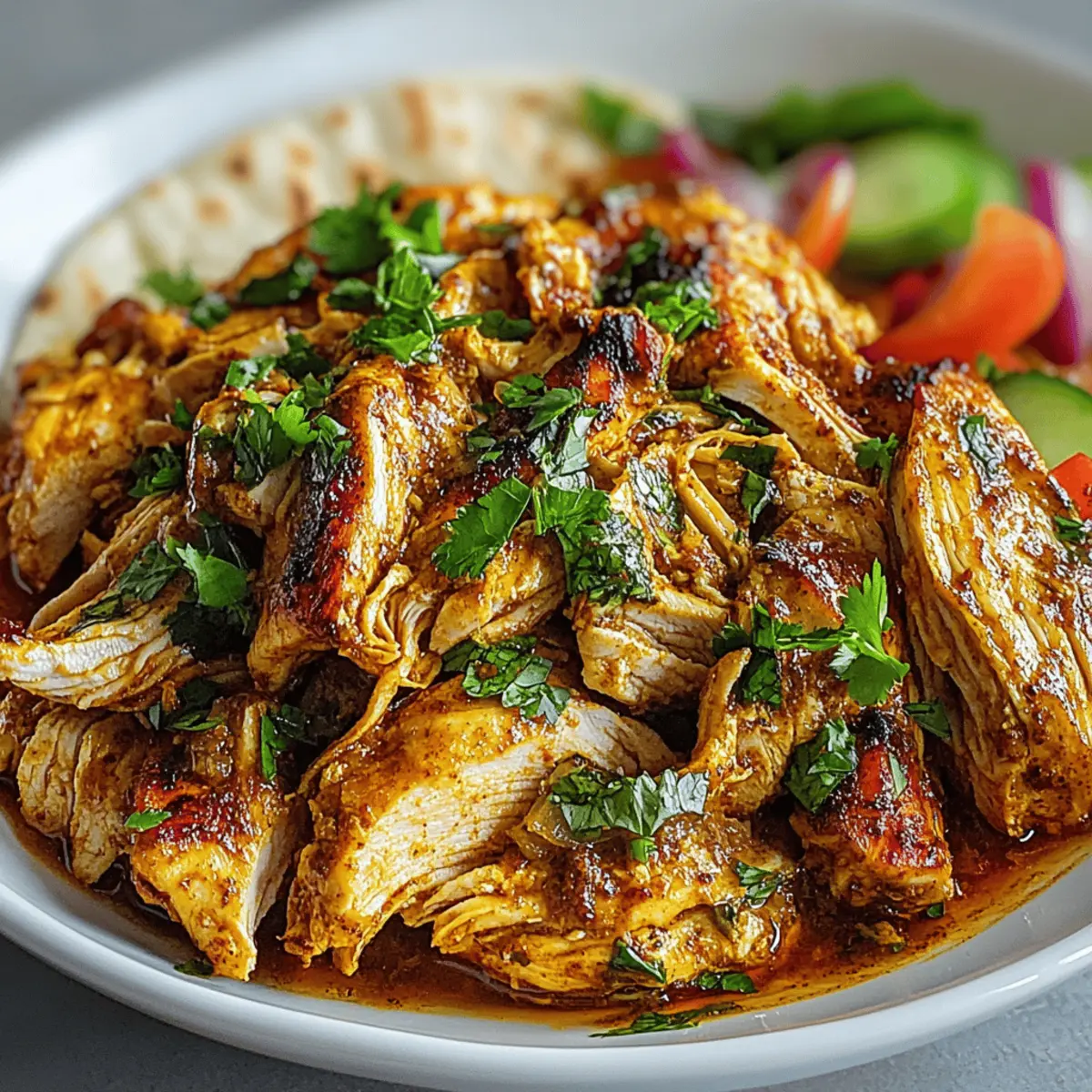 As the sun begins to set, the warm spices of Middle Eastern cuisine waft through my kitchen, almost transporting me to a bustling market in Beirut. This Slow Cooker Shawarma Chicken is my go-to recipe for those cozy evenings when I crave comfort food without the fuss. With just a handful of ingredients and minimal prep, you can enjoy tender, juicy chicken infused with aromatic spices that make weeknight dinners a delight. This dish not only promises a mouthwatering explosion of flavors but also saves you precious time in the kitchen—perfect for busy lives! Curious about how this simple slow-cooked wonder can elevate your next family meal? Let’s dive in! Why is Slow Cooker Shawarma Chicken a Must-Try? Easy Preparation: With just a few simple steps, you’ll have a savory dish cooking while you tackle your day, much like my Cream Cheese Chicken that saves time without sacrificing flavor. Flavor Explosion: Authentic Middle Eastern spices mingle perfectly, creating a dish that’s loaded with rich flavors, leaving everyone at your table craving more! Versatile Serving Options: Whether paired with fluffy rice, fresh pita, or a crisp salad, it adapts to your meal preference. Meal Prep Champion: Great for make-ahead meals, it remains delicious even as leftovers, much like my Garlic Parmesan Chicken. Crowd-Pleaser: Its tender, juicy texture is sure to impress family and friends, making it a go-to comfort food that suits any occasion. Enjoy effortless indulgence with this delightful dish! Slow Cooker Shawarma Chicken Ingredients For the Chicken • 2 pounds boneless, skinless chicken thighs – The main protein choice ensures a tender and juicy result; substitute with breasts at the risk of dryness. For the Marinade • 1/4 cup olive oil – Adds richness and helps to dissolve spices for flavor absorption; avocado oil can be used for an alternative taste. • 3 tablespoons shawarma spice blend – The essential component for authentic Middle Eastern flavors; store-bought blends make it easy! • 2 tablespoons lemon juice – Brightens the dish with acidity; you can swap in lime juice for a different twist. • 4 cloves garlic, minced – Infuses depth and aroma; in a pinch, use about 1 teaspoon of garlic powder. • 1 teaspoon salt – Key for seasoning; adjusts to enhance the chicken’s natural flavors, especially if using pre-mixed blends. • 1/2 teaspoon black pepper – Adds a mild heat and warmth; feel free to adjust according to your spice preference. Embrace the art of cooking with this Slow Cooker Shawarma Chicken recipe that promises effortless flavor and satisfaction! Step‑by‑Step Instructions for Slow Cooker Shawarma Chicken Step 1: Whisk the Marinade In a large bowl, combine 1/4 cup of olive oil, 3 tablespoons of shawarma spice blend, 2 tablespoons of lemon juice, 4 cloves of minced garlic, 1 teaspoon of salt, and 1/2 teaspoon of black pepper. Whisk well until the mixture is smooth and well-combined. This aromatic marinade will infuse the chicken with vibrant flavors, setting the stage for your delicious Slow Cooker Shawarma Chicken. Step 2: Marinate the Chicken Take 2 pounds of boneless, skinless chicken thighs, and coat them thoroughly with the marinade. Ensure every piece is well covered for maximum flavor. Let the chicken sit at room temperature for at least 15 minutes, or refrigerate it for up to 2 hours for deeper flavor penetration. This step is crucial for achieving juicy, flavorful results. Step 3: Prep the Slow Cooker Once the chicken has marinated, transfer it into your slow cooker. Pour any remaining marinade over the chicken, ensuring it’s well-covered to help keep it moist during cooking. Set the slow cooker to either low for 6-8 hours or high for 3-4 hours. This gentle cooking process will make your Slow Cooker Shawarma Chicken incredibly tender and succulent. Step 4: Check for Doneness After the cooking time has elapsed, carefully check the chicken for doneness. It should be tender enough to shred easily with forks. If it’s still firm, cover and cook for an additional 30 minutes on low. Once perfect, the chicken will exhibit a beautiful color and aroma that signals the authentic Middle Eastern flavors are ready to enjoy. Step 5: Shred and Serve Using two forks, gently shred the cooked chicken directly in the slow cooker or transfer it to a cutting board for easier handling. Mix the shredded chicken with the juices left in the pot to maintain moisture. Serve your tender Slow Cooker Shawarma Chicken with warm pita bread, fluffy rice, or a crisp salad to create a satisfying meal that is sure to impress. Expert Tips for Slow Cooker Shawarma Chicken Marinate Wisely: Allowing the chicken to marinate for up to 2 hours infuses flavors deeply, ensuring a tender and juicy bite. Watch the Clock: Avoid overcooking by keeping a close eye on the time. Cooking longer can lead to dry chicken, which is not the goal! Don’t Overload: Ensure your slow cooker isn’t packed too tightly. Proper airflow is key to even cooking and achieving that melt-in-your-mouth texture. Shred Gently: When pulling apart the chicken, use two forks to maintain tenderness. Mixing with remaining juices keeps it moist and tasty. Flavor Variations: Feel free to add extra veggies like bell peppers or onions to the slow cooker for a nutrient boost with your Slow Cooker Shawarma Chicken! Serve Smart: Accompany your dish with yogurt or tzatziki to balance the spices and add a refreshing touch to your meal. Make Ahead Options These Slow Cooker Shawarma Chicken are perfect for meal prep enthusiasts! You can marinate the chicken thighs up to 24 hours in advance, allowing the flavors to deepen and ensuring the meat remains juicy and tender. Simply combine the marinade ingredients, coat the chicken, and refrigerate it until you’re ready to cook. Additionally, you can chop any vegetables you plan to include, storing them separately in the fridge for up to 3 days. When it’s time to serve, just pop the ma