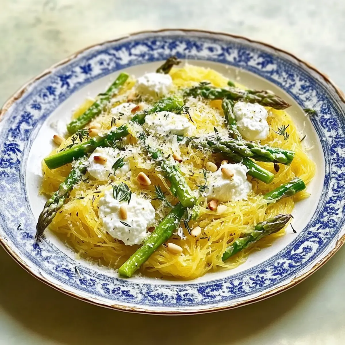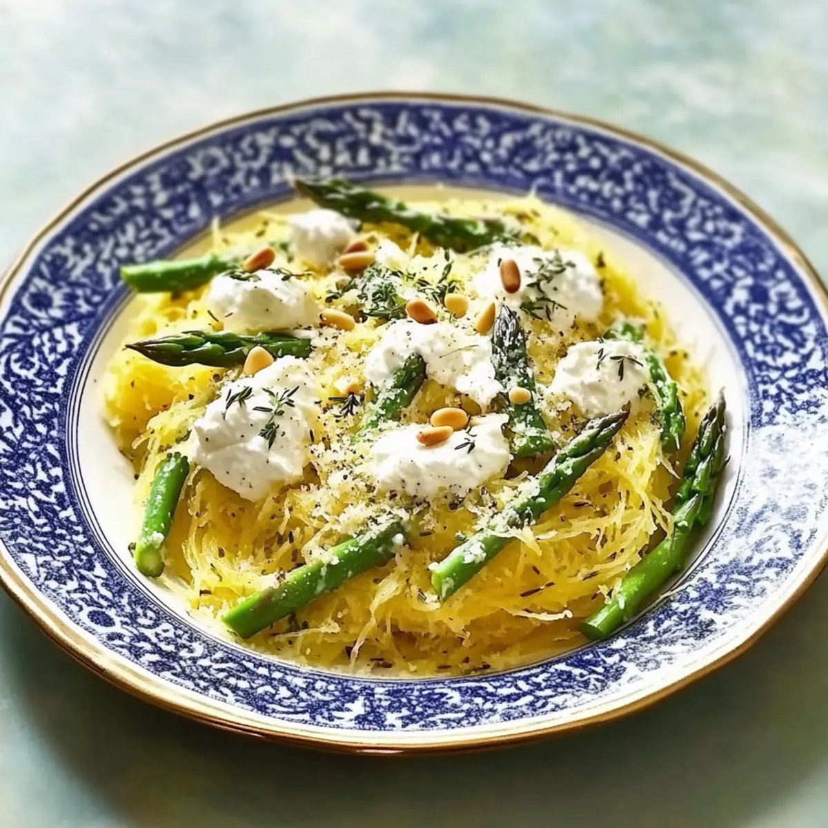 As I sliced into the vibrant spaghetti squash, the aroma of roasted garlic filled my kitchen, beckoning me to dig in. Inspired by the garden’s bounty, my Lemon Thyme Spaghetti Squash with Asparagus, Ricotta, and Lemon brings together fresh and comforting flavors, perfect for satisfying midweek cravings. With just 45 minutes of hands-on time, this vegetarian dish doubles as an eye-catching centerpiece for dinner parties or a quick, healthy meal if you’re tired of fast food. It’s loaded with nutrients, low-carb, and bursting with deliciousness, making you forget all about traditional pasta. Curious how this simple recipe can transform your weeknight dinners? Let’s dive in! Why is this spaghetti squash recipe special? Aromatic Comfort: The sweet notes of roasted garlic enhance every bite, providing an irresistible aroma and flavor to this comforting dish. Fresh Ingredients: Packed with colorful veggies like asparagus and fragrant herbs, it’s a feast for both the eyes and the palate. Quick Cooking: Ready in just 45 minutes, this recipe is a lifesaver for busy weeknights when you crave something wholesome yet quick. Crowd-Pleasing: Perfect for dinner parties or family nights, it’s sure to impress both vegetarians and meat-lovers alike. Consider serving it alongside a refreshing Lemon Quinoa Chickpea salad for a delightful spread. Healthy and Nourishing: Low-carb and packed with nutrients, this dish offers a guilt-free indulgence that will make you forget fast food! Spaghetti Squash with Asparagus Ingredients For the Squash • Spaghetti Squash – This low-carb pasta alternative creates tender strands that mimic traditional spaghetti. • Olive Oil – Adds richness and helps roast the veggies; avocado oil can be used for a different flavor. For the Vegetable Mix • Garlic – Infuses the dish with aromatic goodness; fresh is always best! • Asparagus – Provides texture and nutrition; choose bright green stalks for optimal taste. For the Ricotta Mixture • Ricotta Cheese – Creamy and rich, it enhances the dish’s texture; opt for dairy-free ricotta if needed. • Lemon Juice – Fresh-squeezed is preferred, lending a refreshing brightness to the dish. • Lemon Zest – Intensifies citrus flavor for an aromatic touch. • Fresh Thyme Leaves – Adds earthy fragrance and elevates the overall flavor profile. • Kosher Salt – Always helps to enhance the natural flavors. • Freshly Ground Black Pepper – Adds depth and warmth to the dish. For the Topping • Pine Nuts – Toasted for crunch and a lovely nutty flavor, they complement the dish beautifully. This Spaghetti Squash with Asparagus, Ricotta, and Lemon recipe promises to be a delicious, nutritious addition to your weekly menu! Step‑by‑Step Instructions for Spaghetti Squash with Asparagus, Ricotta, and Lemon Step 1: Preheat the Oven Begin by preheating your oven to 375°F (190°C) and position the rack in the middle. This step ensures that your Spaghetti Squash with Asparagus, Ricotta, and Lemon bakes evenly, achieving that delightful roasted flavor without burning. As the oven warms up, you’ll have plenty of time to prepare the squash and other ingredients. Step 2: Prepare the Squash Carefully slice the spaghetti squash in half lengthwise and scoop out the seeds using a spoon. Brush the cut sides with olive oil, ensuring an even coating for a rich flavor. Place the squash cut-side down on a baking sheet lined with parchment paper or foil. Roast in the oven for 35 minutes until tender, and the skin feels soft to the touch. Step 3: Prep the Asparagus While the squash is roasting, take your fresh asparagus and trim off the woody ends. Cut the tender stalks into 2-inch pieces for even cooking. Toss the asparagus with the remaining olive oil in a bowl, ensuring each piece is coated. As the squash is almost done, prepare to add the asparagus to the baking sheet. Step 4: Roast Together After 35 minutes, carefully take out the baking sheet and tuck minced garlic under the squash halves. Add the asparagus pieces to the baking sheet, distributing them evenly. Return everything to the oven for an additional 10 minutes, until the asparagus is tender and slightly charred, and the squash is easy to pierce with a fork. Step 5: Make the Ricotta Mixture In a mixing bowl, combine the ricotta cheese, fresh lemon juice, lemon zest, chopped thyme leaves, kosher salt, and freshly ground black pepper. Blend until smooth and creamy. This ricotta mixture will offer a rich, tangy flavor that perfectly complements the roasted squash and asparagus, enhancing your Spaghetti Squash with Asparagus, Ricotta, and Lemon. Step 6: Combine Ingredients Remove the roasted garlic from beneath the squash and add it to the ricotta mixture, mashing it gently to incorporate. Once mixed, fold in the asparagus along with the spaghetti squash strands, scraping them out using a fork. Be careful to keep that delightful, stringy texture of the squash while blending all the ingredients together. Step 7: Serve Transfer the combined Spaghetti Squash with Asparagus, Ricotta, and Lemon to plates or a beautifully arranged serving platter. To finish, sprinkle toasted pine nuts over the top for a crunchy texture, and if you like, a drizzle of additional lemon juice for extra brightness. Enjoy this beautiful dish with family and friends! How to Store and Freeze Spaghetti Squash with Asparagus Fridge: Store leftovers in an airtight container for up to 3 days. Keep the spaghetti squash, asparagus, and ricotta mixture separate to maintain freshness. Freezer: Freeze the dish in a freezer-safe container for up to 3 months. Allow it to cool completely before sealing to prevent freezer burn. Thaw overnight in the fridge before reheating. Reheating: To reheat, microwave individual portions or heat in a skillet over medium heat until warmed through. You can add a splash of lemon juice to revive the flavors. Make-Ahead: Roast the spaghetti squash and asparagus in advance, and