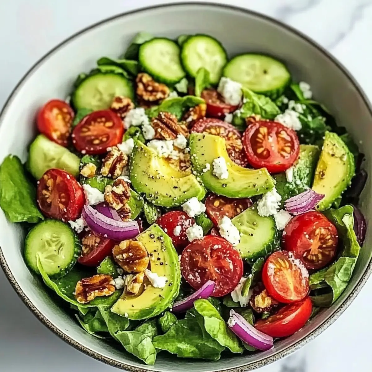 As I strolled through my garden, the vibrant colors of spring came alive, inspiring me to create something just as beautiful in the kitchen. Enter the Vibrant Spring Salad with Avocado, a dish that captures the essence of the season with its fresh ingredients and sunny flavors. This salad isn’t just a feast for the eyes; it’s also incredibly simple to prepare, making it perfect for quick lunches or as a lively side at dinner. With its delightful balance of creamy avocado, crunchy cucumbers, and tangy feta, you’ll find it becoming a staple in your healthy eating repertoire. Who knew embracing a wholesome lifestyle could be so delicious? Are you ready to elevate your meal with this fresh twist? Why is this salad a must-try? Freshness is the cornerstone of this vibrant Spring Salad with Avocado, capturing the essence of the season with every bite. Quick to prepare, it’s perfect for those busy weekdays when you want something healthy without the hassle. Versatile in nature, you can easily customize it with different greens or add-ins like quinoa for a protein boost. Crowd-pleaser potential is high, whether you’re serving it at a gathering or just for lunch. Nutrient-rich, this salad is packed with vitamins while being low in calories, and pairs beautifully with options like our Creamy Turkey Pasta with Peas or Spring Confetti Salad. Elevate your meals effortlessly! Spring Salad with Avocado Ingredients • Freshness at your fingertips! For the Salad Base Mixed greens – A crunchy foundation for freshness, substitute with kale or baby spinach for a different twist. Avocado – Adds creamy texture and healthy fats; ensure it’s ripe for the best flavor. Cherry tomatoes – A pop of sweetness; opt for glossy, firm ones for maximum juiciness. Cucumber – Provides a refreshing crunch; slice it on a diagonal for an enticing look. Red onion – Offers a sharp bite; soak slices in water to tone down the intensity if desired. For the Topping Feta cheese – Brings a salty tanginess; crumble right before serving for best texture. For the Dressing Olive oil – The heart of your dressing; choose extra-virgin for superior flavor. Lemon juice – Brightens the salad beautifully; always use freshly squeezed for optimal taste. Salt and Pepper – Essential for balancing flavors, adjust to your preference. The Spring Salad with Avocado is not just delicious; it’s also a celebration of what spring has to offer! Step‑by‑Step Instructions for Spring Salad with Avocado Step 1: Prepare the Salad Base In a large mixing bowl, combine a generous amount of mixed greens, diced ripe avocado, halved cherry tomatoes, and thinly sliced cucumber. Take a moment to admire the vibrant colors as you add in the chopped red onion, which adds a sharp bite. Toss everything together gently to distribute the ingredients evenly, taking care not to mash the avocado. Step 2: Add the Feta Sprinkle crumbled feta cheese generously over the top of your mixed salad. This salty and tangy addition enhances the overall flavor profile of your Spring Salad with Avocado. Use your hands or a fork to break up any large clumps and ensure the feta is evenly distributed across the vegetables, adding an appealing creaminess and texture. Step 3: Whisk the Dressing To create the dressing, grab a small bowl and whisk together high-quality extra virgin olive oil with freshly squeezed lemon juice, adding salt and pepper to taste. Aim for a light and tangy flavor that will brighten your salad. Allow the dressing to meld for about a minute before moving to the next step, creating a harmonious blend of flavors. Step 4: Dress the Salad Drizzle the freshly prepared dressing over your vibrant salad mixture, making sure to cover the greens and vegetables evenly. Gently toss the salad in a folding motion, ensuring all ingredients are coated without bruising the tender salad greens or smashing your creamy avocado chunks. Step 5: Serve Immediately Once tossed, your Spring Salad with Avocado is ready to be enjoyed! Transfer it to a serving bowl or plate, and savor the freshness of each ingredient. Aim to serve immediately to keep the textures vibrant and crisp, perfect for a refreshing meal or a colorful side dish at your next gathering. How to Store and Freeze Spring Salad with Avocado Fridge: Store any leftover salad in an airtight container in the refrigerator for up to 2 days. To maintain freshness, keep the dressing separate until ready to serve. Avocado Storage: If you have leftover diced avocado, sprinkle it with lemon juice to prevent browning, and store it in an airtight container for up to 1 day. Prepped Ingredients: If you want to prepare ingredients in advance, wash and store the mixed greens separately, and chop the vegetables, keeping them in the fridge for up to 3 days prior to assembling your Spring Salad with Avocado. Reheating: This salad is best served cold, so no reheating is necessary. Enjoy the fresh, vibrant flavors straight from the fridge! Expert Tips for Spring Salad with Avocado Use Ripe Avocado: Choose avocados that yield slightly to pressure for a creamy texture. Avoid browning by chopping them last. Don’t Over-toss: Gently mix your salad to avoid bruising the avocado and greens. You want to maintain their vibrant textures! Choose Fresh Ingredients: Opt for seasonal vegetables for the best flavor and nutrition. Freshness is key in this Spring Salad with Avocado! Dress Just Before Serving: Add dressing only when you’re ready to serve. This keeps the greens crisp and prevents wilting. Experiment with Add-ins: Don’t hesitate to try fresh herbs or protein additions like chickpeas for variety and added nutrition. Spring Salad with Avocado Variations Feel free to customize your vibrant Spring Salad with Avocado to suit your taste buds and dietary preferences! Dairy-Free: Swap feta for crumbled tofu or toasted chickpeas for a delightful change. The creaminess of the avocado pairs beautifully with the tofu’s texture! He