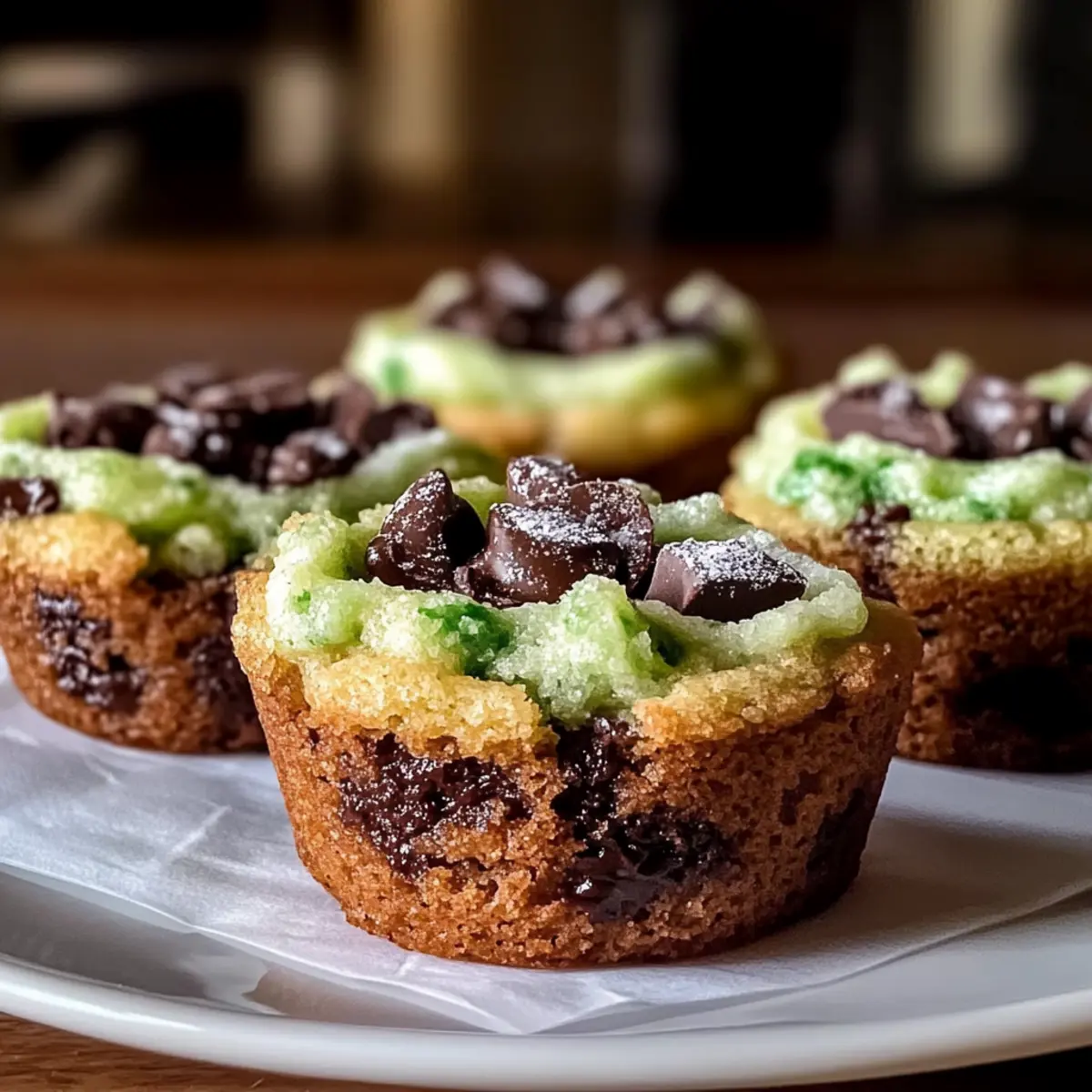 The air was filled with a delightful minty aroma as I took my first bite of these Crispy St. Patrick’s Mint Chocolate Chip Cookie Cups. Their crispy edges hide a soft, gooey center packed with chocolate chips, making them an irresistible treat for any festive gathering. Easy to whip up and featuring a gluten-free option, they are sure to be a hit with both kids and adults alike. Whether you’re celebrating the luck of the Irish or simply craving a comforting dessert, these cookie cups bring a joyful twist to your baking repertoire. Curious about how to make these perfect little bites of happiness? Let’s dive into the recipe! Why are these cookie cups irresistible? Festive Delight: Perfectly designed for St. Patrick’s Day, these cookie cups are a fun and cheerful addition to any celebration. Easy to Make: With simple ingredients and straightforward steps, you can whip up a batch in no time! Versatile Variations: Transform them based on your preference! Try swapping mint chocolate chips for regular chocolate or adding colorful sprinkles for an extra festive flair. Texture Triumph: Enjoy the perfect balance of crispy edges and gooey centers that melt in your mouth, creating a delightful contrast. Kid-Friendly Fun: These treats will be a huge hit with children, making them a great choice for school parties or family gatherings. Healthy Twist: With gluten-free and dairy-free options available, these cookie cups can cater to different dietary needs without sacrificing flavor. For more delicious treats to enjoy, check out these Caramel Chocolate Chip bars or Chewy Gluten Cookies. St. Patrick’s Mint Chocolate Chip Cookie Cups Ingredients • Whip out your measuring cups and let’s get started on these festive delights! For the Cookie Cups All-purpose flour – Provides structure; substitute with a 1:1 gluten-free flour blend for a gluten-free version. Brown sugar – Adds sweetness and moisture; using a blend of brown and white sugar enhances flavor and texture. White sugar – Contributes to sweetness. Unsalted butter – Adds richness and flavor; use vegan butter for a dairy-free option. Egg – Binds ingredients together and adds moisture. Mint extract – Provides a refreshing mint flavor; natural mint extract is preferred for a clean taste. Baking soda – Helps the cookies rise. Salt – Balances sweetness. Mint chocolate chips – Adds chocolatey flavor with a mint twist; opt for regular chocolate chips or Andes mint pieces for variety. Enjoy crafting these delightful St. Patrick’s Mint Chocolate Chip Cookie Cups that will surely elevate your festive treat game! Step‑by‑Step Instructions for Crispy St. Patrick’s Mint Chocolate Chip Cookie Cups Step 1: Prepare the Dough In a mixing bowl, cream together ½ cup of softened unsalted butter, ½ cup of brown sugar, and ¼ cup of white sugar until the mixture is fluffy and light, about 3-4 minutes. Beat in one large egg and 1 teaspoon of mint extract until fully incorporated. This creamy base will set the tone for your Crispy St. Patrick’s Mint Chocolate Chip Cookie Cups. Step 2: Combine Dry Ingredients In a separate bowl, whisk together 1 ½ cups of all-purpose flour, ½ teaspoon of baking soda, and a pinch of salt. Gradually add the dry mixture to the wet ingredients, mixing gently until just combined. Be careful not to overmix; a tender dough is key to achieving the perfect texture for your cookie cups. Step 3: Chill the Dough If your dough feels sticky, wrap it in plastic wrap and chill it in the refrigerator for about 10-15 minutes. Chilling will help firm up the dough, making it easier to scoop and shape into the cookie cups. This step ensures that your St. Patrick’s Mint Chocolate Chip Cookie Cups have a delightful texture and hold their shape while baking. Step 4: Preheat Oven As the dough chills, preheat your oven to 350°F (175°C). While the oven heats up, generously grease a mini muffin tin with non-stick spray or butter, ensuring that each cup is well coated. This is crucial to prevent your cookie cups from sticking, allowing for easy removal once they’re baked. Step 5: Fill Muffin Tin Once the dough is chilled, use a small cookie scoop or spoon to fill each muffin tin cup halfway with the dough, approximately 1 tablespoon each. Leave some space for the dough to expand as it bakes. This will create the signature cup shape that’s perfect for holding chocolate chips! Step 6: Bake Place the filled muffin tin in the preheated oven and bake for 12-15 minutes. You’ll know they’re done when the edges appear golden brown and the centers look set but slightly soft. The aroma of mint and chocolate will fill your kitchen, adding to the festive atmosphere! Step 7: Cool After baking, allow the cookie cups to cool in the tin for at least 10 minutes. This rest time enables them to firm up slightly, making them easier to remove. Gently use a spoon to lift them out, and transfer them to a wire rack to cool completely. Enjoy the delightful creation of your St. Patrick’s Mint Chocolate Chip Cookie Cups! St. Patrick’s Mint Chocolate Chip Cookie Cups Variations Feel free to sprinkle some creativity into your baking adventure with these delightful twists! Gluten-Free: Substitute all-purpose flour with a 1:1 gluten-free flour blend for a delightful gluten-free treat. They’ll still be packed with the same delicious flavor! Dairy-Free: Use vegan butter instead of regular unsalted butter. It ensures that everyone can enjoy the festive taste, without any dairy. Candy Crush: Swap mint chocolate chips for crushed Andes mints or even chocolate-covered peppermint candies for a fun texture twist. It adds a delightful crunch! Flavor Boost: Add a splash of your favorite liqueur, like crème de menthe, to enhance the minty flavor further. This grown-up twist would make these cookie cups a festive treat for adults! Extra Minty: Fold in some finely chopped fresh mint leaves to the batter. This will elevate the freshness of the mint f