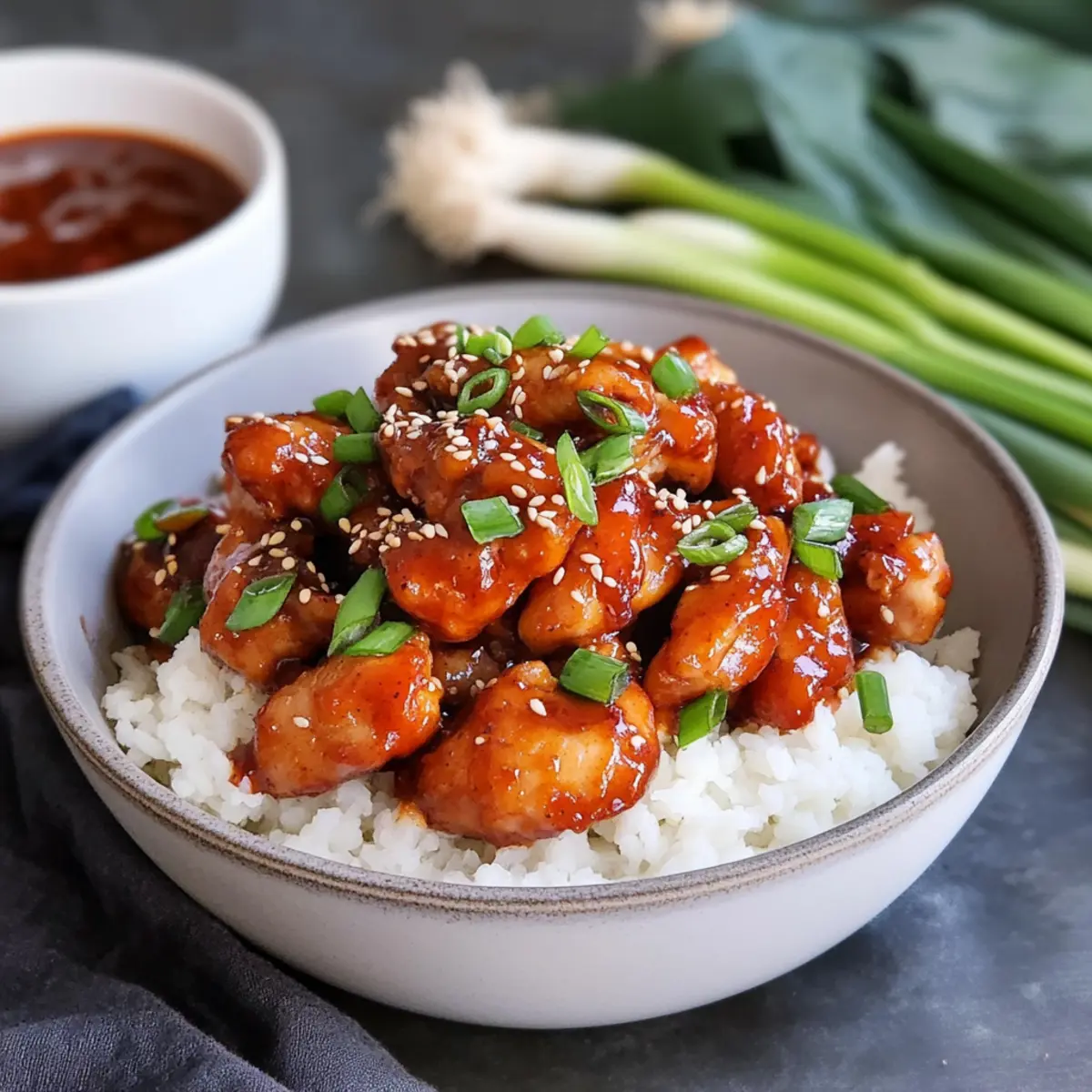 Scanning the kitchen, I spotted a bottle of sweet chili sauce that had been quietly waiting for its moment. That’s when it hit me—why not whip up a batch of Sticky Sweet Chilli Chicken? This dish is more than just a quick dinner; it’s a flavor-packed adventure that can be ready in under 30 minutes. Imagine tender chicken pieces coated in a glossy, mildly spiced glaze that brings everyone to the table. Plus, it’s versatile enough to accommodate various dietary needs, making it perfect for anyone looking for an easy meal. Whether you’re a busy professional or a home chef craving a break from routine, this recipe promises satisfaction and smiles. Curious about how to make this irresistible dinner? Let’s dive in! Why try Sticky Sweet Chilli Chicken? Quick and Easy: Perfect for those busy weeknights, this dish can be ready in just 30 minutes, making it ideal for last-minute meals. Flavor Explosion: The sticky glaze combines sweetness and subtle heat, creating an irresistible taste that everyone will love. Versatile Adaptations: Whether you’re vegan or gluten-free, this recipe easily adapts to suit your dietary preferences without compromising flavor. Consider trying it alongside Grilled Chicken Broccoli for an additional health boost! Crowd-Pleaser: Serve it to family or guests, and prepare to impress with a dish that feels like a treat yet is oh so simple. Minimal Cleanup: With just one pan needed for cooking, you’ll spend less time cleaning and more time enjoying your meals. Sticky Sweet Chilli Chicken Ingredients Get ready to tickle your taste buds with these flavorful components! For the Chicken Chicken Breasts – Use fresh chicken breasts or thighs for juicy and tender bites. Sweet Chilli Sauce – This adds the signature sweetness and mild heat; adjust to taste for a customized kick. For the Marinade Tomato Ketchup – Offers a tangy sweetness; feel free to swap in homemade ketchup or BBQ sauce for a twist. Garlic – Enhances the flavor profile wonderfully; jarred minced garlic saves time on busy nights. Ginger – Adds that warm, aromatic touch; fresh is best, but jarred ginger works too for convenience. Light Soy Sauce – Delivers umami and saltiness; choose gluten-free if necessary for dietary restrictions. For Cooking Sunflower Oil – Ideal for frying; you can easily substitute with vegetable or canola oil if you prefer. Whip up this Sticky Sweet Chilli Chicken and savor the delightful flavors that can elevate your weeknight dinners! Step‑by‑Step Instructions for Sticky Sweet Chilli Chicken Step 1: Marinate the Chicken Begin by dicing the chicken breasts into bite-sized pieces for even cooking. In a mixing bowl, combine the chicken with tomato ketchup, minced garlic, grated ginger, light soy sauce, and sweet chilli sauce. Ensure every piece is well coated in this flavorful mixture, then cover the bowl and let it marinate in the fridge for 15-30 minutes to enhance the taste. Step 2: Heat the Oil In a large frying pan, heat 2 tablespoons of sunflower oil over medium heat until shimmering, about 2 minutes. Once the oil is ready, carefully add the marinated chicken pieces to the pan, spreading them out in a single layer to ensure even cooking. Sear the chicken for approximately 5 minutes on one side, or until it becomes golden brown. Step 3: Flip the Chicken After the initial cooking, gently flip the chicken pieces to cook the other side, allowing them to brown for another 5 minutes. During this step, stir occasionally to coat the chicken in the marinade and prevent sticking. You’ll know they’re done when the chicken turns golden brown and is cooked through, reaching an internal temperature of 165°F (75°C). Step 4: Thicken the Glaze Once the chicken is fully cooked, increase the heat to high and let everything bubble for about 1 minute. This step allows the sticky sweet chilli chicken’s glaze to thicken and cling beautifully to the chicken pieces. Keep stirring to avoid burning the marinade while it reduces to a luscious consistency. Step 5: Serve the Dish Remove the frying pan from heat and prepare to serve your sticky sweet chilli chicken. Place fluffy sticky rice on plates, then generously spoon the chicken and its sticky sauce over the top. For an extra touch of flavor, garnish with sesame seeds and sliced spring onions, adding a lovely crunch and aroma to this delightful weeknight meal. Expert Tips for Sticky Sweet Chilli Chicken Perfect Marinade Time: Aim for at least 15 minutes to allow the flavors to penetrate the chicken. If you’re short on time, even 10 minutes can help! Don’t Overcrowd the Pan: Cooking the chicken in a single layer ensures even browning and prevents steaming, giving you that delicious golden crust. Monitor the Heat: If the glaze starts to bubble too much or spit, reduce the heat to prevent burning and ensure a beautifully thick sauce. Spice Adjustment: If you crave more heat, consider adding a finely chopped red chili or increase the sweet chilli sauce amount gradually; taste as you go! Tasty Add-ins: Add in some chopped bell peppers or snap peas during cooking for added nutrition and crunch, without changing the essence of the sticky sweet chilli chicken. Sticky Sweet Chilli Chicken Variations Feel free to experiment and make this Sticky Sweet Chilli Chicken uniquely yours with these fun twists! Vegetarian Option: Substitute chicken with tempeh or chickpeas for a delicious plant-based version. The flavors will still shine through beautifully. Gluten-Free: Use gluten-free soy sauce and ensure your sweet chilli sauce is gluten-free too for a worry-free dinner option. Everyone can enjoy it together! Spicy Kick: Add a dash of sriracha or crushed red pepper flakes to ramp up the heat level. Spice lovers will adore this fiery twist! Extra Crunch: Toss in bell peppers, snap peas, or broccoli florets during the last few minutes of cooking for a nutritious crunch and vibrant color. Different Rice: Swap jasmine rice for brown rice, 