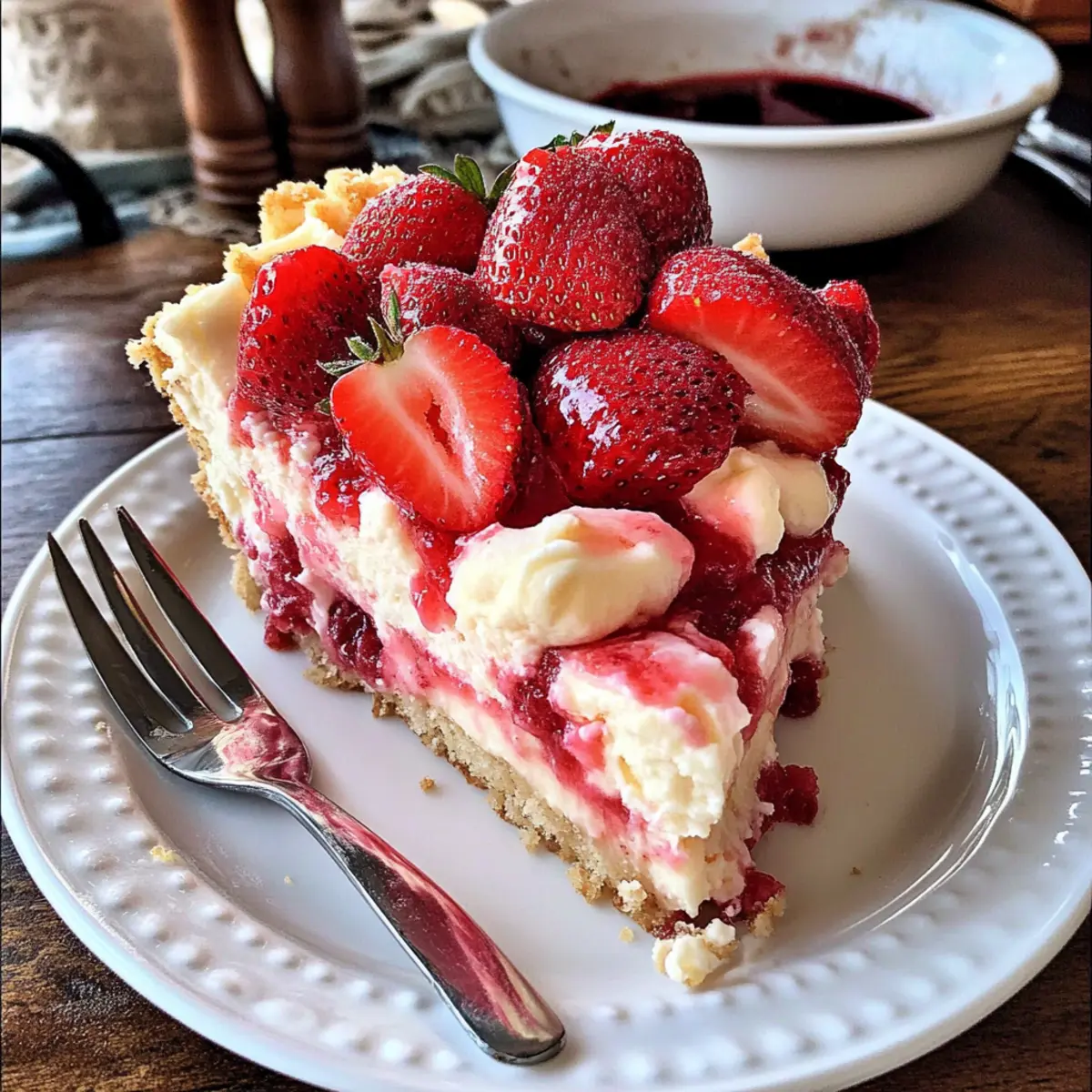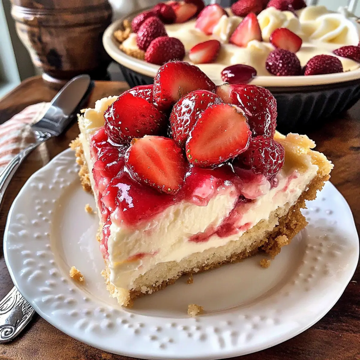 There I was, flipping through my recipe binder, searching for a dessert that could do the impossible: please everyone at our next family gathering. That’s when I stumbled upon the Strawberry Cheesecake Dump Cake Recipe. Combining the sweet brightness of strawberries with the lusciously creamy texture of cheesecake, this simple dessert checks all the boxes. Not only is it a crowd-pleaser, but it also requires minimal effort—just the way I like it! With a few simple ingredients and endless variations, you can easily swap in your favorite fruits for a personal twist. Whether it’s a potluck, a cozy night in, or a last-minute treat, this delightful dump cake is sure to satisfy your cravings. Are you ready to see how easy it is to create this sweet masterpiece? Why Is This Dump Cake So Great? Simplicity: This Strawberry Cheesecake Dump Cake Recipe requires just a handful of ingredients, making it incredibly easy to whip up even for novice bakers. Customizable: You can easily tailor the flavor by swapping strawberries for blueberries, peaches, or even cherries, ensuring everyone finds a version they’ll love. Quick and Convenient: From prep to bake, this dessert takes only about 40 minutes, allowing you to spend more time with your loved ones instead of in the kitchen. Crowd-Pleasing: Perfect for potlucks or family gatherings, it’s a guaranteed hit that can satisfy both cheesecake and cake lovers alike. Versatile Serving Options: Whether served warm with whipped cream or chilled with ice cream, this dessert is a go-to solution for any occasion! Don’t forget to explore other delightful options like Peach Cobbler Cheesecake for more tasty ideas. Strawberry Cheesecake Dump Cake Ingredients For the Cake Base Cake Mix – The base structure; feel free to use a gluten-free mix for dietary adjustments. Butter – Adds richness and moisture; remember to melt it for the best texture. For the Cream Cheese Layer Cream Cheese – Essential for that creamy cheesecake taste; make sure it’s softened for easy blending. Sugar (optional) – Sweetens the cream cheese layer; adjust this based on the sweetness of your strawberries. For the Fruit Topping Strawberries – Provide natural sweetness and vibrant flavor; both fresh and frozen work wonders here. This easy Strawberry Cheesecake Dump Cake Recipe is designed to combine all these delicious ingredients effortlessly into a charming dessert that can win over any crowd! Step‑by‑Step Instructions for Strawberry Cheesecake Dump Cake Recipe Step 1: Prepare the Strawberries Begin by washing and slicing about two cups of fresh strawberries. If you desire an extra touch of sweetness, sprinkle a tablespoon of sugar over them and let them sit for about 10 minutes. This will enhance their natural flavors and create a delightful syrup that complements the Strawberry Cheesecake Dump Cake. Step 2: Mix the Cream Cheese In a medium bowl, take 8 ounces of softened cream cheese and blend it until smooth using a hand mixer or a spatula. If you wish to add sweetness, mix in 1 to 2 tablespoons of sugar at this stage. This creamy mixture will create the luscious cheesecake layer of your dump cake, so ensure there are no lumps. Step 3: Assemble the Cake Preheat your oven to 350°F (175°C). In a greased 9×13 inch baking dish, spread the cream cheese mixture evenly across the bottom, forming a smooth layer. Next, pour the dry cake mix over the cream cheese, followed by a drizzle of melted butter (1/2 cup) across the top. Finally, carefully spoon your prepared strawberries over everything, making sure to distribute them evenly. Step 4: Bake to Perfection Transfer the assembled Strawberry Cheesecake Dump Cake to the preheated oven. Bake for 30-40 minutes or until the top is golden brown and a toothpick inserted in the center comes out clean. The aroma will fill your kitchen, signaling that this delicious dessert is nearly ready to serve. Step 5: Cool Before Serving Once baked, remove the dump cake from the oven and let it cool for about 10-15 minutes. This cooling period allows the layers to set while keeping the inside soft and creamy. Serve warm directly from the dish for a cozy dessert experience, or refrigerate it if you prefer it chilled! What to Serve with Strawberry Cheesecake Dump Cake Set the scene for a delightful meal that perfectly complements the sweet, creamy goodness of your dessert. Fresh Fruit Salad: A vibrant mix of seasonal fruits adds a refreshing contrast, balancing the sweetness of the cake perfectly. Vanilla Ice Cream: Smooth and creamy, a scoop of vanilla ice cream pairs beautifully with the warm dump cake, enhancing each bite. Chocolate Drizzle: A rich chocolate sauce adds indulgence. Drizzle it warm over each serving for an elevated dessert experience. Whipped Cream: Light and fluffy whipped cream makes for a classic topping, amplifying the cake’s creamy texture while adding a heavenly touch. Coffee or Tea: A hot cup of coffee or herbal tea complements the flavors well. The warmth brings out the dessert’s sweetness while providing a cozy finish. Mini Cheesecake Bites: Serve mini cheesecakes as an inspired side that echoes the cake’s flavors while providing a delightful variety. Lemon Sorbet: For a refreshing twist, lemon sorbet offers a zesty burst that contrasts the richness of the dump cake without overwhelming it. Each of these delightful pairings enhances your Strawberry Cheesecake Dump Cake Recipe, ensuring a memorable dessert experience for all! How to Store and Freeze Strawberry Cheesecake Dump Cake Fridge: Store leftover Strawberry Cheesecake Dump Cake in an airtight container in the refrigerator for up to 3 days to maintain its freshness. Freezer: For longer storage, freeze the cake in an airtight container or wrap it tightly in plastic wrap and aluminum foil. It can be frozen for up to 3 months. Reheating: To enjoy the cake warm, reheat it in the oven at 350°F (175°C) for about 15 minutes or microwave individual servings for