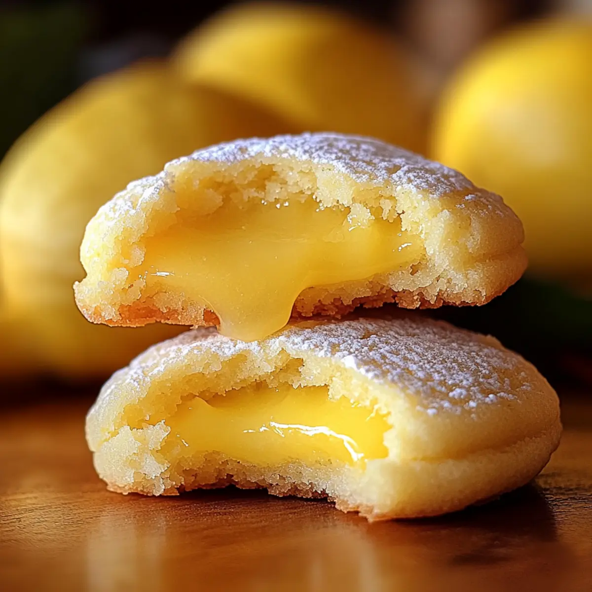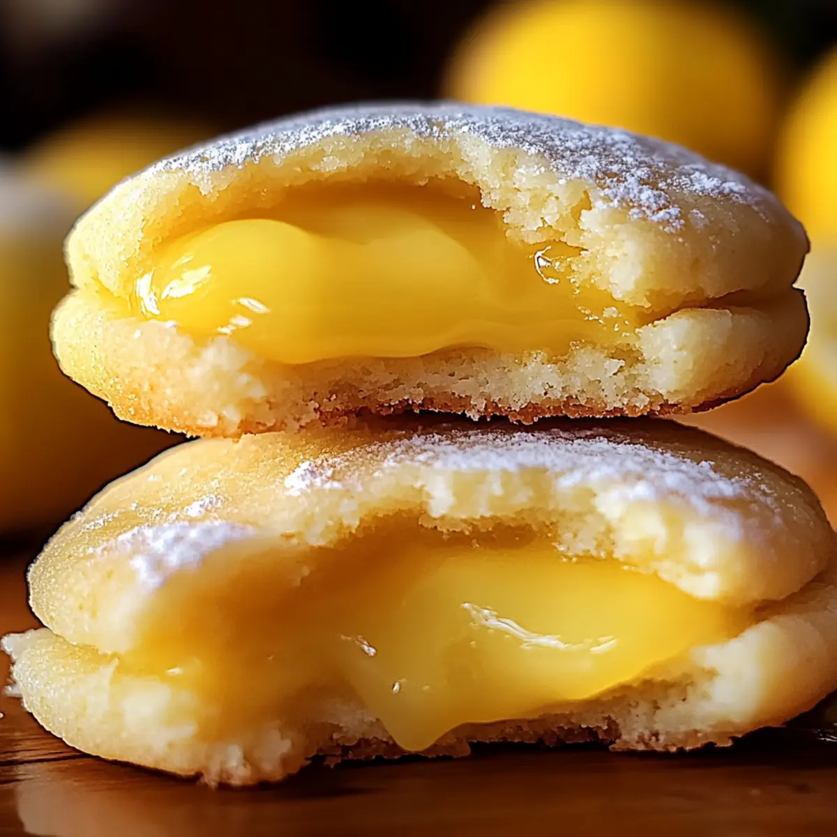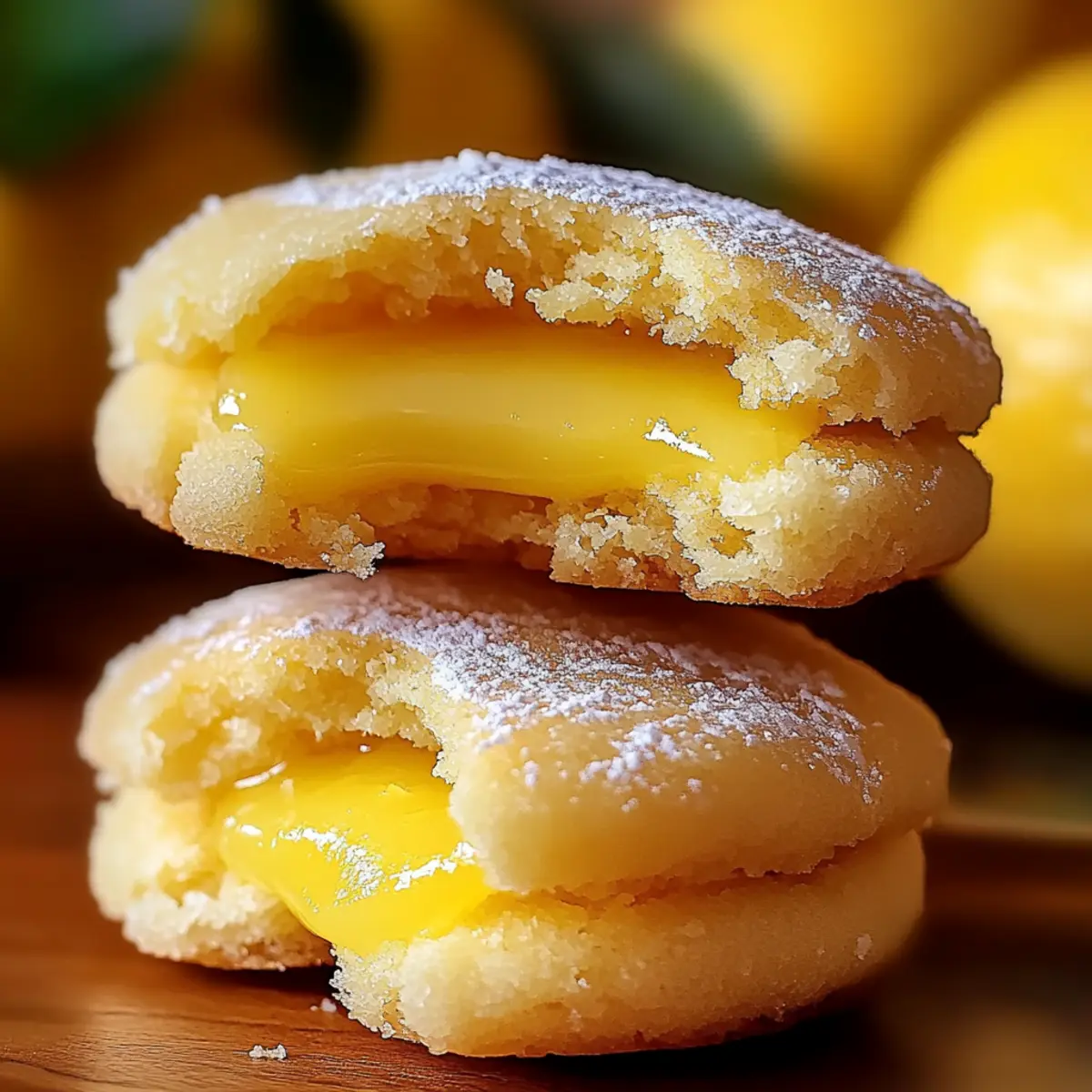 The aroma of zesty lemons permeated my kitchen, instantly transporting me to a sun-kissed afternoon by the sea. That’s how I knew it was the perfect day to make my beloved Stuffed Lemon Cookies. This delightful recipe brings together a tender, buttery cookie dough and a bright, tangy lemon curd filling, creating a treat that’s not just a visual feast but a burst of homemade goodness. Not only are these cookies made with fresh ingredients, ensuring a wholesome snack, but they’re also a crowd-pleaser—ideal for tea parties, special occasions, or simply indulging yourself. The best part? They’re quick to whip up and sure to impress! Are you ready to infuse your day with freshness and sweetness? Let’s dive into this delightful baking adventure! Why Are Stuffed Lemon Cookies Irresistible? Vibrant Flavor: The fresh lemon juice and zest bring a punch of zesty brightness that perfectly complements the buttery cookie base. Unique Filling: Stuffed with tangy lemon curd, these cookies create an unexpected surprise that elevates your standard cookie game! Quick & Easy: This recipe is designed for busy bakers, requiring minimal time and skill for a stunning homemade treat. Versatile Treat: Perfect for any occasion, whether it’s a casual afternoon snack or an elegant dessert for a special gathering. Crowd-Pleaser: With their delightful flavor and appealing presentation, these cookies are sure to impress your friends and family, making them a hit at any gathering! For a delightful pairing, consider serving them alongside a cup of tea or try them as part of a gift box with some Brown Butter Cookies. You won’t regret it! Stuffed Lemon Cookies Ingredients For the Cookie Dough • Caster Sugar – Adds sweetness and structure; granulated sugar can be used if needed. • Unsalted Butter – Provides tenderness and richness; margarine can be a dairy-free substitute. • Egg – Binds the ingredients and adds moisture; substitute with a flax egg for a vegan option. • Lemon Peel – Offers aromatic oils and extra flavor; be sure to only use the yellow zest for the best taste. • All-Purpose Flour – Creates the cookie’s structure; a gluten-free flour blend works well if needed. • Salt – Enhances flavors; avoid omitting as it could alter the cookie’s overall taste. • Baking Soda – Helps the cookies rise; ensure it’s fresh for optimum results. For the Lemon Curd Filling • Cornstarch – Acts as a thickener for the lemon curd; there’s no direct substitute for maintaining texture. • Fresh Lemon Juice – Imparts acidity and bright flavor; bottled juice can work in a pinch, though fresh is best. For Coating • Granulated White Sugar – Adds a sweet, crunchy finish; roll the dough balls in this before baking for extra texture. These Stuffed Lemon Cookies are an explosion of flavor waiting to happen in your kitchen, promising to bring joy with every bite! Step‑by‑Step Instructions for Stuffed Lemon Cookies Step 1: Prepare Lemon Curd Filling In a heatproof bowl, whisk together caster sugar and cornstarch until well blended. Gradually add in the egg, followed by fresh lemon juice and lemon peel. Place the bowl over a saucepan filled with simmering water (bain-marie), stirring continuously for about 10 minutes until thickened. Remove from heat, mix in the butter until melted, and let it cool slightly before wrapping in plastic. Refrigerate for at least 30 minutes to set. Step 2: Form Filling Portions Once the lemon curd has thickened and chilled, use a spoon to scoop it into 10 equal portions. Place these portions onto a lined tray, spacing them evenly. Freeze the curd for approximately 1 hour, or until solid. This step is crucial for making the Stuffed Lemon Cookies to ensure the filling stays intact while baking. Step 3: Make Cookie Dough In a large mixing bowl, cream together the unsalted butter and caster sugar until light and fluffy. Add in the lemon zest and vanilla, blending well before incorporating the egg. Gradually sift in the all-purpose flour, salt, and baking soda, mixing until a soft dough forms. Chill the dough in the refrigerator for about 20 minutes, which helps with easier shaping. Step 4: Assemble Cookies Preheat your oven to 350°F (180°C) and line a baking tray with parchment paper. Take a portion of chilled cookie dough and flatten it in your palm. Place a frozen lemon curd ball in the center, wrapping the dough around it completely. Roll the filled dough into a ball and then coat it in granulated sugar for added sweetness and texture. Repeat this process with the remaining dough and lemon curd. Step 5: Bake Arrange the sugar-coated cookie balls on the prepared baking tray, ensuring to space them 2 inches apart for even baking. Place the tray in the preheated oven and bake for 8-9 minutes, or until the edges are lightly golden and the centers appear set but soft. Allow the cookies to cool on the tray for a few minutes before transferring them to a wire rack to cool completely. Make Ahead Options These Stuffed Lemon Cookies are perfect for busy home cooks looking to save time! You can prepare the lemon curd filling up to 3 days in advance; just store it in an airtight container in the refrigerator. Form the lemon curd into portions and freeze them for up to 1 month. When you’re ready to bake the cookies, chill the dough for 20 minutes in the fridge and then simply wrap it around the frozen curd before coating in sugar and baking. This method ensures you have freshly baked cookies that are just as delicious and vibrant, allowing for minimal effort while maximizing flavor for those hectic weeknights! Expert Tips for Stuffed Lemon Cookies Room Temperature Butter: Ensure your butter is at room temperature for effortless mixing and to achieve that perfect cookie texture. Quick Assembly: Work quickly when assembling the cookies to prevent the lemon curd from melting. If it starts to become too soft, refreeze it briefly. Fresh Baking Soda: Always check that 