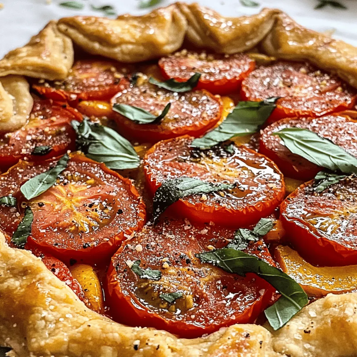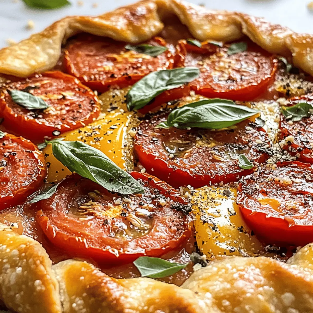 As I pulled the Tomato Pie Galette out of the oven, the kitchen filled with a warm, inviting aroma that instantly transported me to sun-drenched summer picnics. This rustic dish perfectly captures the essence of seasonal produce, showcasing ripe, juicy tomatoes and fresh herbs in a flaky, golden crust. Not only is this Tomato Pie Galette a visual feast, but it also promises quick preparation and adaptability, easily accommodating whatever veggies you have on hand. Whether you’re serving it at a casual dinner or a festive gathering, the delicious melding of gooey cheese and vibrant tomatoes will undoubtedly impress your guests. Curious about how to create this delightful centerpiece for your next meal? Let’s dive in! Why is Tomato Pie Galette a Must-Try? Simplicity at its finest: This rustic Tomato Pie Galette is easy to prepare, making it perfect even for beginner cooks. Flavor explosion: The blend of juicy tomatoes and melty cheese creates a taste sensation that’s a true summer delight. Versatile ingredients: Feel free to swap in seasonal vegetables to keep every galette exciting and fresh! Stunning presentation: Each slice showcases vibrant colors, turning your meal into a showstopper, ideal for gatherings. Quick to make: With simple steps, you can have this delicious dish ready in no time, allowing more moments to enjoy with friends or family. For similar flavorful options, don’t miss our Cheddar Bay Pie or Cherry Tomato Pasta! Tomato Pie Galette Ingredients • Enjoy crafting your Tomato Pie Galette with these fresh ingredients that celebrate summer’s bounty! For the Dough All-Purpose Flour – Provides structure for a flaky crust; consider using gluten-free flour if needed. Butter – Ensures a rich, flaky texture; make sure it’s cold and cut into cubes for the best results. Salt – Amplifies flavor; sea salt gives a gourmet touch. Cold Water – Helps bind the dough; keeping it cold ensures a flaky crust. For the Filling Heirloom and Roma Tomatoes – The star of the show, offering juiciness and depth of flavor; swap with zucchini or bell peppers for a fun twist. Garlic (minced) – Adds an aromatic depth that enhances the flavors. Fresh Basil – Contributes aromatic freshness; oregano may be a lovely substitute. Olive Oil – Coats the filling with richness, adding depth to each bite. Cheese (e.g., mozzarella or feta) – Brings creaminess to the galette; feel free to mix cheeses for varied taste. Black Pepper & Salt – Essential for seasoning the filling, enhancing the dish’s overall flavor. Now that you have all the ingredients ready, let’s whip up a delicious Tomato Pie Galette that will surely impress at your next gathering! Step‑by‑Step Instructions for Tomato Pie Galette Step 1: Preheat Oven Begin by preheating your oven to 400°F (200°C). This ensures a beautifully golden crust for your Tomato Pie Galette later on. While the oven warms up, gather your baking sheet and parchment paper to streamline your assembling process. Step 2: Prepare Dough In a large mixing bowl, combine all-purpose flour and salt. Cut in cold, cubed butter using a pastry cutter or your fingertips until the mixture resembles coarse crumbs. Gradually add cold water, one tablespoon at a time, mixing until a dough forms. Once combined, wrap the dough in plastic wrap and chill for at least 30 minutes to achieve maximum flakiness. Step 3: Prepare Filling While your dough chills, slice heirloom and Roma tomatoes into even pieces, showcasing their vibrant colors. In a mixing bowl, combine the tomato slices with minced garlic, fresh basil, salt, black pepper, and a drizzle of olive oil. Toss gently until the tomatoes are evenly coated, allowing the flavors to marinate while you roll out the dough. Step 4: Assemble Galette After chilling, roll out the dough on a lightly floured surface until it is about 12 inches in diameter. Transfer the rolled dough onto a sheet of parchment paper. Spread half of your chosen cheese evenly over the base, then layer the marinated tomato mixture on top. Finish by sprinkling the remaining cheese over the tomatoes to create a luscious topping. Step 5: Fold Crust Carefully fold the edges of the dough over the filling, creating a rustic border. Crimp the edges with your fingers to add a decorative touch. This simple folding technique not only contributes to the visual appeal of your Tomato Pie Galette, but it also helps to keep all the delicious juices contained during baking. Step 6: Bake Place the assembled Tomato Pie Galette in the preheated oven and bake for 35-40 minutes. Watch for the crust to turn a beautiful golden brown, and ensure the cheese bubbles enticingly. This baking time will give you a crispy crust and a delicious, well-cooked filling. Step 7: Serve Once baked, remove the Tomato Pie Galette from the oven and let it cool slightly. Slice the galette into wedges and serve warm or at room temperature. Enjoy the beautiful medley of flavors that celebrate the essence of summer! Tomato Pie Galette Variations & Substitutions Feel free to elevate your Tomato Pie Galette with these delightful twists that let you play with flavors and textures! Gluten-Free: Substitute the all-purpose flour with a gluten-free blend. Your crust will still be wonderfully flaky! Dairy-Free: Try using vegan butter and dairy-free cheese alternatives to create a delicious, non-dairy version. Extra Veggies: Add seasonal veggies like corn or spinach to your filling for a nutritional boost and a pop of color. Herb Infusion: Swap basil for fresh dill or thyme for a unique herbaceous twist that brightens your galette. Creamy Texture: Incorporate ricotta cheese with your mozzarella or feta for added creaminess and a delightful mouthfeel. Spicy Kick: Mix in a pinch of red pepper flakes or sliced jalapeños to give your Tomato Pie Galette an enjoyable heat. Sweet Twist: Add thinly sliced peaches or a drizzle of balsamic glaze for a surprising sweet contrast alongside the savory fillin
