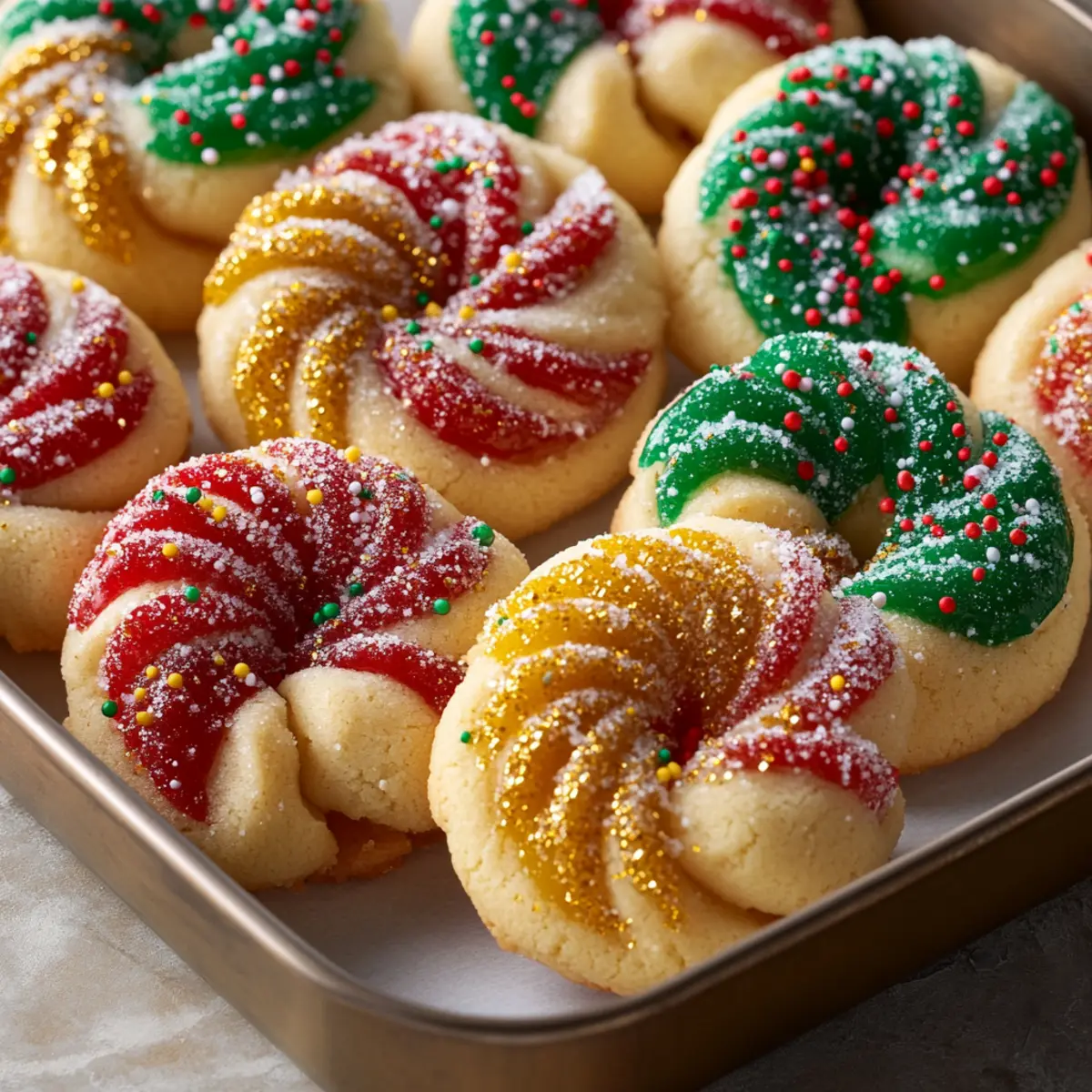 As I mixed the fragrant aroma of almond and citrus filled my kitchen, I couldn’t help but smile at the thought of the holidays ahead. These Twisted Christmas Cookies quickly became my go-to recipe for festive gatherings, loved for their buttery, melt-in-your-mouth texture and the delightful surprise of zesty icing. Not only are these cookies a joyful addition to any holiday table, but they’re also perfect for gifting to friends and family. With minimal prep time and endless decorative possibilities, you’re sure to impress guests and create new traditions. Are you ready to sweeten your celebrations with these irresistible holiday delights? Why Are These Cookies So Irresistible? Unique Flavors: The delightful combination of almond and citrus brings a festive twist, making these cookies stand out from traditional recipes. Fun to Decorate: Let your creativity shine with vibrant gel food colors and toppings like edible glitter or crushed candy canes for a delightful presentation! Quick & Easy: With minimal prep time, you can whip up a batch of these cookies and have more time for holiday festivities with loved ones. Perfect for Gifting: These treats are not just delicious; they make for beautiful gifts when arranged on a decorative platter or in themed tins. Check out our Brown Butler Cookies for another fantastic holiday treat that pairs beautifully with these cookies! Twisted Christmas Cookies Ingredients Get ready to bake up some holiday magic with these delightful treats! For the Cookie Dough White Sugar – Provides sweetness; no substitutions necessary. Butter (14 oz / 400g, softened) – Adds richness and tenderness; use unsalted for better flavor control. Eggs (2) – Acts as a binder for structure; substitute with flax eggs for a vegan version. Vanilla Extract (2 tsp) – Enhances sweetness and depth; can be replaced with maple extract for a different twist. Almond Extract (1 tsp) – Imparts that nostalgic holiday flavor; omit for a nut-free version. Orange Zest (from 1 orange, optional) – Adds a vibrant brightness; substitute with lemon zest for a zesty change. Plain Flour (6 cups) – Forms the cookie’s structure; consider using a gluten-free flour blend for a gluten-free option. For the Icing Meringue Powder (6 tbsp) – Essential for icing stability; replace with powdered egg whites if you can’t find it. Water (8 tbsp) – Use to thin icing to desired consistency; feel free to adjust as needed. Lemon Juice (2 tsp) – Adds a tangy touch to icing; use vinegar as a substitute if you’re out. Powdered Sugar (7 cups, sifted) – Sweetens and provides icing structure; ensure it’s sifted for a smooth finish. For Decoration Gel Food Coloring (red, green, gold, white) – Perfect for vibrant cookies; consider using natural coloring alternatives for a healthier option. Sprinkles, Edible Glitter, or Crushed Candy Canes – Optional toppings to personalize your cookies; let your creativity flow! Step‑by‑Step Instructions for Twisted Christmas Cookies Step 1: Preheat and Prepare Begin by preheating your oven to 350°F (175°C). While it heats, line your baking sheets with parchment paper to prevent sticking. This step is crucial for these Twisted Christmas Cookies, ensuring they bake evenly and maintain their delightful shape. Set the lined sheets aside as you prepare the cookie dough. Step 2: Cream Butter and Sugar In a large mixing bowl, combine the softened butter and white sugar. Using a hand mixer or stand mixer, cream them together on medium speed until the mixture becomes light and fluffy, about 3-4 minutes. This process incorporates air, leading to a tender cookie. Once fluffy, add in the eggs, vanilla extract, almond extract, and orange zest, mixing until the batter is smooth and well combined. Step 3: Mix in the Flour Gradually add the flour to the creamed mixture, stirring gently until just combined. If the dough feels too sticky, you can incorporate a little extra flour until you achieve the right consistency. The final dough should be soft but manageable. This step is vital for the texture of your Twisted Christmas Cookies, ensuring they hold their shape when cut and baked. Step 4: Roll Out the Dough On a lightly floured surface, roll the dough to a thickness of about ¼ inch. Use cookie cutters to cut out festive shapes, placing them on the prepared baking sheets. Ensure there’s some space between each cookie, as they will expand slightly while baking. Chill the cookies in the refrigerator for 10-15 minutes, allowing them to firm up for a better baking outcome. Step 5: Bake the Cookies Once chilled, place the baking sheets in the preheated oven and bake for 10-12 minutes. Keep an eye on the edges; they should turn just golden while the centers remain slightly soft. This stage is critical in achieving that melt-in-your-mouth quality. Once baked, remove the sheets from the oven and let the cookies cool on the pan for a few minutes before transferring them to a wire rack to cool completely. Step 6: Prepare the Icing To make the icing, whisk together the meringue powder, lemon juice, and water in a medium bowl until well combined. Gradually mix in the sifted powdered sugar until the mixture is glossy and reaches the desired spreading consistency. This icing will beautifully decorate your Twisted Christmas Cookies, adding an extra festive touch. Step 7: Decorate the Cookies Divide the icing into separate bowls and add gel food coloring to each for vibrant hues. Once the cookies are completely cool, use a spatula or piping bag to spread or pipe the icing onto each cookie. Add sprinkles, edible glitter, or crushed candy canes on top for a delightful finish. Allow the icing to set fully before serving or packaging the cookies as gifts. Expert Tips for Twisted Christmas Cookies Dough Consistency: If your dough is too sticky, gradually incorporate additional flour until it’s manageable; chill between batches for easier handling. Butter Temperature: Avoid overly so