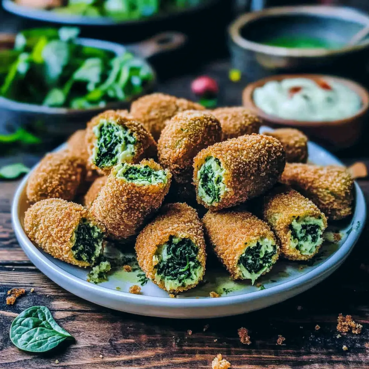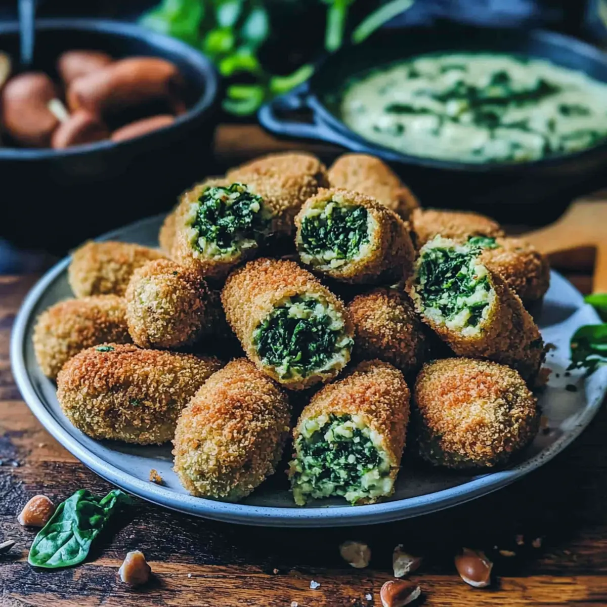 As I sat at my kitchen counter, pondering a light yet satisfying snack, a tiny spark ignited in my mind. What if I could recreate the joy of cozy comfort food without the heaviness? Enter these crispy Vegan Croquettes with Spinach! They boast a delightful crunch on the outside, complemented by a creamy, savory filling that makes them irresistibly comforting. Not only are they an ideal guilt-free snack, but they also double as a crowd-pleasing appetizer for any gathering. Plus, with a low-fat béchamel sauce that keeps flavors vibrant, you can indulge without compromise. Whether you’re looking to impress guests or simply treat yourself, these croquettes are sure to hit the spot. Ready to whip up something extraordinary? Let’s get cooking! Why choose Vegan Spinach Croquettes? Satisfying Crunch: These croquettes feature a wonderfully crispy exterior that gives way to a creamy filling, making every bite a delightful experience. Healthy Indulgence: With just 43 calories per croquette, you can enjoy a guilt-free snack that doesn’t compromise on flavor. Versatile Flavor: Customize your croquettes by adding different greens like kale or spices such as smoked paprika for a unique twist! Quick & Easy: The straightforward preparation makes these croquettes a breeze to whip up, perfect for weeknight cooking or surprise guests. Crowd-Pleasing Appetizer: They serve as a fantastic appetizer for gatherings, pairing beautifully with hummus or guacamole. Enjoy these Vegan Spinach Croquettes as a delicious alternative to traditional fried snacks! Vegan Croquettes with Spinach Ingredients • Discover the secrets to making crispy Vegan Croquettes with Spinach. For the Filling Frozen Spinach – Provides rich flavor and nutrition; you can substitute it with fresh spinach, cooked and chopped. Onion – Offers aromatic sweetness; be sure to dice it finely for even cooking. Garlic – Enhances flavor depth; chop it finely to maximize essence in the béchamel. Salt and Pepper – Essential for seasoning; use to taste for the perfect balance. For the Béchamel Sauce Plant-Based Milk (Unsweetened) – Serves as the base for the béchamel; any unsweetened dairy-free milk will work well. Vegetable Broth – Adds depth; opt for low-sodium broth for a healthier version. Flour – Acts as a thickener for the sauce; gluten-free all-purpose flour is a great substitution. Olive Oil or Canola Oil (or Vegan Butter) – Adds flavor and richness; coconut oil is a suitable alternative for frying. For Coating and Frying Bread Crumbs – Coats the croquettes for texture; use gluten-free breadcrumbs if needed. Coconut Oil (for frying) – Needed for a crispy texture; make sure the oil is hot enough to avoid excess oil absorption. These ingredients come together beautifully to create irresistible Vegan Croquettes with Spinach, perfect for snacking or entertaining! Step‑by‑Step Instructions for Vegan Croquettes with Spinach Step 1: Thaw and Prepare Spinach Begin by thawing a generous amount of frozen spinach in a strainer. Once thawed, squeeze out excess moisture to ensure your vegan croquettes achieve the right texture. This crucial step guarantees a deliciously crispy bite without sogginess, perfect for the filling of your Vegan Croquettes with Spinach. Step 2: Sauté Aromatics In a large skillet, heat 2 tablespoons of olive oil over medium heat. Add diced onions and sauté them for about 5-7 minutes until they become soft and translucent. Incorporate finely chopped garlic and continue to cook for an additional 1-2 minutes, until fragrant. This aromatic base will elevate the flavor of your croquettes. Step 3: Make Béchamel Sauce Sift ½ cup of flour into the sautéed onion and garlic mixture, stirring continuously for about 2-3 minutes until it begins to turn light golden brown. Gradually pour in 1 cup of unsweetened plant-based milk while stirring to avoid lumps. Cook for another 5-7 minutes until the mixture thickens into a smooth béchamel sauce, adding depth to your Vegan Croquettes. Step 4: Combine Spinach and Season Once your béchamel has thickened, fold in the squeezed spinach and season your mixture with salt and pepper to taste. Stir thoroughly to combine all the ingredients evenly, then transfer the filling to a bowl. Cover and refrigerate for at least 3-4 hours, or ideally overnight, to allow flavors to meld. Step 5: Set Up Breading Station As the filling chills, prepare a breading station by placing plant-based milk in one bowl and breadcrumbs in another. This setup is essential for coating your croquettes, ensuring they achieve a delightful crunch when fried. Make sure you have a baking sheet nearby to hold the breaded croquettes. Step 6: Shape and Bread Croquettes Once the filling is chilled, take about 1 tablespoon of it and shape it into oblong croquettes. First, dredge each croquette in breadcrumbs, then dip it in the plant-based milk, and finally, roll it in breadcrumbs again for an added crispy coating. Repeat until all the filling is used, creating a batch of savory Vegan Croquettes. Step 7: Fry to Perfection In a large frying pan, heat enough coconut oil over medium heat to submerge the croquettes partially. Ensure the oil is hot by testing with a small breadcrumb—if it sizzles, it’s ready. Fry the croquettes for about 3-4 minutes on each side or until golden brown and crispy. This step is key to achieving that satisfying crunch! Step 8: Drain and Serve Once fried, carefully transfer the croquettes to a plate lined with paper towels to absorb excess oil. Allow them to cool slightly, enhancing the texture as they rest. Serve your Vegan Croquettes with Spinach warm, paired with a dipping sauce of your choice, and prepare to wow your family or guests! Tips for the Best Vegan Spinach Croquettes Ensure Crispiness: Use hot coconut oil for frying to achieve the desired crunchy exterior. If the oil isn’t hot enough, the croquettes may absorb excess oil, leading to sogginess. Chill the Filling: Refri