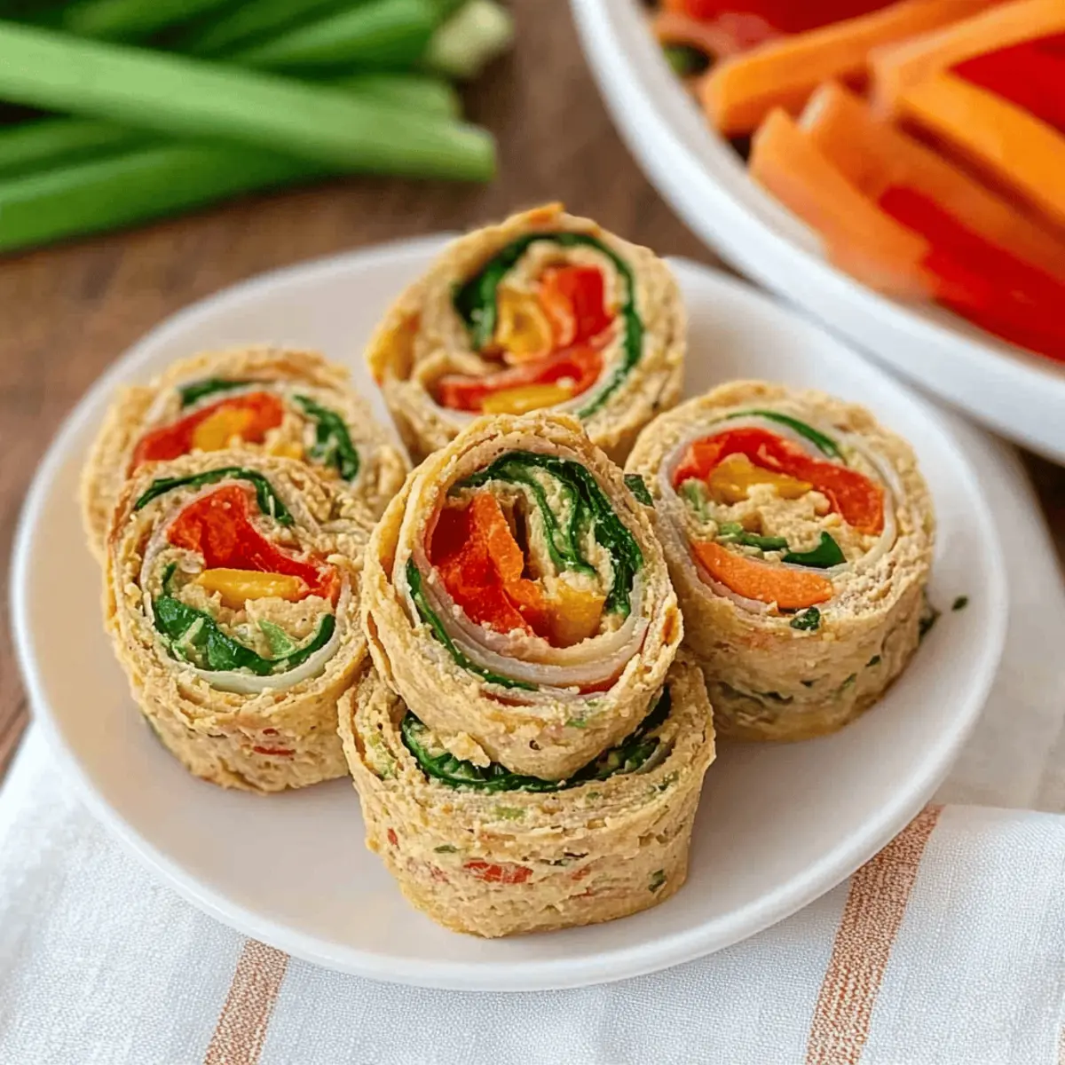 Vegan Pinwheels are a delightful twist of fresh vegetables in a chickpea spread, perfect for a healthy snack or appetizer.