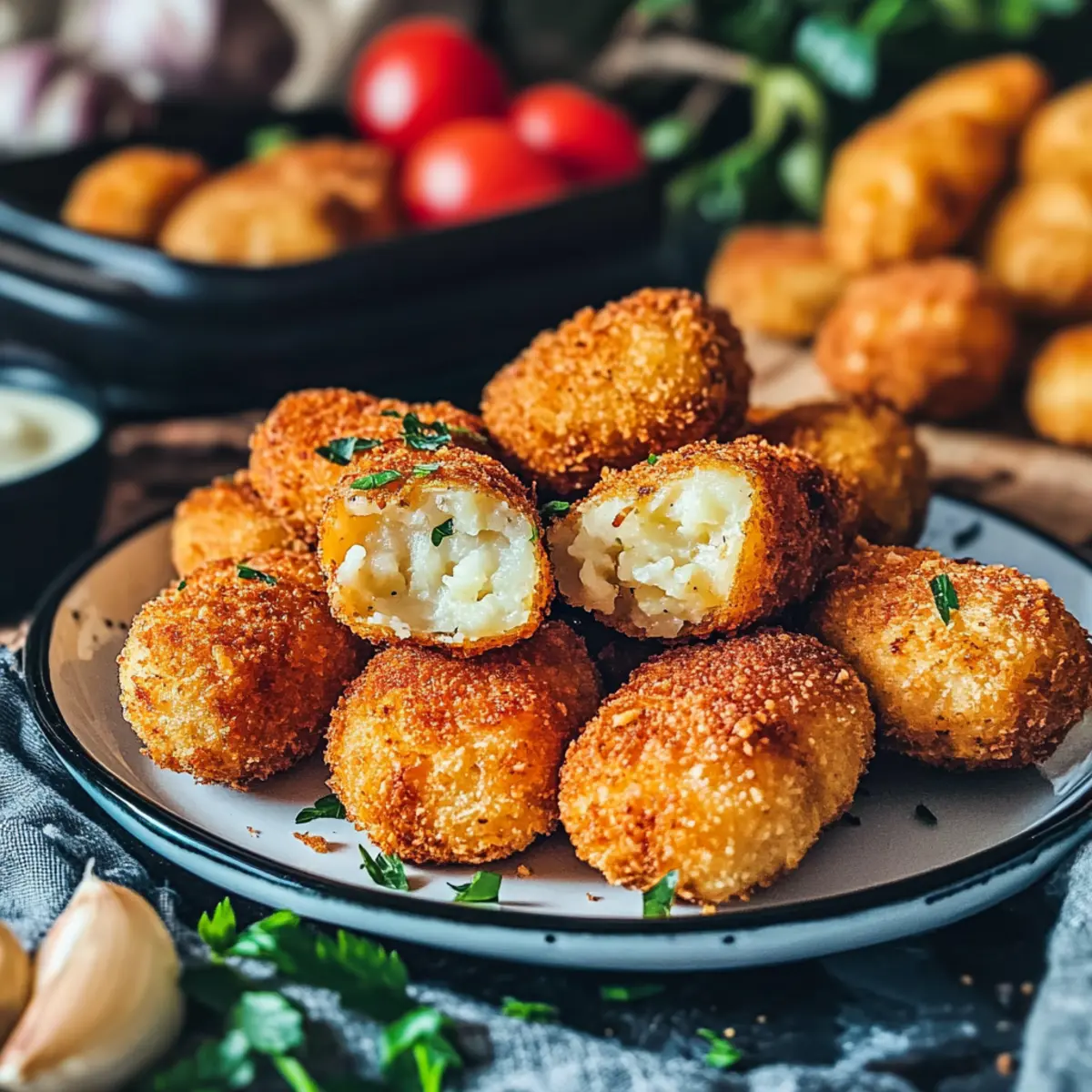 The aroma of crispy croquettes wafts through my kitchen, instantly transporting me to joyful family gatherings where food was more than just a meal—it was a celebration. Today, I’m excited to share my recipe for Homemade Vegan Potato Croquettes, which are delightfully crispy on the outside and luxuriously creamy within, making them a satisfying alternative to conventional snack foods. What I love most about these croquettes is their versatility; not only are they vegan and healthier, but they can also be easily adapted to fit dietary needs, including a gluten-free option. Whether you’re looking to impress guests at a cozy gathering or simply want a delicious snack, these croquettes are sure to steal the show. Curious about how to customize your own batch? Let’s dive in! Why Are Vegan Potato Croquettes So Irresistible? Crispy Perfection: These croquettes deliver an unforgettable crunch that’ll have everyone lining up for seconds! Mouthwatering Creaminess: The soft potato filling melts in your mouth, a delightful contrast to the crispy exterior. Adaptable Deliciousness: Customize your croquettes with endless variations—from herbs to vegan cheeses—making them perfect for any palate. Healthier Snack Option: Baked and vegan, they’re a guilt-free indulgence, so you can enjoy without the fast-food blues! Family-Friendly Fun: Get the whole family involved in making these delightful bites; the kids will love helping you shape and coat them! Perfectly Pairable: Serve them alongside your favorite dips, or enjoy them as a stand-alone snack. For more tasty ideas, check out my recipes for Gluten Free Vegan and Parmesan Chicken Potatoes. Vegan Potato Croquettes Ingredients • To create these delicious Vegan Potato Croquettes, gather wholesome ingredients that pack flavor and texture in every bite. For the Croquettes Potatoes – Use floury potatoes for the best creamy texture that forms the foundation of your croquettes. All-Purpose Flour or Gluten-Free Flour – Acts as a binding agent; substitute with gluten-free flour to keep it entirely Celiac-friendly. Vegan Butter or Margarine – Adds creaminess to your mixture; coconut oil is a good alternative, just use less to maintain balance. Garlic Powder or Onion Powder – Enhances the overall flavor profile; if you prefer a fresher taste, finely sautéed garlic or onion can substitute. Salt – Essential for bringing all the flavors together; season to your personal taste for a customized touch. Nutmeg – Adds a touch of warmth and depth; a pinch can elevate the flavor without overpowering it. For Coating and Crispiness Unsweetened Plant Milk – Helps the crumbs adhere and provides a delicate coating; choose any plant-based milk you enjoy (soy, almond, or oat work well). Panko or Gluten-Free Breadcrumbs – Creates that irresistible crunch on the outside; go for gluten-free options if that’s your preference. Paprika Powder or Chili – Adds a hint of spice and vibrant color, giving your croquettes an extra flavor kick. Cooking Spray – Ensures a golden crispy finish while baking; it’s ideal if you’re looking for a lighter alternative to frying. With these ingredients for your Vegan Potato Croquettes, you’re well on your way to whipping up a crowd-pleasing dish that’s both warm and crunchy! Step-by-Step Instructions for Crispy Homemade Vegan Potato Croquettes Step 1: Prep Potatoes Start by peeling and chopping 4–6 medium floury potatoes, then place them in a large pot of salted water. Bring the water to a boil and cook for about 20 minutes, or until the potatoes are fork-tender. Drain the potatoes well and allow them to sit for a few minutes to let excess moisture evaporate; this will ensure your Vegan Potato Croquettes have the perfect texture. Step 2: Mash Potatoes Using a potato masher or ricer, mash the drained potatoes until smooth and creamy, with no lumps remaining. In the same bowl, mix in 1–2 cups of all-purpose or gluten-free flour, 2 tablespoons of vegan butter, 1 teaspoon of garlic powder, 1 teaspoon of salt, and a pinch of nutmeg. Stir well to combine, then set the mixture aside to cool slightly. This step is crucial for shaping the croquettes later. Step 3: Preheat Oven While your potato mixture cools, preheat your oven to 200°C (392°F) or 180°C (350°F) for a fan oven. Prepare three shallow bowls: one with unsweetened plant milk, one filled with flour for dusting, and the last with panko or gluten-free breadcrumbs. This setup will streamline the coating process for your Vegan Potato Croquettes and help you achieve that crispy exterior. Step 4: Shape Croquettes Once the potato mixture is cool enough to handle, scoop about 28 grams (approximately 1 ounce) of the mixture and roll it gently in your hands to form croquettes, about 2–3 inches long. Aim to shape around 30 croquettes. Place them on a baking sheet lined with parchment paper, ensuring there is a little space between each one to allow for even baking. Step 5: Coat Croquettes Take each croquette and start by dipping it into the flour to coat evenly, shaking off any excess. Next, immerse it in the plant milk, allowing the extra liquid to drip off before rolling it in the breadcrumbs until fully covered. Repeat this for each croquette, which will ensure they are delightfully crispy when baked. Step 6: Bake Arrange the coated croquettes on your prepared baking sheet. Lightly sprinkle with your favorite seasoning and spritz with cooking spray to help achieve that golden-brown crispiness. Bake for about 20 minutes, turning them halfway through for even browning, until you see a beautiful golden exterior. Alternatively, for a faster method, deep-fry each croquette for 4 minutes until golden. Step 7: Serve Once baked, take your crispy Homemade Vegan Potato Croquettes out of the oven, allowing them to cool just slightly. Sprinkle with sea salt and serve warm alongside your choice of dipping sauce. These croquettes are a fantastic snack or appetizer, perf