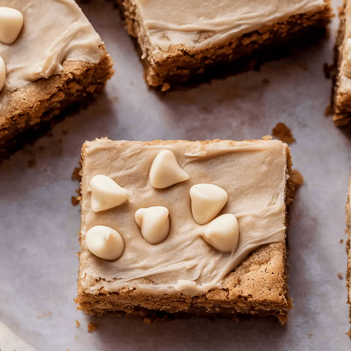The kitchen was alive with laughter as I attempted to whip up a sweet surprise for my family. Suddenly, the smell of melting butter mingled with the warm sweetness of brown sugar, igniting my senses. That’s when I knew I had to share my go-to recipe for White Chocolate Blondies with Cinnamon Cream Cheese Frosting. This delightful treat is a one-bowl recipe, making it incredibly easy to whip up even on the busiest of days. Not only are these blondies a nostalgic nod to classic desserts, but their chewy texture paired with the creamy frosting creates an irresistible combination that’s simply hard to resist. Plus, they’re a fantastic way to involve kids in the kitchen, sparking joy and creativity while making memories together. Ready to bake something that promises smiles all around? Let’s dive into the recipe and discover just how simple it is to bring this dessert to life! Why are you going to love these blondies? Easy to Make: This one-bowl recipe allows you to whip up delicious White Chocolate Blondies in no time, minimizing cleanup while maximizing satisfaction. Irresistibly Chewy: The perfect blend of brown sugar and melted butter gives these blondies a delectable, chewy texture that keeps you reaching for more. Dazzling Frosting: Topped with creamy cinnamon cream cheese frosting, every bite offers a delightful contrast of flavors that’s simply mouthwatering. Customizable: Feel free to mix in your favorite add-ins like nuts or swap the white chocolate for butterscotch. The options are endless! These blondies are sure to be a hit, making them a go-to dessert for family gatherings or a simple evening treat. You could also experiment by checking out Salted Caramel Chocolate or Brown Butter Chocolate for more delectable recipes! White Chocolate Blondie Ingredients • Ready to indulge in a warm, chewy treat? For the Blondies Unsalted Butter – 3/4 cup of melted goodness that adds richness; remember to cool it before mixing for best results. Brown Sugar – 1 1/2 cups packed, bringing natural sweetness and chewiness; use light or dark for varied flavor depth. Large Eggs – 2 room temperature eggs bind everything together, so let them warm up for smooth mixing. Egg Yolk – 1 additional yolk enhances richness and moisture in your blondies. Pure Vanilla Extract – 1 tsp for a hint of deep, aromatic flavor; opt for pure for the best taste. All-Purpose Flour – 2 cups provide the structure; sifting before measuring helps avoid any lumps. Salt – 1/2 tsp balances the sweet notes in these white chocolate blondies. White Chocolate Chips – 3/4 cup will bring an indulgent sweetness; feel free to add up to 1 cup for cookie-like decadence. For the Cinnamon Cream Cheese Frosting Unsalted Butter – 1/3 cup slightly cold for creaminess; let it soften slightly for easy blending. Cream Cheese – 2 oz at room temperature for that tangy richness; be sure to mix well for a smooth consistency. Powdered Sugar – 2 cups sweeten and thicken the frosting beautifully to provide a luscious finish. Ground Cinnamon – 1/2 tsp infuses warm, comforting flavors; it’s the secret to elevating your frosting. Pure Vanilla Extract – 1 tsp to add sweetness and enhance the overall taste. Salt – 1/4 tsp balances the sweetness; don’t skip this step for a perfectly flavored frosting. Heavy Cream – 1 tbsp helps achieve that smooth texture for spreading. Get ready to create something magical with these ingredients and elevate your dessert game to a whole new level! Step‑by‑Step Instructions for White Chocolate Blondies Step 1: Prep the Oven & Pan Start by preheating your oven to 350°F (175°C). While the oven warms up, grab an 8X8-inch baking pan. Spray it lightly with non-stick cooking spray and line the bottom and two sides with parchment paper for easy removal later. Spray the parchment paper as well to ensure your blondies release effortlessly. Step 2: Make the Batter In a large mixing bowl, melt 3/4 cup of unsalted butter and let it cool slightly until it’s warm, not hot. Add 1 1/2 cups of packed brown sugar and 1 teaspoon of pure vanilla extract. Use a whisk or spoon to mix these ingredients until they blend smoothly. Next, incorporate 2 large eggs and 1 egg yolk at room temperature, stirring until fully combined and creating a beautifully rich batter. Step 3: Add Dry Ingredients Sift together 2 cups of all-purpose flour and 1/2 teaspoon of salt in a separate bowl to create a light texture. Gradually fold this dry mixture into your wet ingredients until they are just combined, taking care not to overmix—this keeps your White Chocolate Blondies chewy and delicious. Then, gently fold in 3/4 cup of white chocolate chips, ensuring they’re evenly distributed throughout the batter. Step 4: Bake Pour the blondie batter into your prepared baking pan, spreading it evenly with a spatula. Place it in the preheated oven and bake for 30–40 minutes. Check for doneness by inserting a toothpick into the center; it should come out with a few moist crumbs, indicating your blondies are perfectly baked and ready to cool. Step 5: Cool Once baked, remove the pan from the oven and let your White Chocolate Blondies cool completely in the pan on a wire rack. This cooling process is essential to achieving the ideal chewy texture and allows the flavors to settle in. Be patient; it’s worth the wait! Step 6: Make the Frosting While the blondies are cooling, prepare the cinnamon cream cheese frosting. In a mixing bowl, beat together 1/3 cup of slightly cold unsalted butter and 2 ounces of room-temperature cream cheese until the mixture is smooth and creamy. Gradually add 2 cups of powdered sugar and 1/2 teaspoon of ground cinnamon, mixing well until fully combined and fluffy. Lastly, incorporate 1 teaspoon of pure vanilla extract, 1/4 teaspoon of salt, and 1 tablespoon of heavy cream for a beautifully spreadable texture. Step 7: Finish the Blondies Once the blondies have completely cooled, carefully lift them 