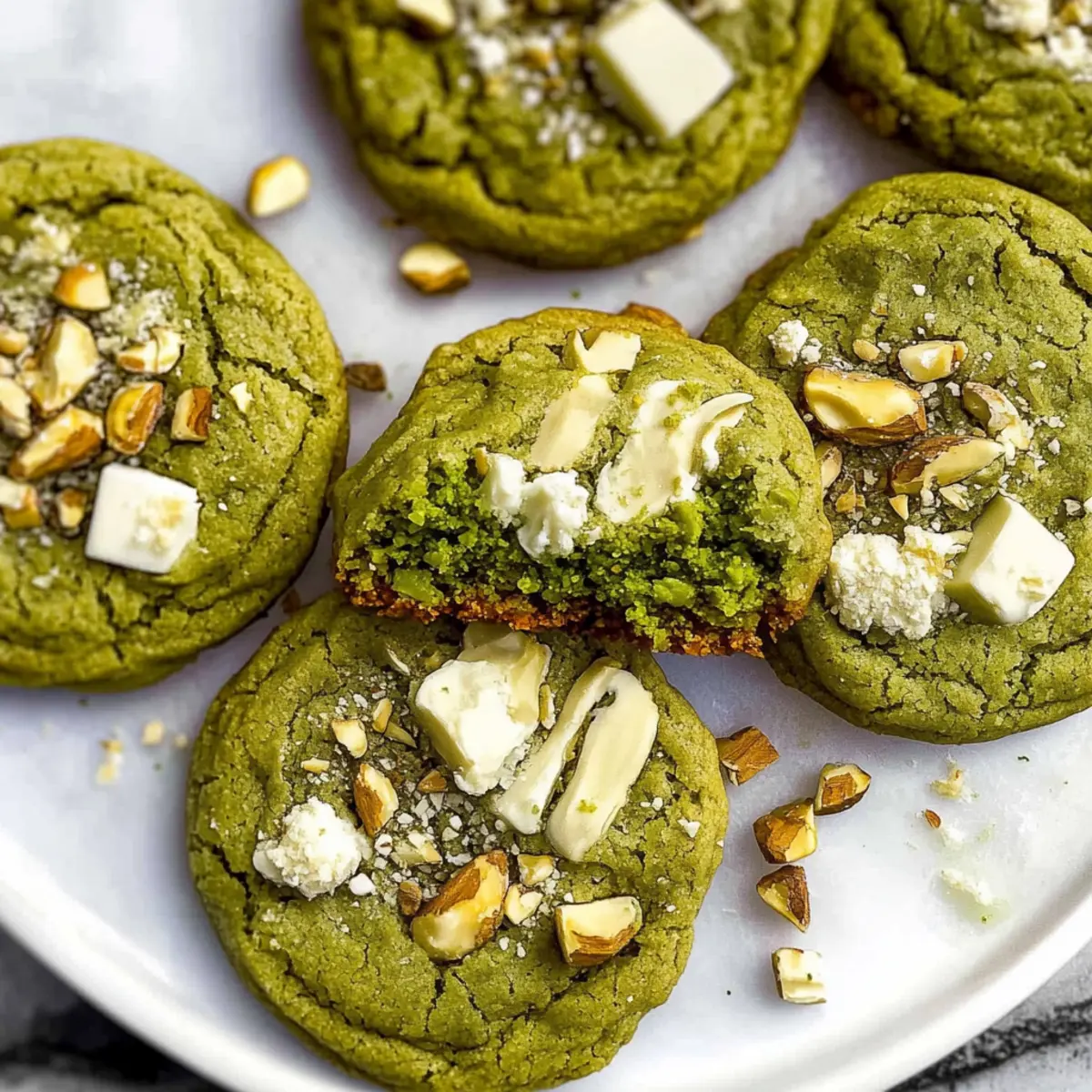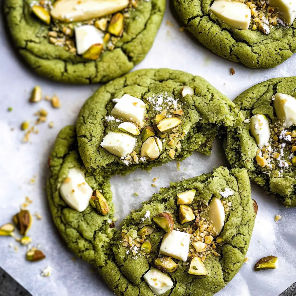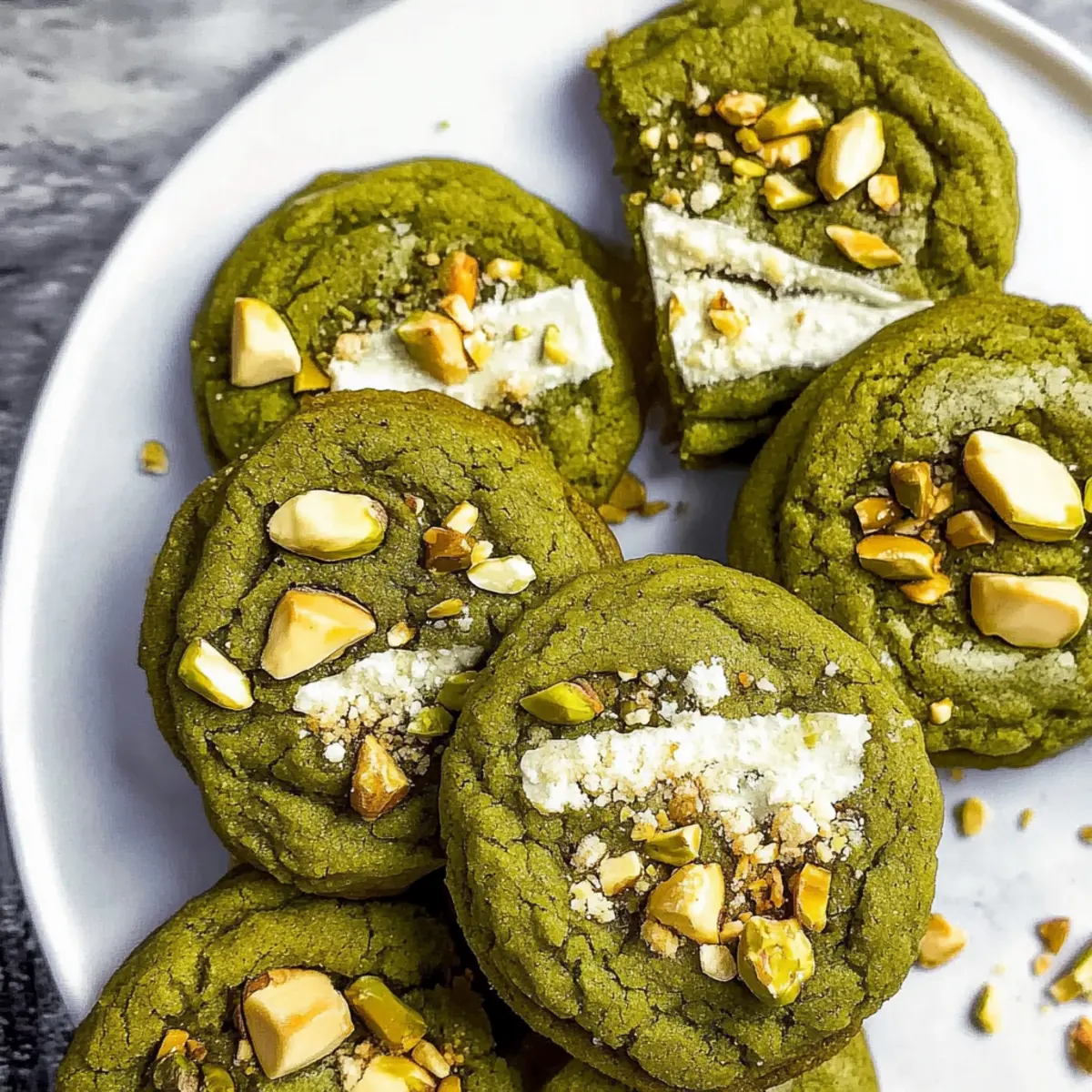 As I stood in my kitchen, the distinct aroma of matcha wafting through the air, a wave of nostalgia washed over me. It conjured memories of serene tea ceremonies and the gentle clinking of porcelain cups. Today, I’m excited to share my recipe for White Chocolate Pistachio Matcha Cookies, an enchanting fusion that might just become your new favorite dessert. What’s truly delightful about these cookies is not only their beautiful earthy flavor but also the fact that they’re ready in just 30 minutes. Plus, they feature a soft, chewy center complemented by crunchy edges, making them a tempting treat for any occasion. The luscious white chocolate pairs perfectly with roasted pistachios, resulting in a cookie that feels both indulgent and unique. Are you ready to elevate your baking game and impress your friends? Let’s get started! Why Are These Cookies a Must-Try? Instant Gratification: You can whip these up in just 30 minutes, making them a perfect choice for last-minute baking cravings. Unique Flavor Profile: The combination of matcha, white chocolate, and pistachios offers a delightful twist on traditional cookies that will impress anyone. Soft and Chewy Texture: Expect a satisfying contrast between the gooey centers and slightly crisp edges that will have your taste buds dancing. Customizable Options: Feel free to switch out the pistachios for almonds or walnuts, and even replace white chocolate with semi-sweet chocolate for a twist on a classic! For more baking inspiration, don’t forget to check out my delicious Brown Butter Chocolate cookies or these delightful Chocolate Oat Cookies. White Chocolate Pistachio Matcha Cookie Ingredients For the Dough • Salted Butter – Provides richness and moisture in the cookies; use at room temperature for easy creaming. • Granulated Sugar – Adds sweetness; helps achieve a fluffy texture when creamed with butter. • Large Egg – Acts as a binder that adds moisture to the dough. • Vanilla Extract – Enhances flavor and adds depth to the cookie’s taste profile. • All-Purpose Flour – Builds the cookie’s structure, ensuring the perfect soft and chewy texture. • Baking Soda – Helps the cookies rise and maintain their soft texture. • Baking Powder – Works with baking soda to provide additional lift to the cookies. • Salt – Balances the sweetness, enhancing the overall flavor profile. • Matcha Powder – Adds an earthy, slightly bitter flavor; culinary grade is recommended for baking. For the Mix-Ins • White Chocolate – Delivers sweetness and creaminess that beautifully complements matcha. • Roasted and Salted Pistachios – Provides a crunchy texture and nutty flavor; can be omitted if desired for a smoother cookie. These White Chocolate Pistachio Matcha Cookies are sure to become your go-to treat, and they exemplify how quick baking can yield delicious results! Step‑by‑Step Instructions for White Chocolate Pistachio Matcha Cookies Step 1: Preheat the Oven Start by preheating your oven to 350°F (175°C). While it heats, line two baking sheets with parchment paper to prevent the cookies from sticking and ensure easy cleanup later. This is a crucial first step that guarantees your White Chocolate Pistachio Matcha Cookies bake evenly, achieving that perfect soft and chewy texture. Step 2: Cream the Butter and Sugar In a large mixing bowl, combine room temperature salted butter and granulated sugar. Using a hand mixer or stand mixer, cream the mixture on medium speed for about 2 minutes, or until it becomes light and fluffy. You’ll know it’s ready when the color lightens and the texture is airy, setting a sweet base for your cookies. Step 3: Add the Egg and Vanilla Next, add a large egg and a splash of vanilla extract to the creamed butter and sugar. Mix them together on low speed until just combined, about 30 seconds. This step is vital as it contributes moisture and depth of flavor to your White Chocolate Pistachio Matcha Cookies, ensuring each bite is deliciously rich. Step 4: Mix in Dry Ingredients In the same bowl, add all-purpose flour, baking soda, baking powder, salt, and matcha powder. Use a spatula or wooden spoon to mix gently until everything is just incorporated, taking care not to overwork the dough. You’ll notice the dough appears crumbly, but this is normal for matcha cookies; they’ll come together perfectly! Step 5: Fold in the Mix-Ins Now it’s time to fold in the chopped white chocolate and roasted pistachios. Gently incorporate them into the dough with a spatula, ensuring the mix-ins are evenly distributed without over-mixing. This will create delightful pockets of sweetness and crunch, bringing the flavors of your White Chocolate Pistachio Matcha Cookies to life. Step 6: Shape the Cookies Using a cookie scoop or your hands, roll about 2 tablespoons of dough into balls. Space them evenly on your prepared baking sheets, giving each cookie enough room to spread while baking. You should aim for about 12 cookies per sheet, creating a tempting array of future treats that will be soft and chewy. Step 7: Bake the Cookies Place the baking sheets in the preheated oven and bake for 9–10 minutes. Keep an eye on them, as you want the edges set while the centers remain slightly soft. This will ensure your White Chocolate Pistachio Matcha Cookies have that perfect chewy center and appealing golden edges, signaling they are ready to come out. Step 8: Cool the Cookies After baking, remove the sheets from the oven and let the cookies cool on the baking sheets for about 2 minutes. This allows them to firm up slightly before transferring them to a wire cooling rack. Enjoy the aroma wafting through your kitchen as the cookies cool, setting the stage for an irresistible treat. Step 9: Add a Final Touch For an extra special touch, sprinkle additional chopped white chocolate and pistachios on top of the cookies while they’re still warm. This provides not only a delightful appearance but also an ext
