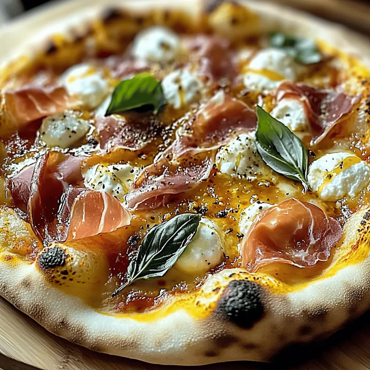 As I pulled a freshly baked pizza from the oven, the sizzling sound was music to my ears—a sure sign that something delightful was about to unfold. This Gourmet White Pizza with Prosciutto & Hot Honey is not just a meal; it’s an experience that transforms a casual evening into an Italian-inspired feast. With its creamy ricotta, gooey mozzarella, and the savory punch of prosciutto, this dish is a quick triumph that will impress even the pickiest of eaters. Plus, the combination of sweet hot honey adds a playful twist that elevates this pizza to gourmet status. Whether it’s a weeknight dinner or a gathering with friends, you’ll love how this versatile recipe can adapt to your taste buds. Are you ready to embark on a culinary journey that sings of flavor and comfort? Let’s dive in! Why Will You Love This White Pizza? Irresistible Flavor: The creamy ricotta and melty mozzarella blend together for a rich taste, while the prosciutto introduces a savory depth that you’ll crave. Unique Twist: The drizzle of hot honey brings an exciting sweet-spicy contrast, transforming this gourmet pizza into something truly special. Quick & Easy: This recipe delivers impressive results in just under 15 minutes baking time, perfect for a fast weeknight dinner or unexpected guests. Endless Variations: Get creative! Swap out prosciutto for chicken or add fresh spinach for extra nutrition without sacrificing flavor. Crowd-Pleasing: No one can resist a slice of this delicious pizza—it’s sure to be the star of your next gathering. You may even want to make it a feast by pairing it with a fresh salad or some Garlic Knots for a complete meal! White Pizza with Prosciutto Ingredients Get ready to satisfy your cravings with these delectable ingredients! For the Dough Pizza Dough – Create a sturdy base; feel free to use store-bought or gluten-free options for convenience. For the Cheese Layer Ricotta Cheese – Adds a creamy richness; try goat cheese for a different flavor twist. Shredded Fresh Mozzarella – Provides that ooey-gooey texture; opt for fresh mozzarella for the best melt. For the Toppings Thinly Sliced Prosciutto – Introduces a savory, salty element; substitute with bacon or salami if desired. Hot Honey – A sweet and spicy drizzle that brings this white pizza with prosciutto to gourmet heights; swap for chili oil or standard honey for alternate flavors. Fresh Basil Leaves – Used as a fragrant garnish that elevates the dish; arugula or spinach can serve as delicious alternatives. Get ready to whip up this delightful pizza and impress everyone at the dinner table! Step‑by‑Step Instructions for White Pizza with Prosciutto Step 1: Preheat the Oven Begin by preheating your oven to 475°F (245°C) and placing a pizza stone on the middle rack. This ensures the stone heats up, allowing the crust of your White Pizza with Prosciutto to become perfectly crispy and golden. While the oven warms, gather your ingredients, making sure everything is within reach for a smooth cooking process. Step 2: Prepare the Dough On a lightly floured surface, roll out your pizza dough into a circle about 12 inches in diameter. Aim for an even thickness to promote uniform cooking. As you shape the dough, feel free to create a thicker edge for a more substantial crust. This base will hold all the delicious toppings you’re about to add, making it the star of the show. Step 3: Spread the Ricotta Using a spatula or the back of a spoon, spread a generous layer of ricotta cheese evenly over the dough, leaving a small border around the edges. This creamy layer is essential for the rich taste of your White Pizza with Prosciutto. Ensure you cover the dough well for maximum flavor, creating a lovely canvas for the other ingredients. Step 4: Add the Mozzarella Next, sprinkle shredded fresh mozzarella generously over the ricotta layer. This cheese will melt beautifully, creating a gooey, delicious texture that contrasts perfectly with the creamy ricotta. Aim for an even distribution to ensure every bite is a heavenly blend of flavors, enhancing the overall experience of your gourmet pizza. Step 5: Layer the Prosciutto Now, artfully lay thin slices of prosciutto over the mozzarella, distributing them evenly for a savory kick with each slice of your White Pizza with Prosciutto. The prosciutto adds a delightful saltiness that complements the creamy cheeses beautifully. Consider folding the prosciutto if you desire a more rustic look. Step 6: Bake the Pizza Carefully transfer your assembled pizza onto the preheated pizza stone or a baking sheet. Bake in the oven for 10-12 minutes, or until the crust is golden brown and bubbling up. Keep an eye on the pizza as it bakes; the melty cheese and crispy edges are signs that it’s approaching perfection, looking just like those pizzeria specialty pies. Step 7: Finish and Serve Once baked, remove the pizza from the oven and drizzle hot honey generously over the top while still warm. This sweet and spicy addition elevates your White Pizza with Prosciutto to gourmet heights. Garnish with fresh basil leaves for aroma and color, then slice into 8 pieces. Serve immediately and get ready for some deliciously happy faces around the table! What to Serve with Gourmet White Pizza with Prosciutto & Hot Honey Create a delightful dining experience around this pizza by pairing it with complementary sides and drinks. Fresh Arugula Salad: Tossed with lemon vinaigrette, it adds a peppery crunch that balances the pizza’s richness beautifully. The acidity helps cleanse the palate between bites. Garlic Knots: Chewy, buttery, and brushed with garlic and herbs, these knots make an irresistible appetizer that transports you straight to your favorite pizzeria. Perfect for dipping in marinara sauce! Roasted Vegetables: Seasonal vegetables like zucchini and bell peppers caramelize in the oven, bringing a sweet earthiness that pairs wonderfully with the savory notes of prosciutto. Creamy Burrata: This luxur